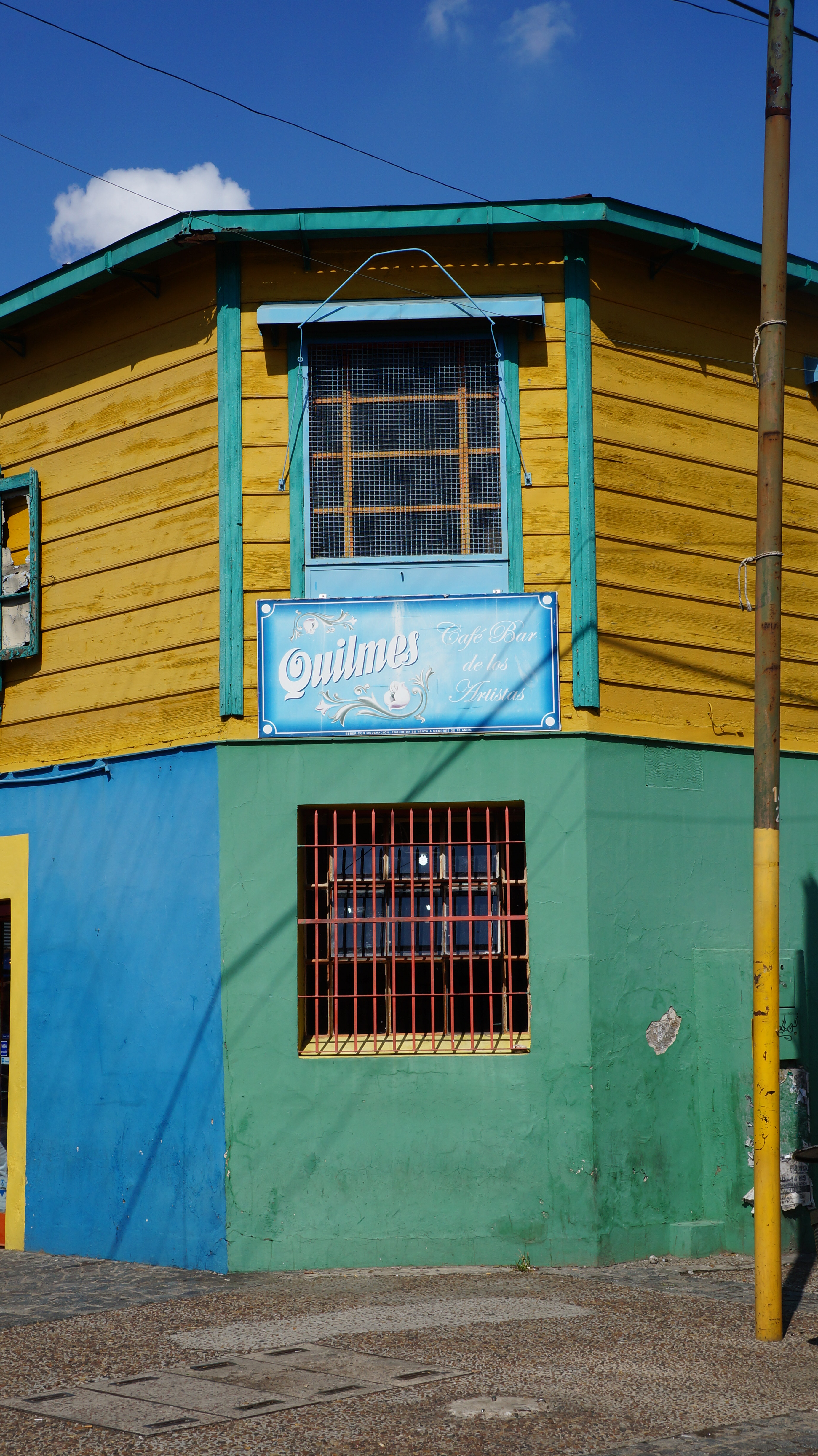 As we walked deeper into the barrio, we reached the mouth of the Rio Riachuelo, where remains of the old port still stand and a series of pedestrianised streets are home to brightly coloured corrugated-metal buildings.
