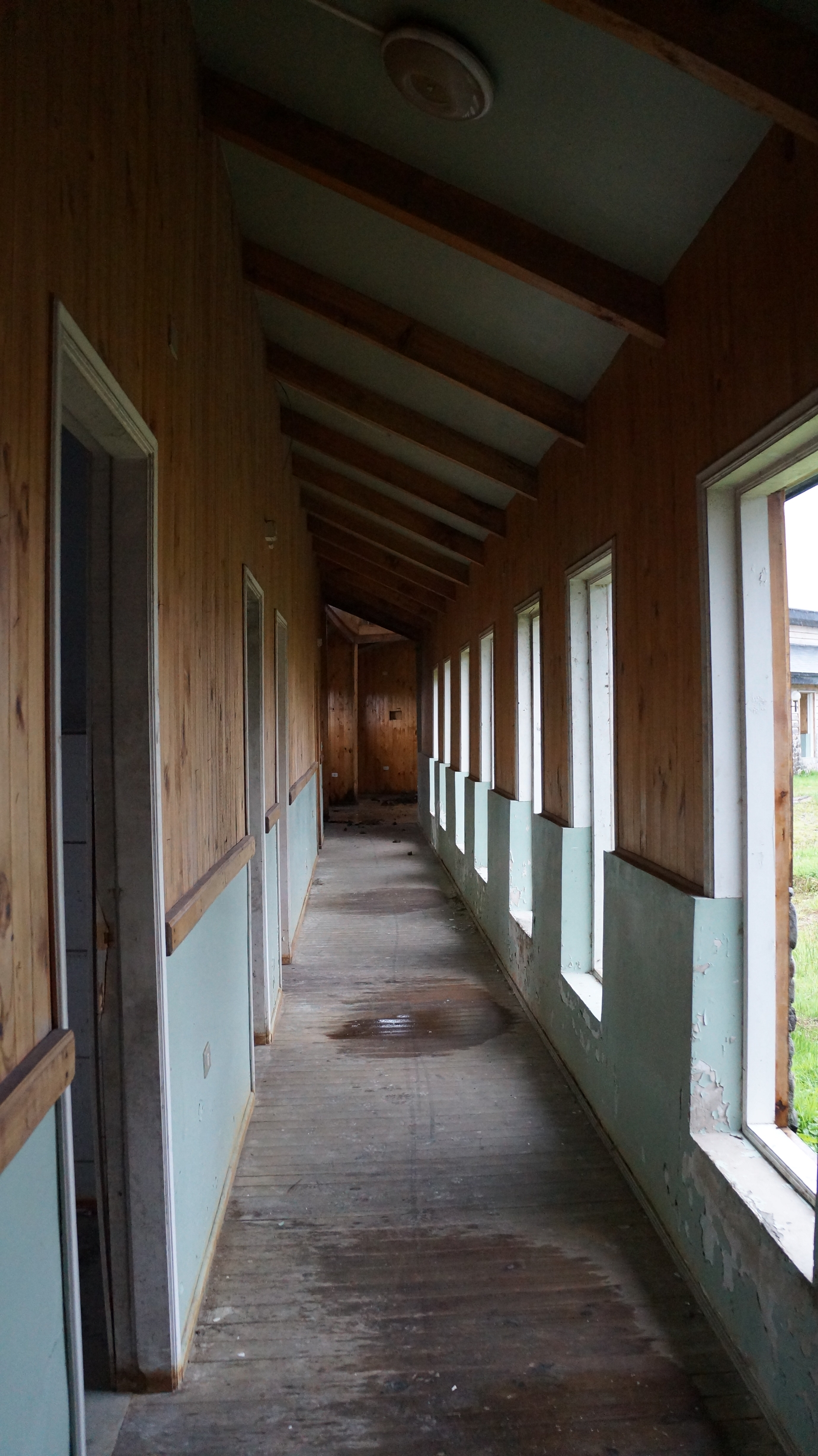 Along the corridors there were rooms of various sizes where local producers once sold their crafts. The wooden floors were sturdy and intact, however nearly all of the large glass windows had been broken so it was a little drafty!