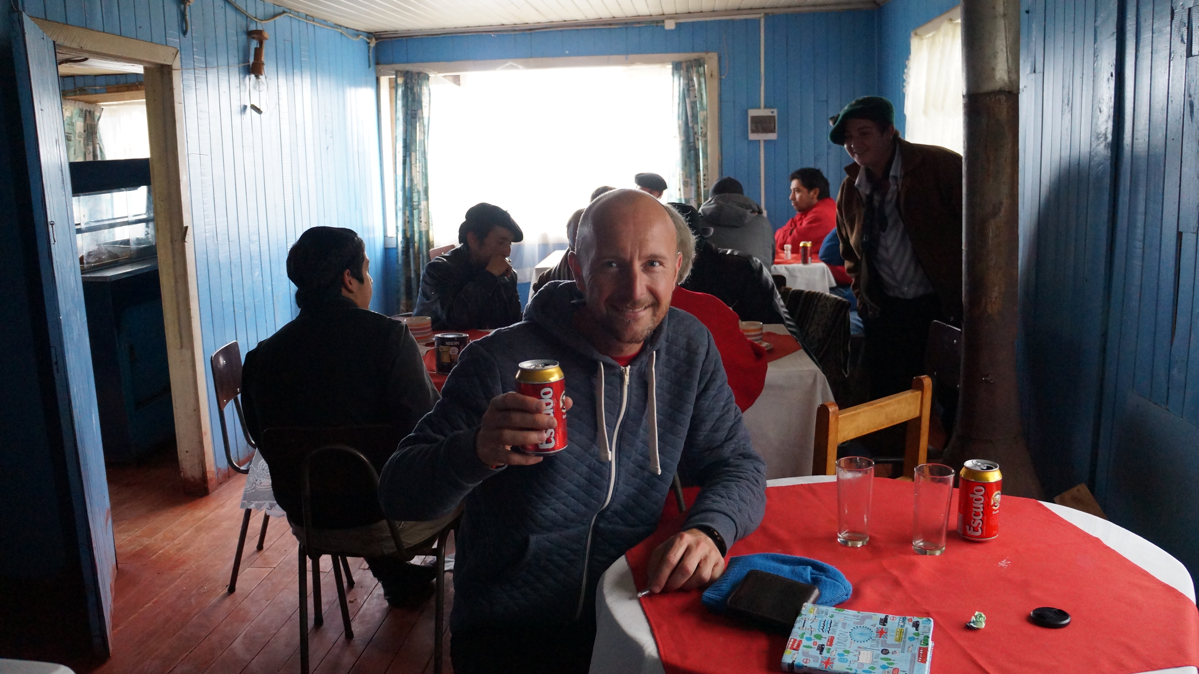 After 5 minutes we agreed that our order seemed to be taking a long time as they simply needed to heat up the empenadas but we thought nothing more of it, however after 10 minutes the waitress returned with cutlery and asked who was having the paella – fish stew! Frought with concern at what was cooking in the kitchen, we frantically tried to explain in Spanish that all we wanted was two empenadas and no fish stew! The waitress seemed to understand and we breathed a sigh of relief…until fish stew, steak, egg and chips and two empenadas came out! Being two people who love their food, this would normally mean that a mistake of this kind would be deemed a fantastic result, however after the few days we’d had and having had our hearts set on something simple, this turn of events seemed pretty catastrophic. Our mood turned grey as we pushed greasy chips around the plate and dunked fishy bits in the pale liquid and then it turned black when the bill for 18,000 Chilean pesos (nearly 37 USD) arrived!!