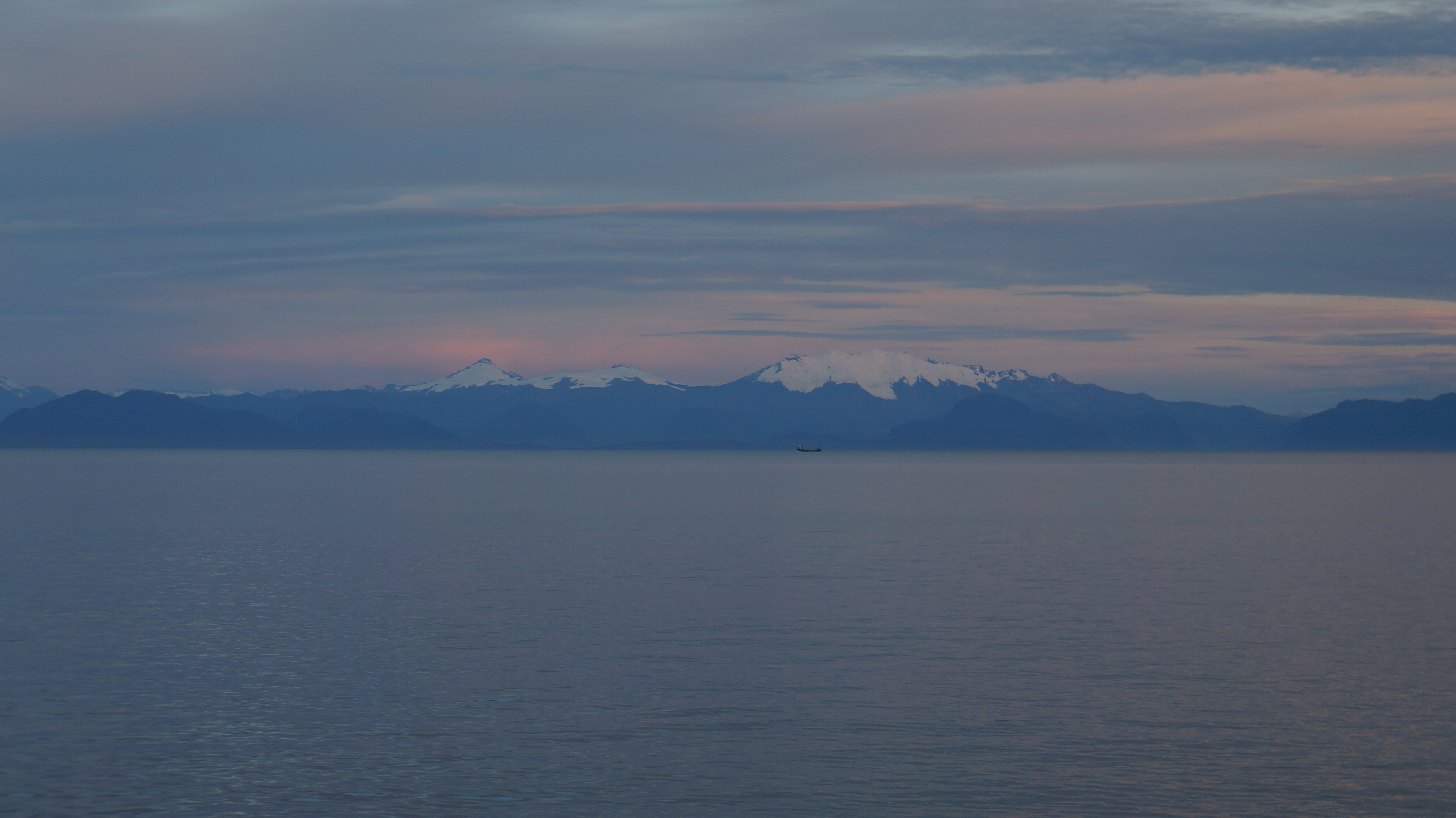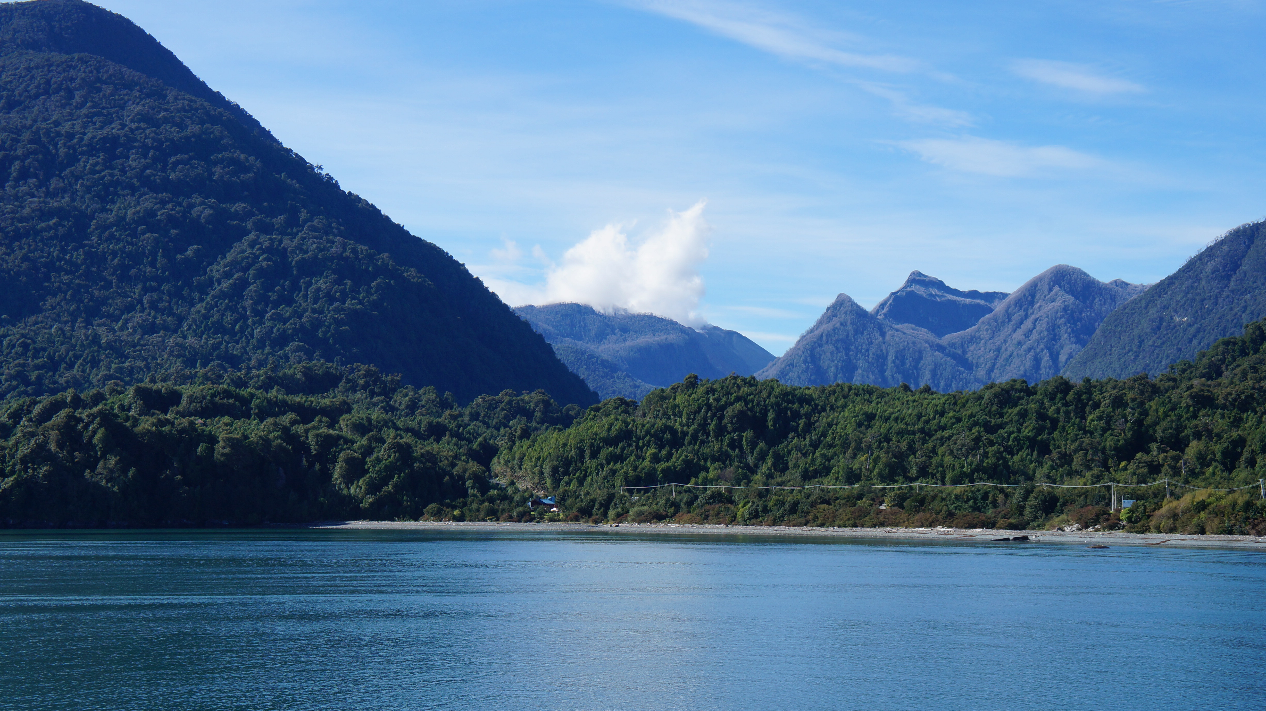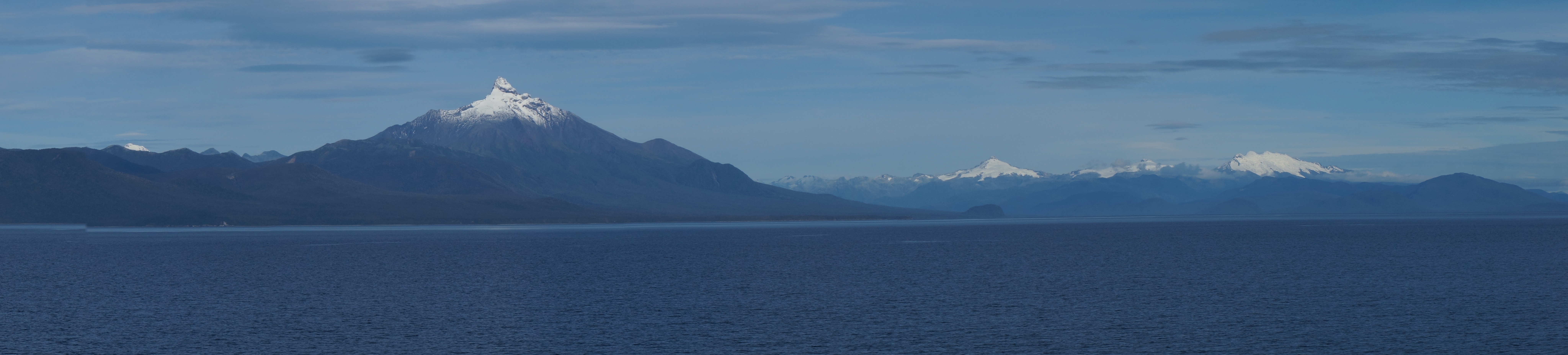 The further away from the shore we got, the more dramatic the scenery became with three volcanos coming into view. Eventually we could see Chaiten no more and we glided on the open sea towards our next destination, Chiloe.