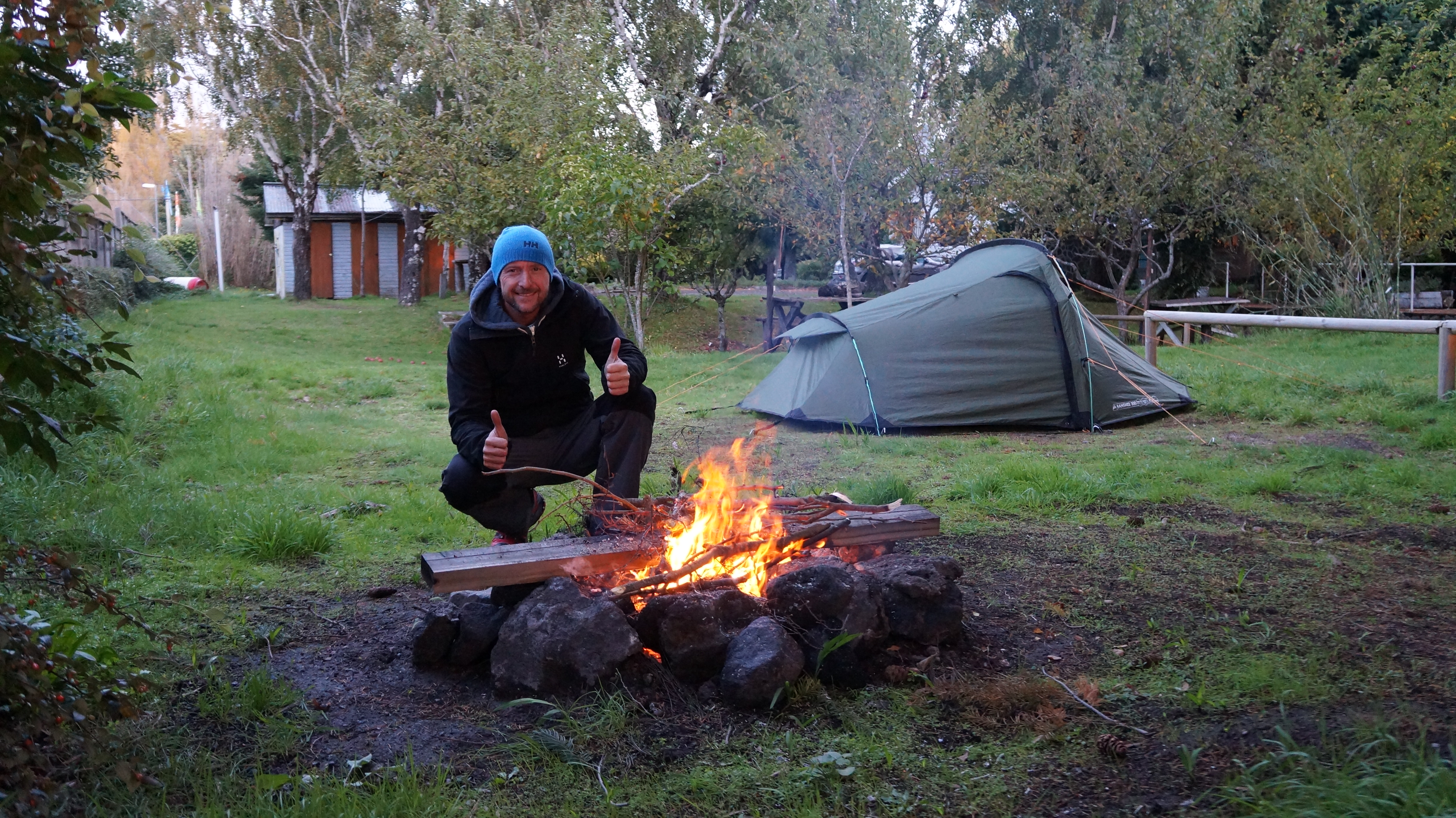 We camped at a small site by the side of the lakeshore. As April is considered to be the shoulder season between Summer and Autumn, and for some locals too cold to camp, we had the whole site and access to a private beach to ourselves. It seemed incredibly surreal sitting in the warm sunshine with the deep blue waters of the lake lapping on the shore whilst looking up at a towering snow-capped volcano.