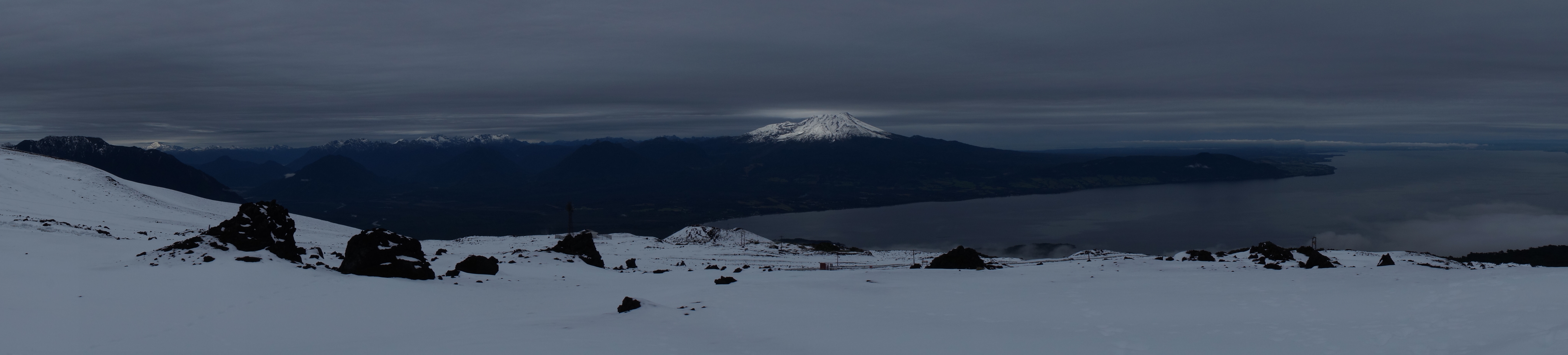 The views at the top were immense. In one direction Lake Llanquihue stretched out into the distance with tiny Ensenada just a small dot below to the left and Volcano Calbuco a giant screaming for our attention.