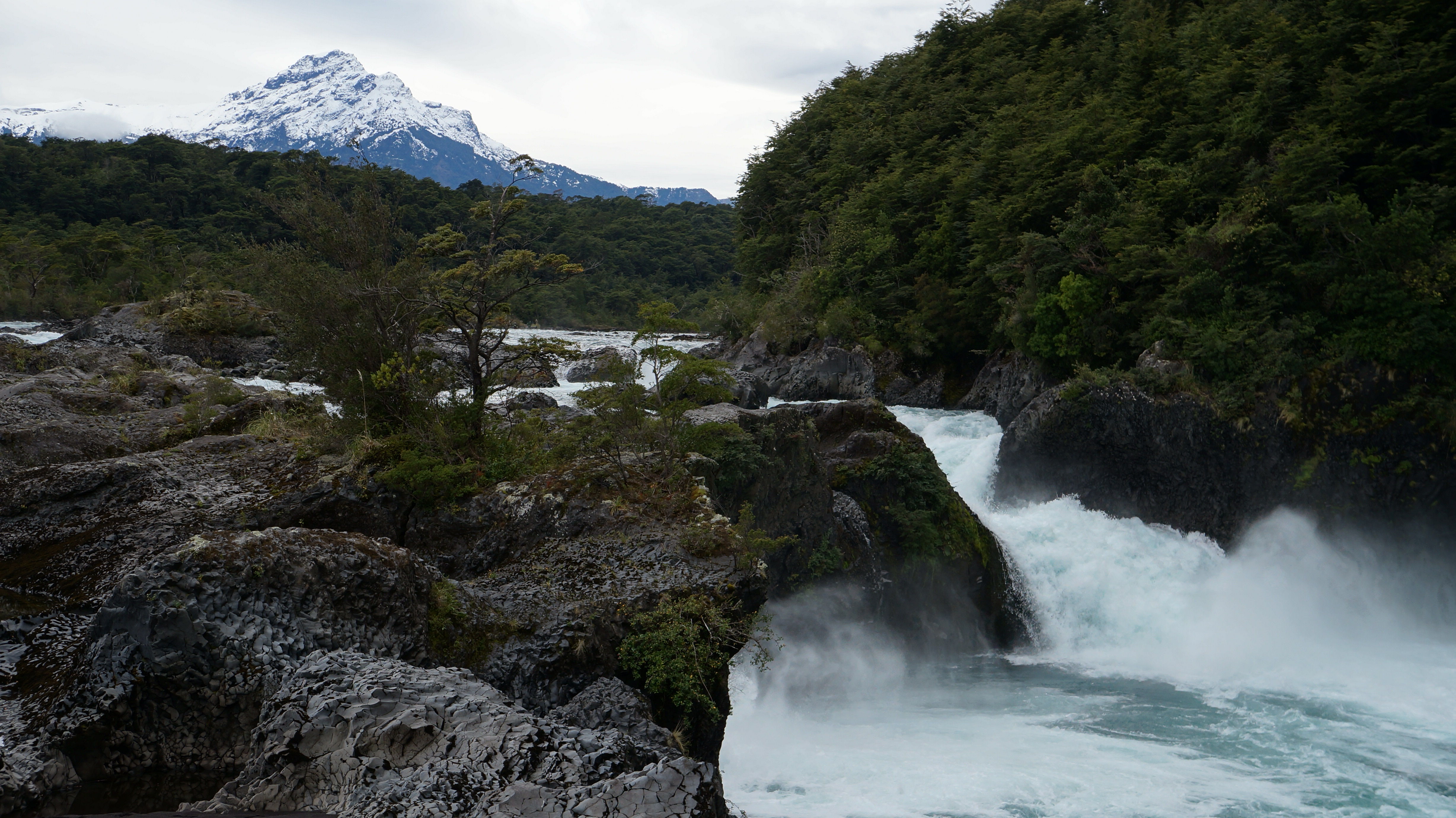 Years of erosion of black volcanic rock has formed the beautiful waterfalls called Saltos de Petrohue which can be seen within the National Park. After we paid a small entrance fee, we wandered freely along paths taking us to various watery viewing points. As we got closer to the falls we had to speak increasingly loudly over the almighty sound of the steady flow of water crashing into pools below.