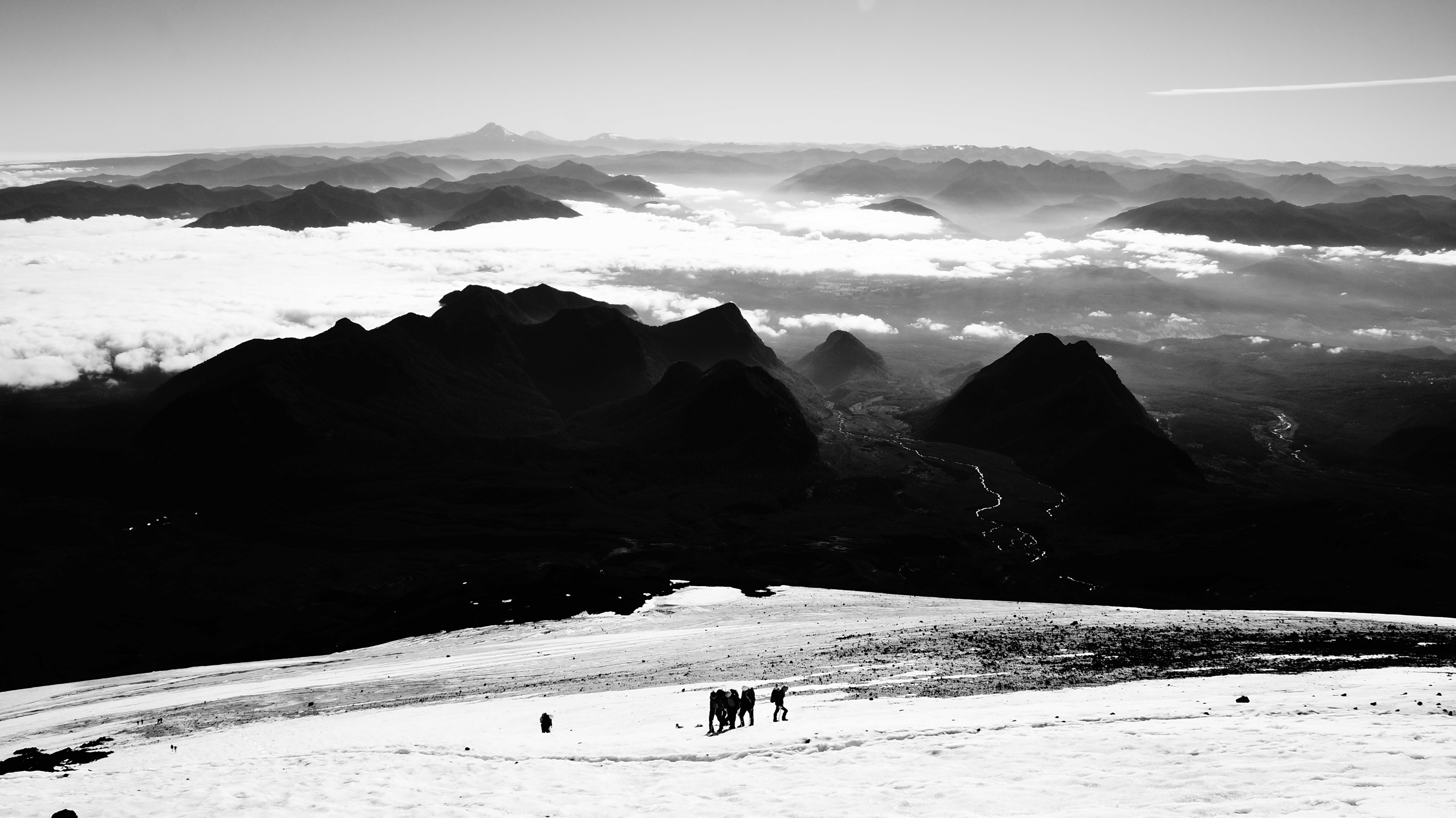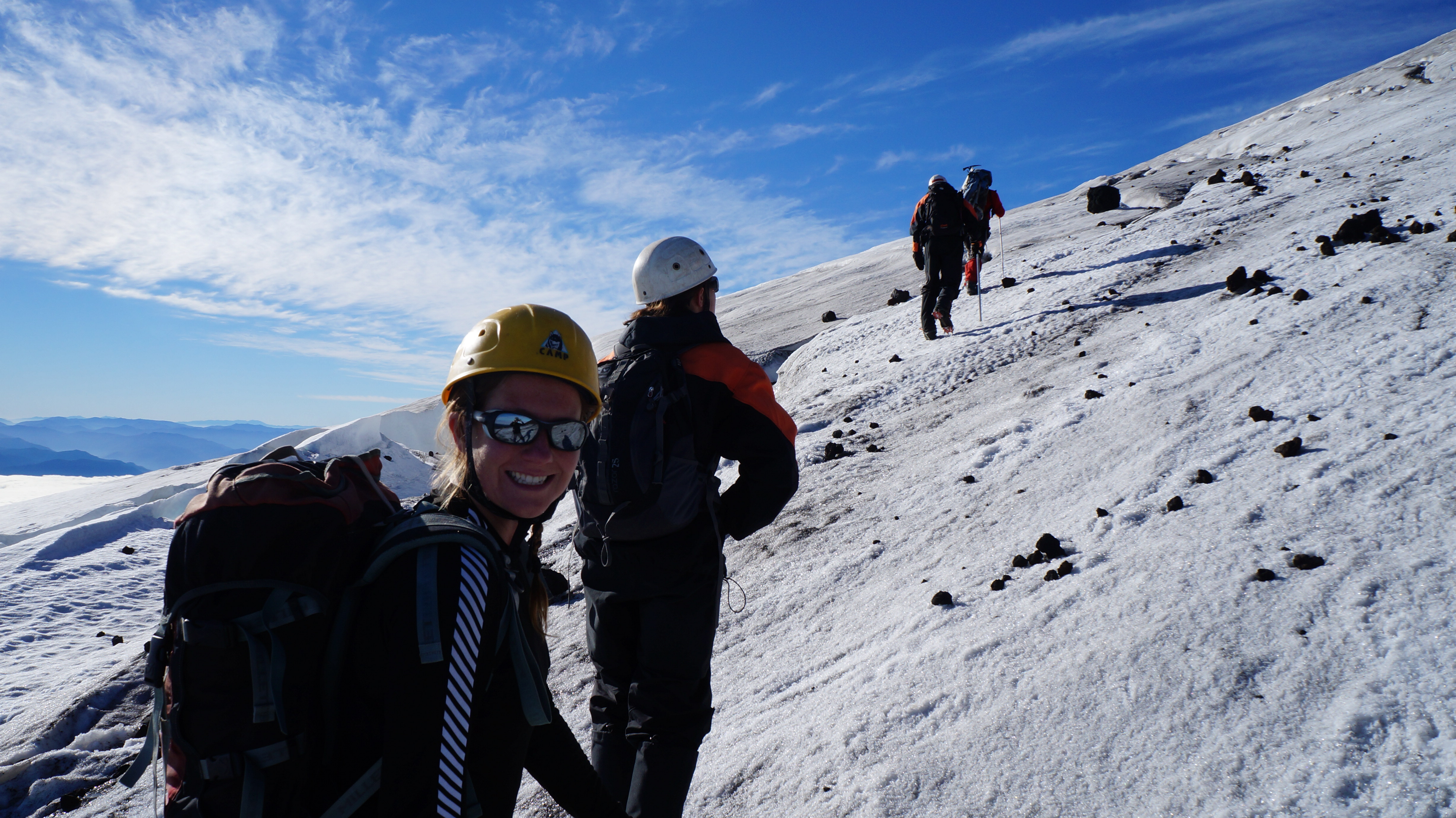 We climbed in silence apart from the crunch of ice underfoot and our own heavy breathing in our ears. Lines of climbers stretched up the volcano in front of us making zig-zag paths to the summit and reminded us of the documentaries we had watched about the busy Everest climbing season.