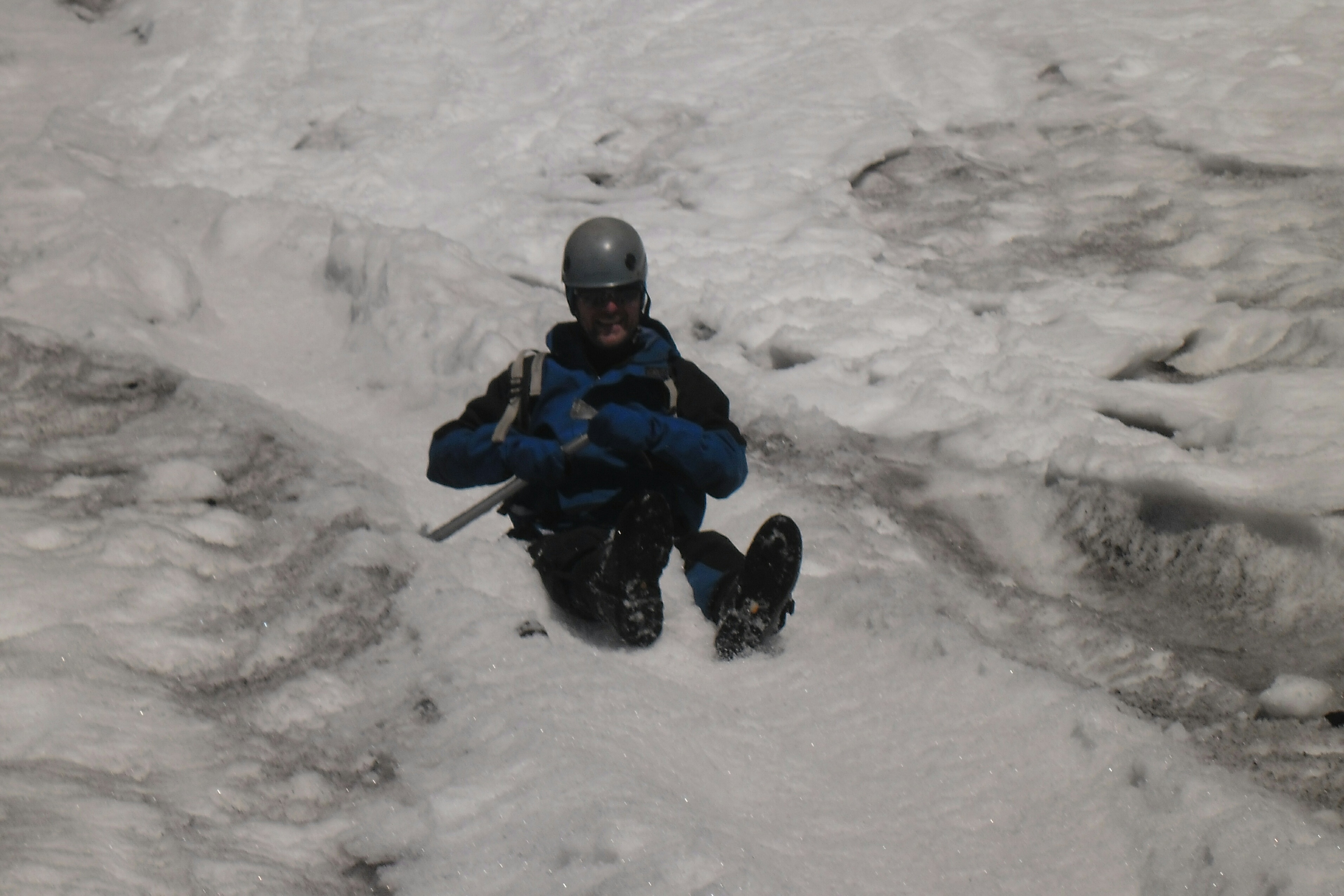 The guides showed us how to use the ice axes in the event of a fall and they stressed that successful use of the axes could be the difference between a 2 metre slide with a few bruises, or death!