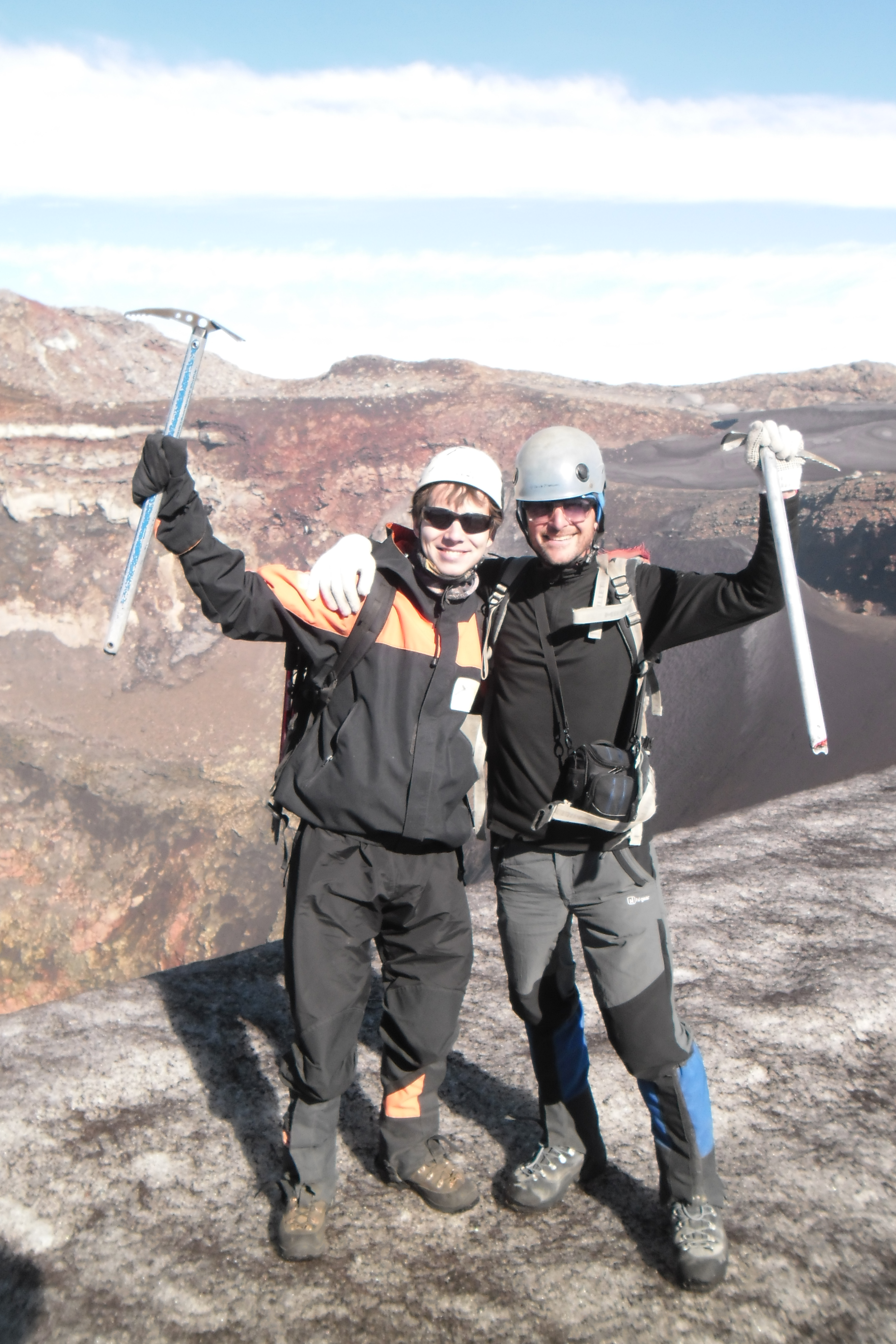 Some of the other climbers seemed to have no fear and clambered around the crater rim searching for the ultimate photograph but we were too terrified to look at them. We’d read about 2 Israeli climbers who’d tragically lost their lives climbing on the volcano in the late 80’s and about a more recent avalanche where several people were seriously injured so the volcano had our utmost respect. We thought about how close to danger many travellers come when taking part in activities such as this and agreed it was probably best not to know.