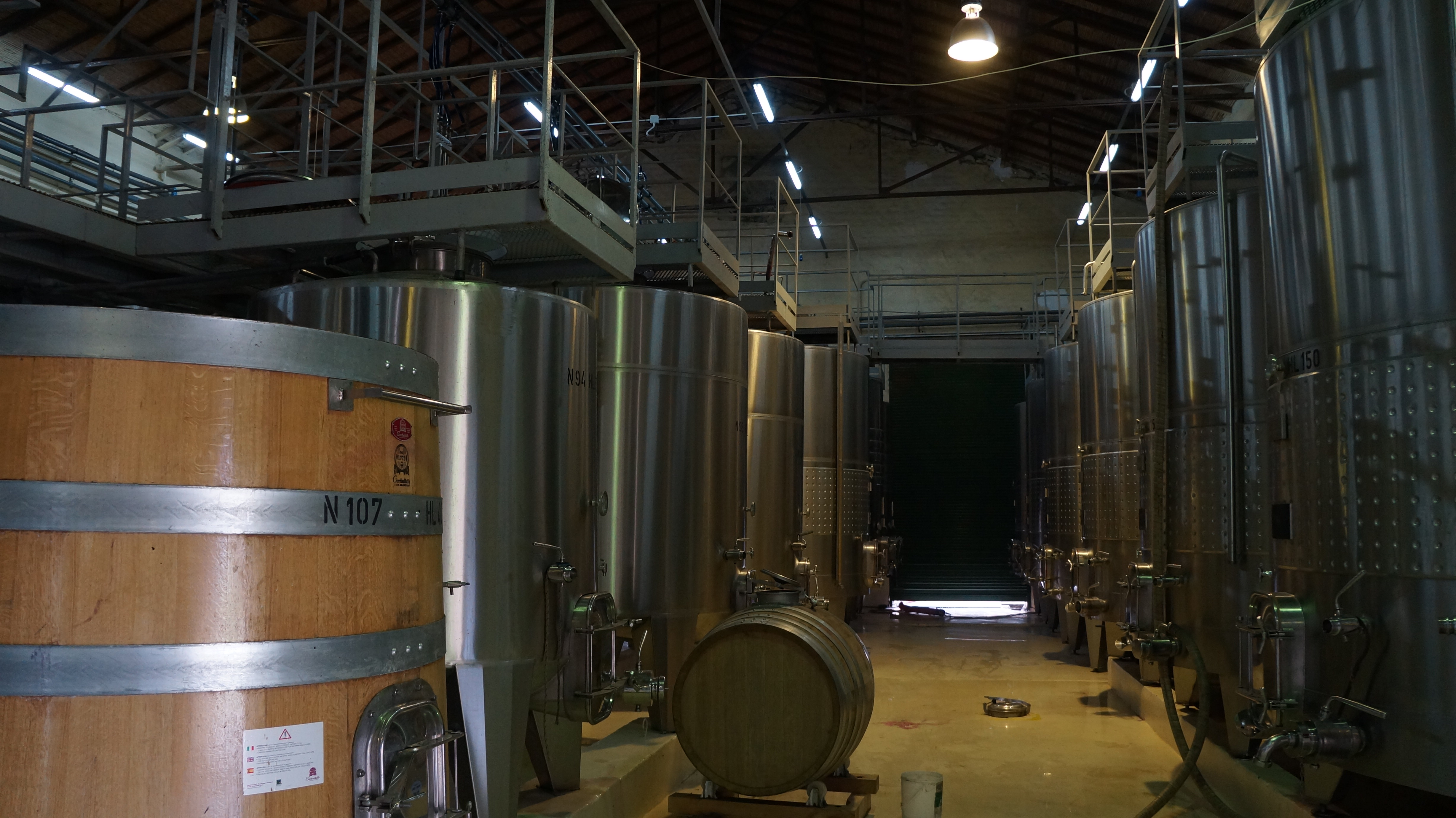 Our second winery of the day called Lagarde was just 5 minutes pedalling up the road and a tour had been booked for us at 12.30pm. Upon arrival we instantly recognised that production was more commercial and on a larger scale as we waited for the large electronic gate to swing open and let us in. Once we had passed security and parked our bikes we were shown through to a large out-door dining area where a delicious smelling BBQ had just got underway. Our guide, who had recently spent 2 years working on the QE2 and spoke perfect English with a South coast twang, gave us a private tour of the grounds and the many delicate processes that go into making the perfect bottle of wine.
