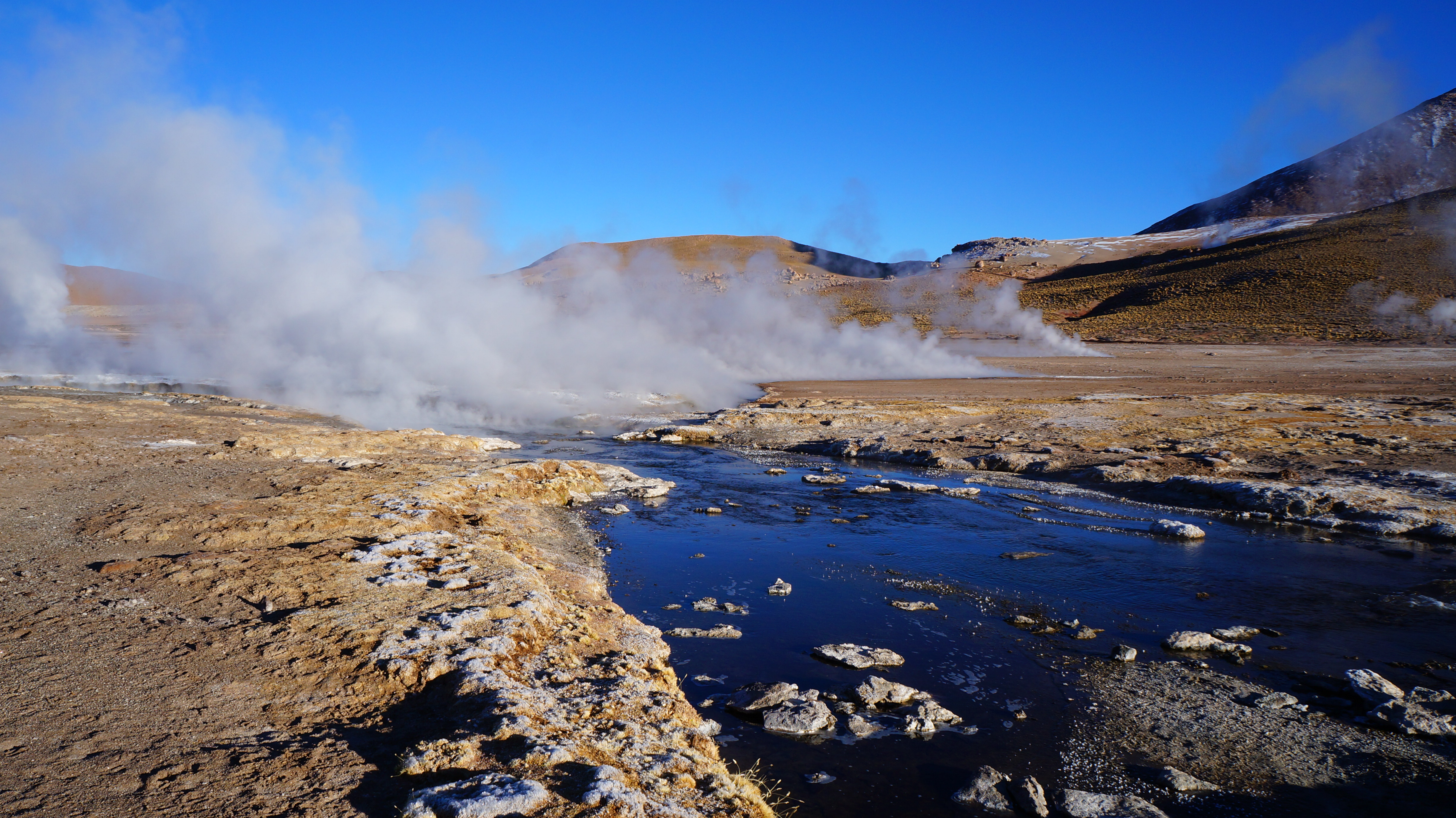 The Tatio Geysers are a truly magical attraction. The only downside was that the tour we took departed at 4am in order to make the 90km trip and reach the site for sunrise – when the geysers are most active and when the new dawn makes for a brilliant light show. The Geysers are situated in El Tatio geothermal basin and are approximately 4,320 metres above sea level, making them the highest active geysers on Earth.