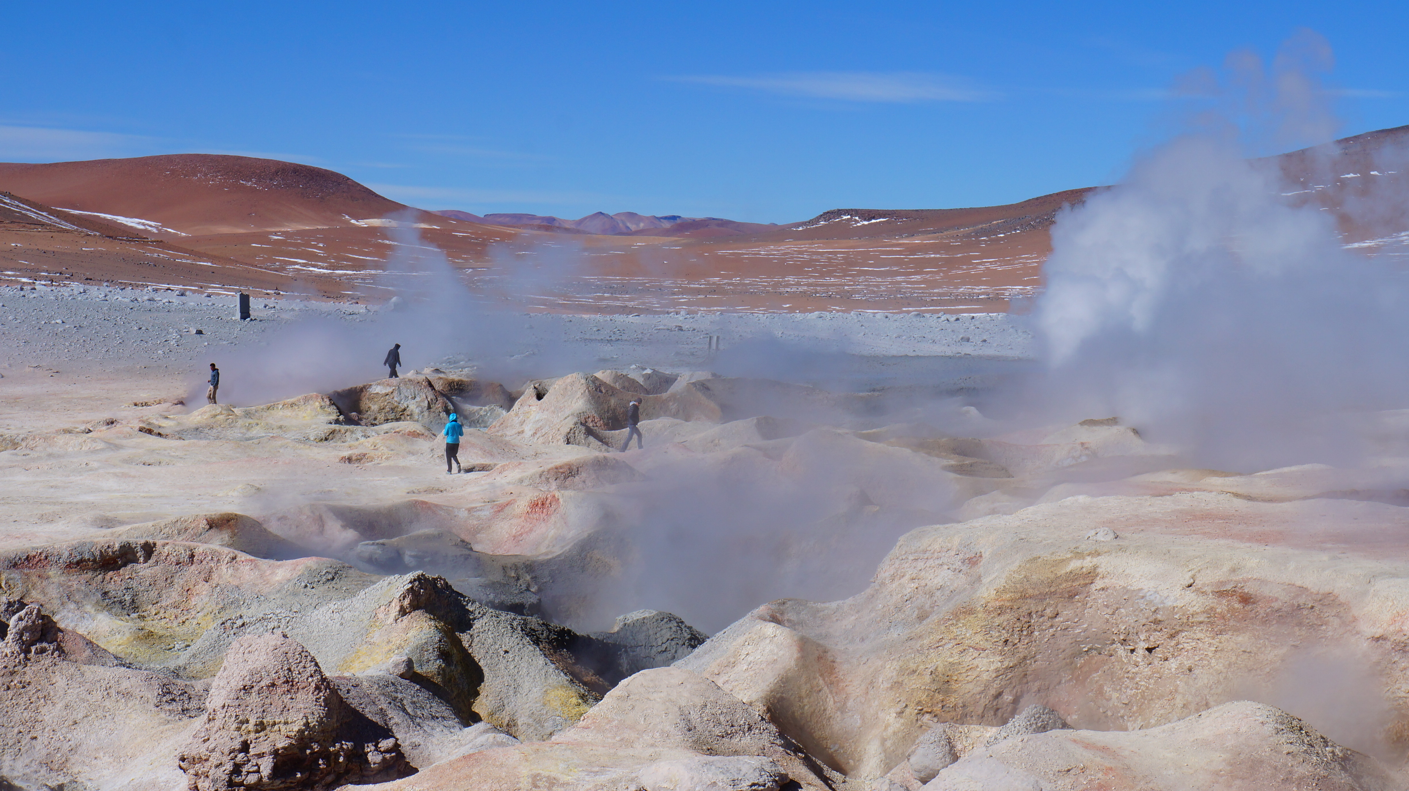 After lunch we loaded up the jeep once more, rotating our seats so we all appreciated different views, and set off. We drove 30 minutes to our highest point on the trip, ‘Geiser de sol de Manana’, meaning morning sun in Spanish. The geyser field covered 10 squared kilometres and lay at a height between 4,800 and 5,000 metres.