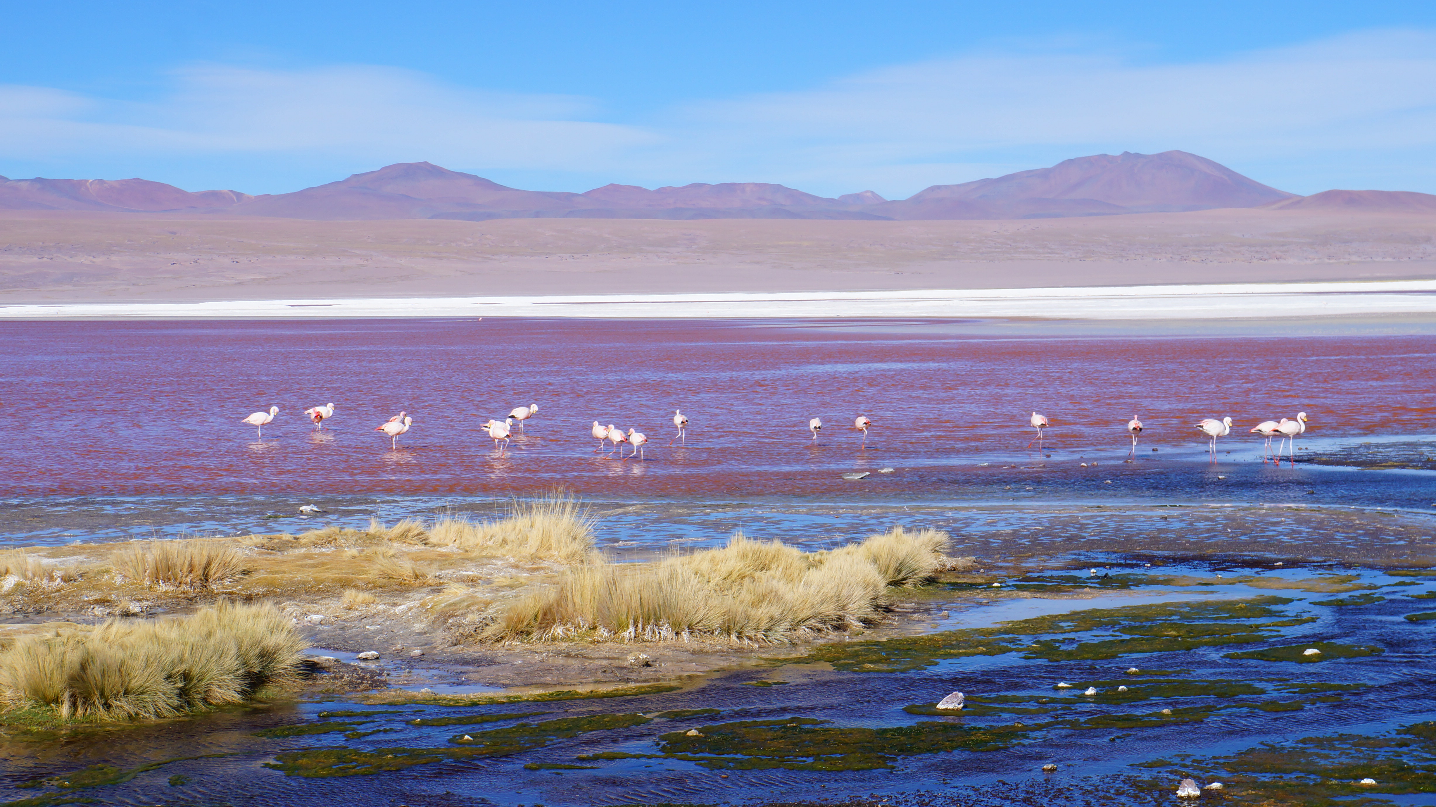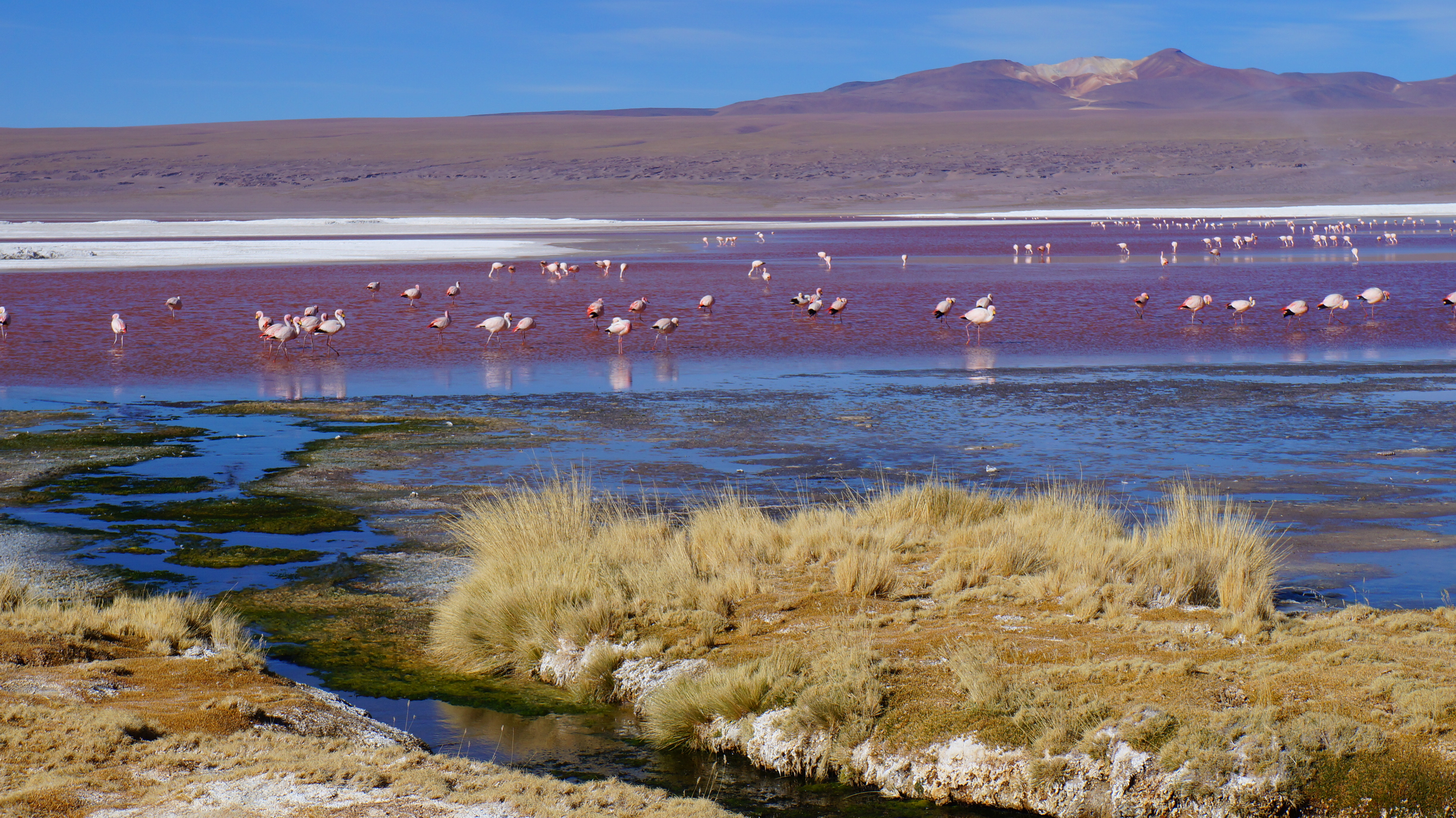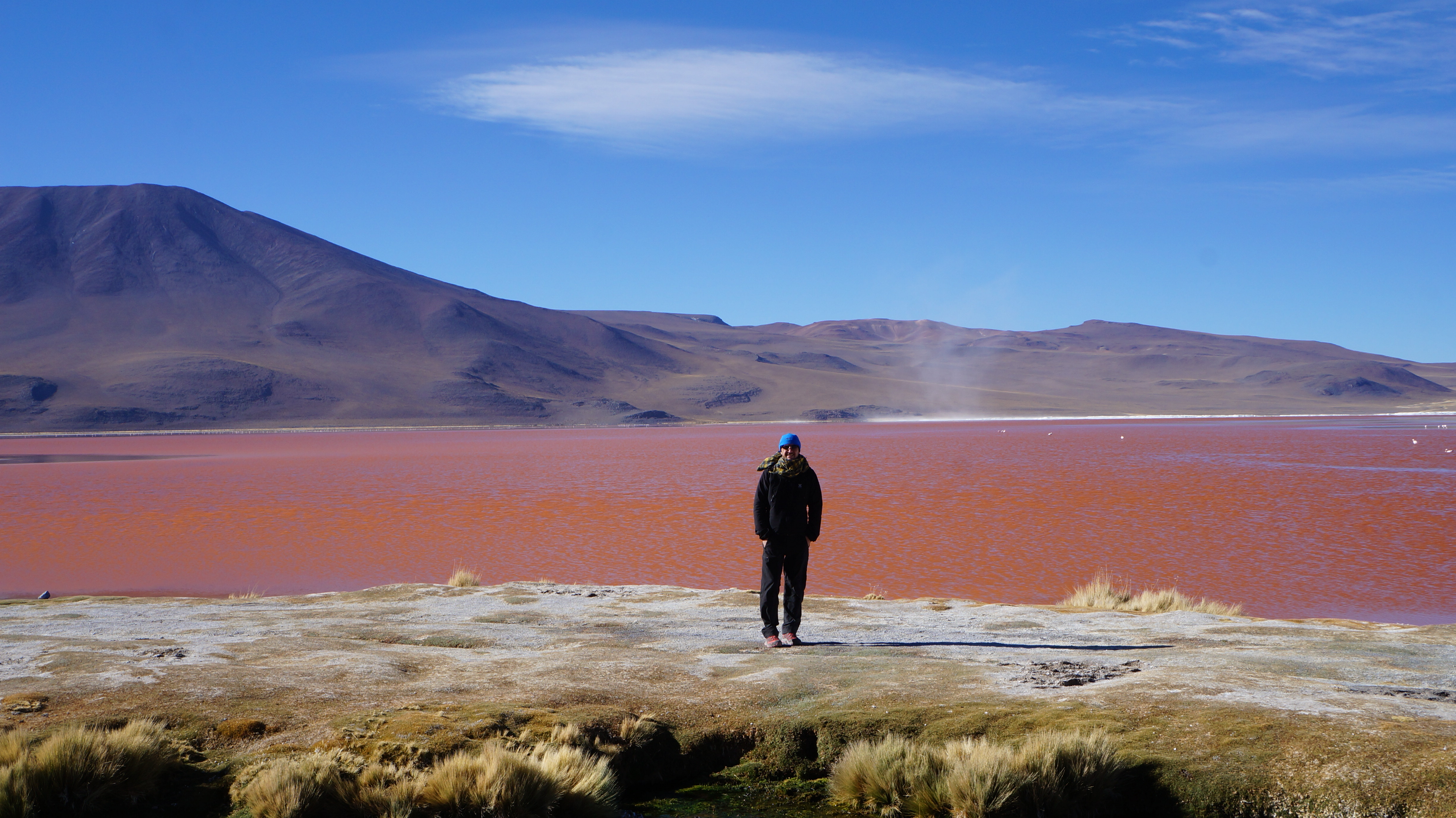 We travelled further into the wilderness with only vicuñas and llamas to keep us company by the roadside. We didn’t see any villages or small settlements in this part of the park but the unfolding landscapes continued to impress us. Our final spectacular sight of the day was ‘Laguna Colorada’ or ‘Coloured Lake’, which was a shallow salt lake and to our astonishment the colour of blood caused by red sediments and pigments of plankton and algae which thrives here.