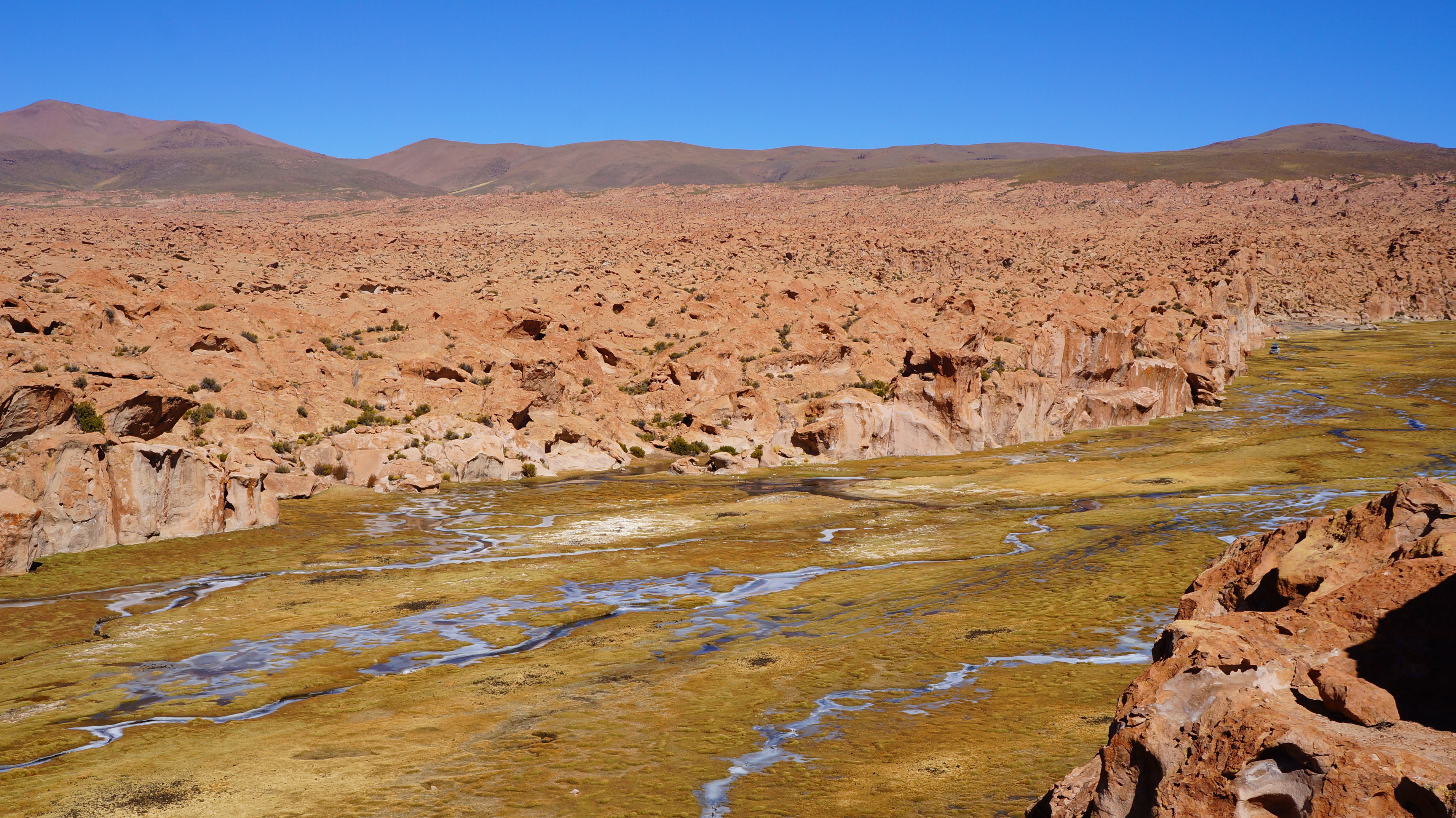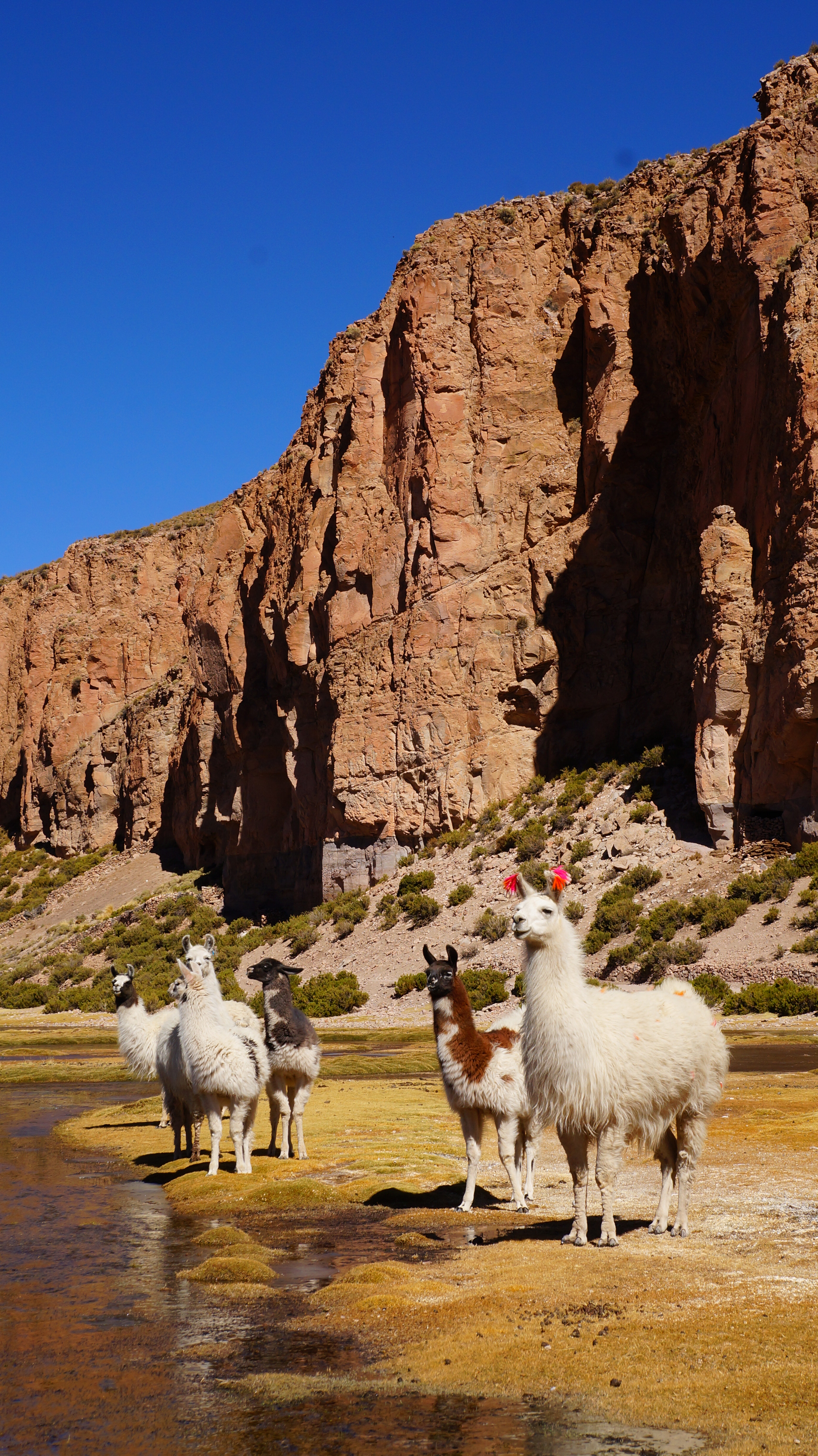 As we ate our lunch we were surrounded by Llamas grazing on yellowish, spongy grass and dipping their toes in a network of cool rivers.