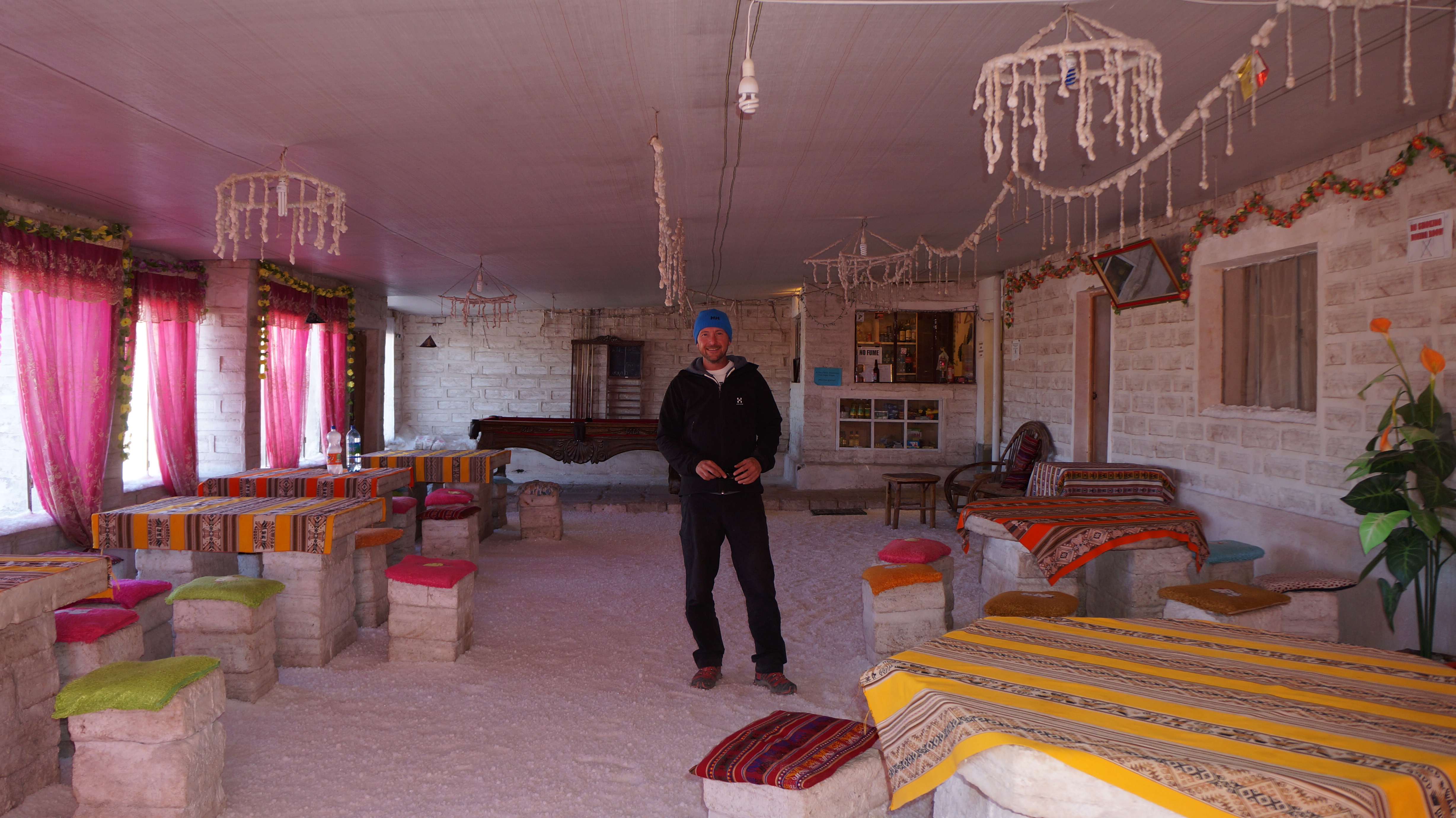 The salt hotel was like nothing we’d ever seen before and really impressed us. The walls, the floors, the tables, the chairs, the beds, the light fittings – practically everything was made from salt. The old salt hotel, which is now a museum, was built on Salar de Uyuni and came under much criticism because it wasn’t environmentally friendly, pumping much of its waste materials back into the salt flats. However, the new hotel had been built 5 minutes drive from the edge of the Salar and had effective drainage and waste disposal.