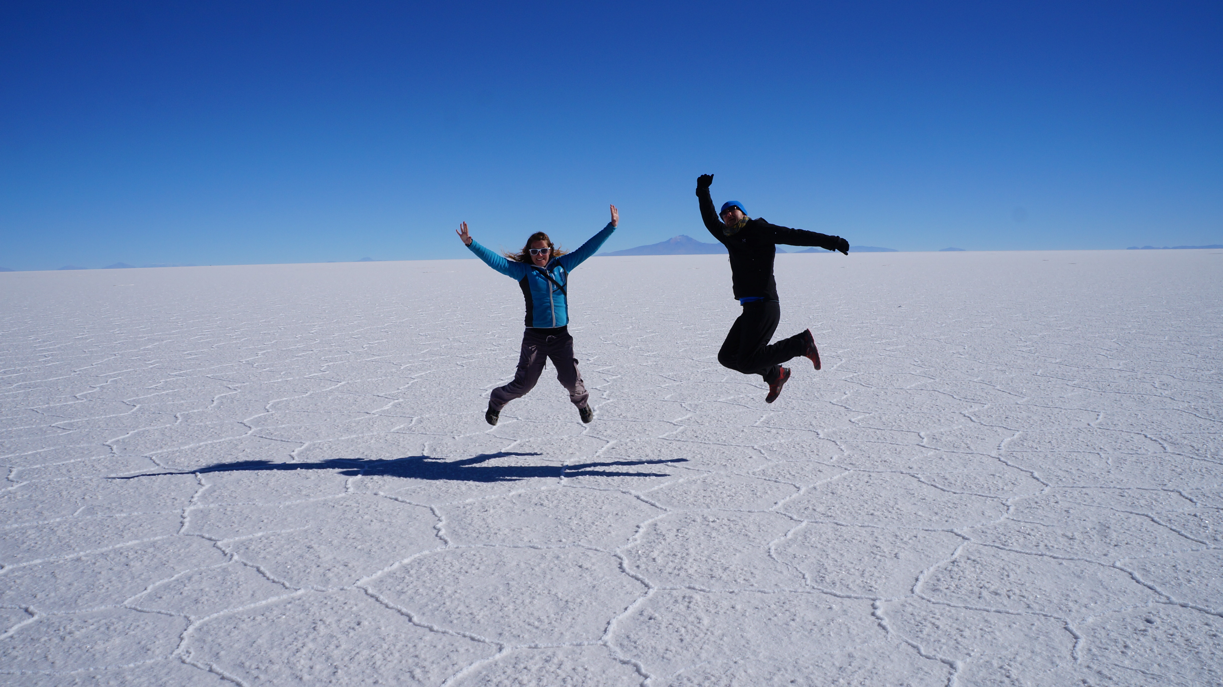 After driving for around 20 minutes, Alejandro pulled up in a secluded spot with salt stretching out all around us. We climbed out of the jeep and surveyed the scene around us with huge smiles on our faces. We became very childlike and started jumping around without a care.