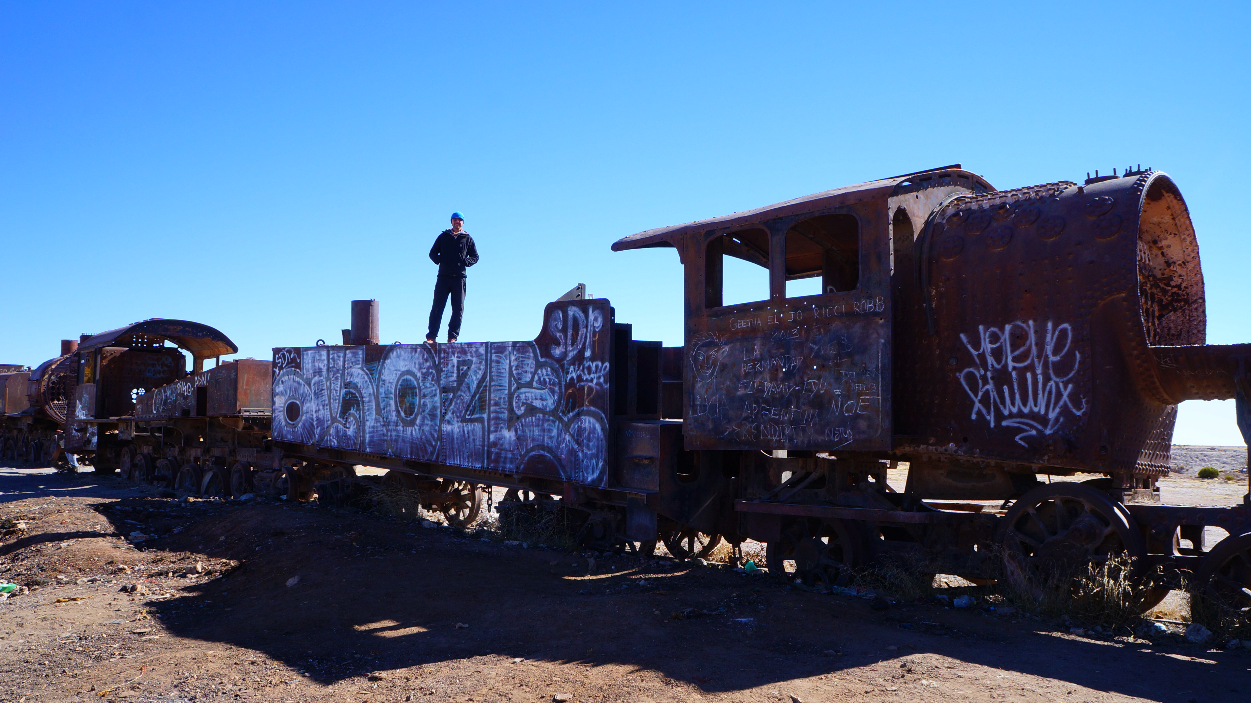 After another delicious lunch in a small village on the edge of the Salar, used predominately for processing salt, we made a bee-line for Uyuni – our final destination and sadly the place where our tour would draw to a close. It took roughly 2 hours driving to reach Uyuni which was a wind whipped, Wild West looking town. Before getting dropped off we made one final diversion to look at the train cemetery on the outskirts of Uyuni.