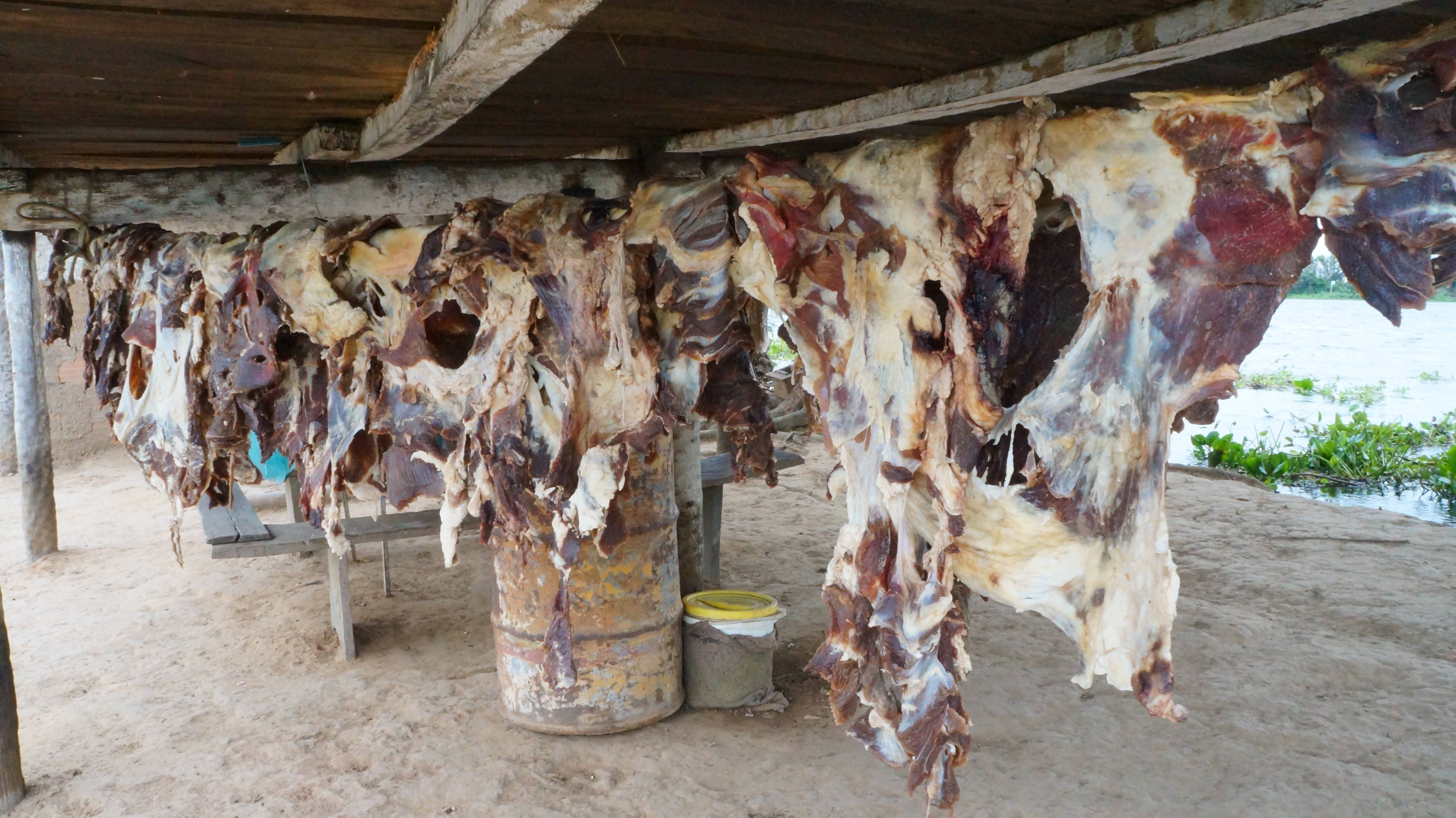 Their cattle are also moved to higher ground at this time. Their existence was simple – growing vegetables, breeding cattle for dairy and meat produce and fishing. Strips of meat hung drying under the house and the two dogs they owned constantly looked up at it trying to fathom a way to get a piece down to their level.