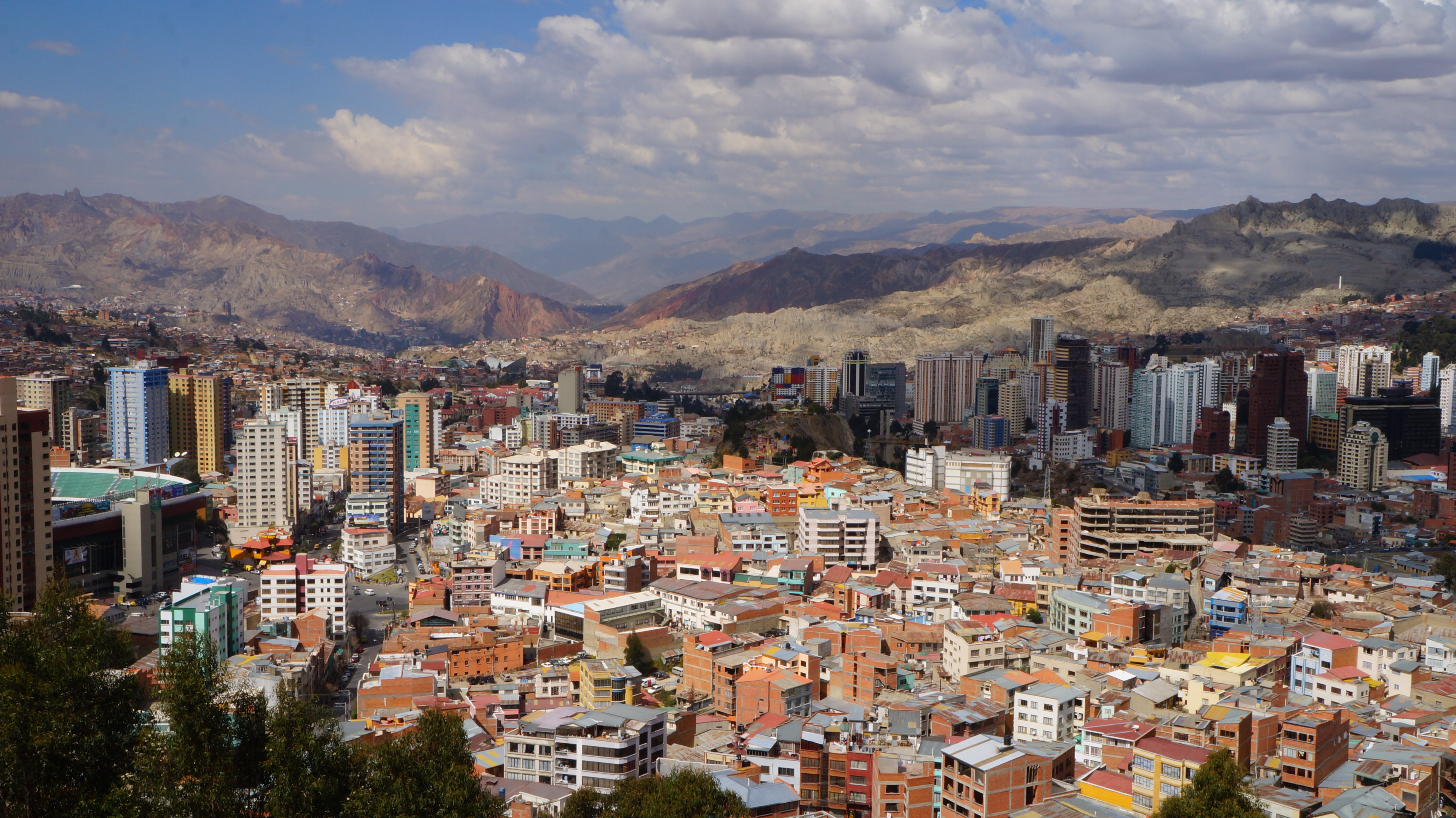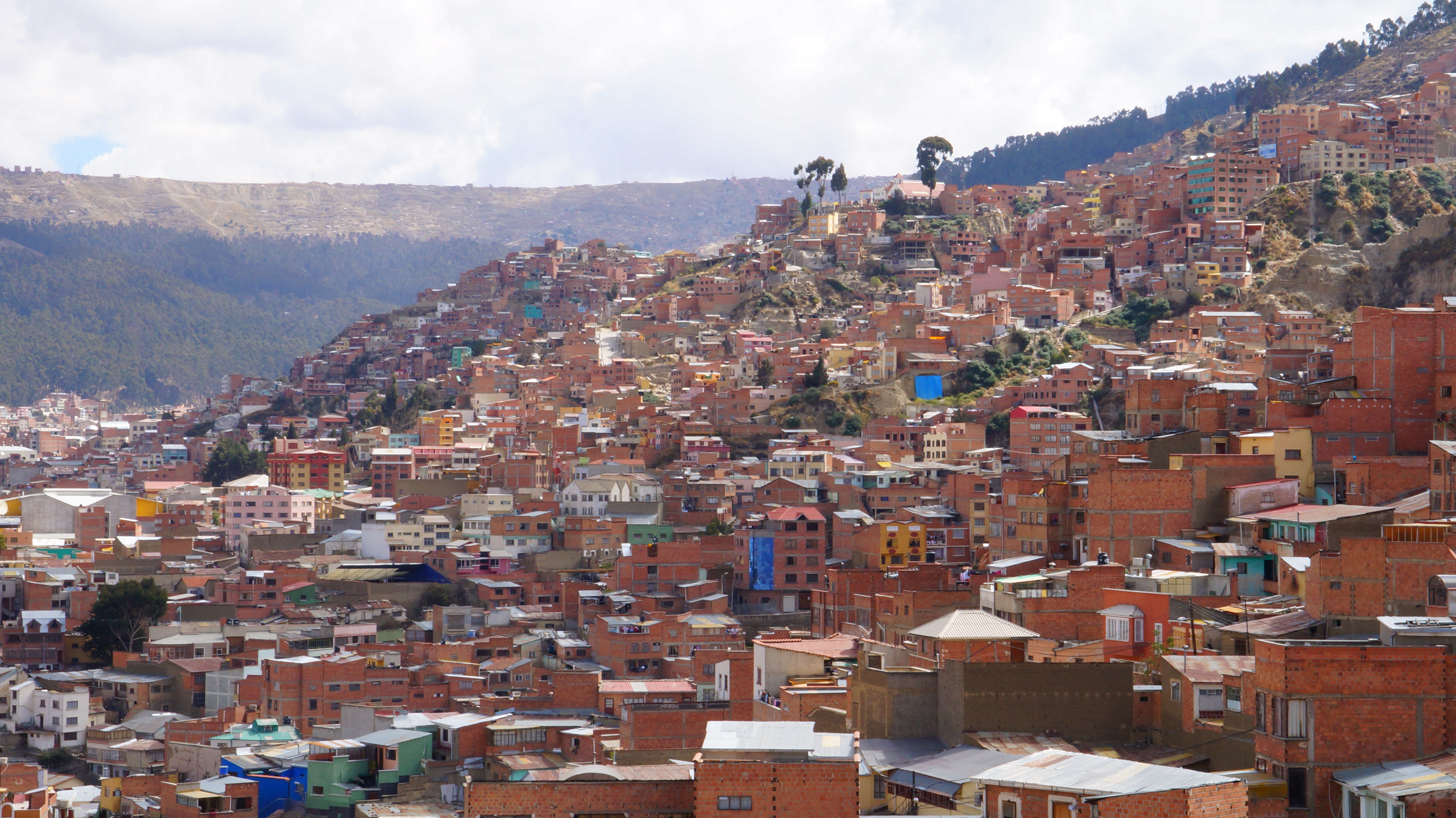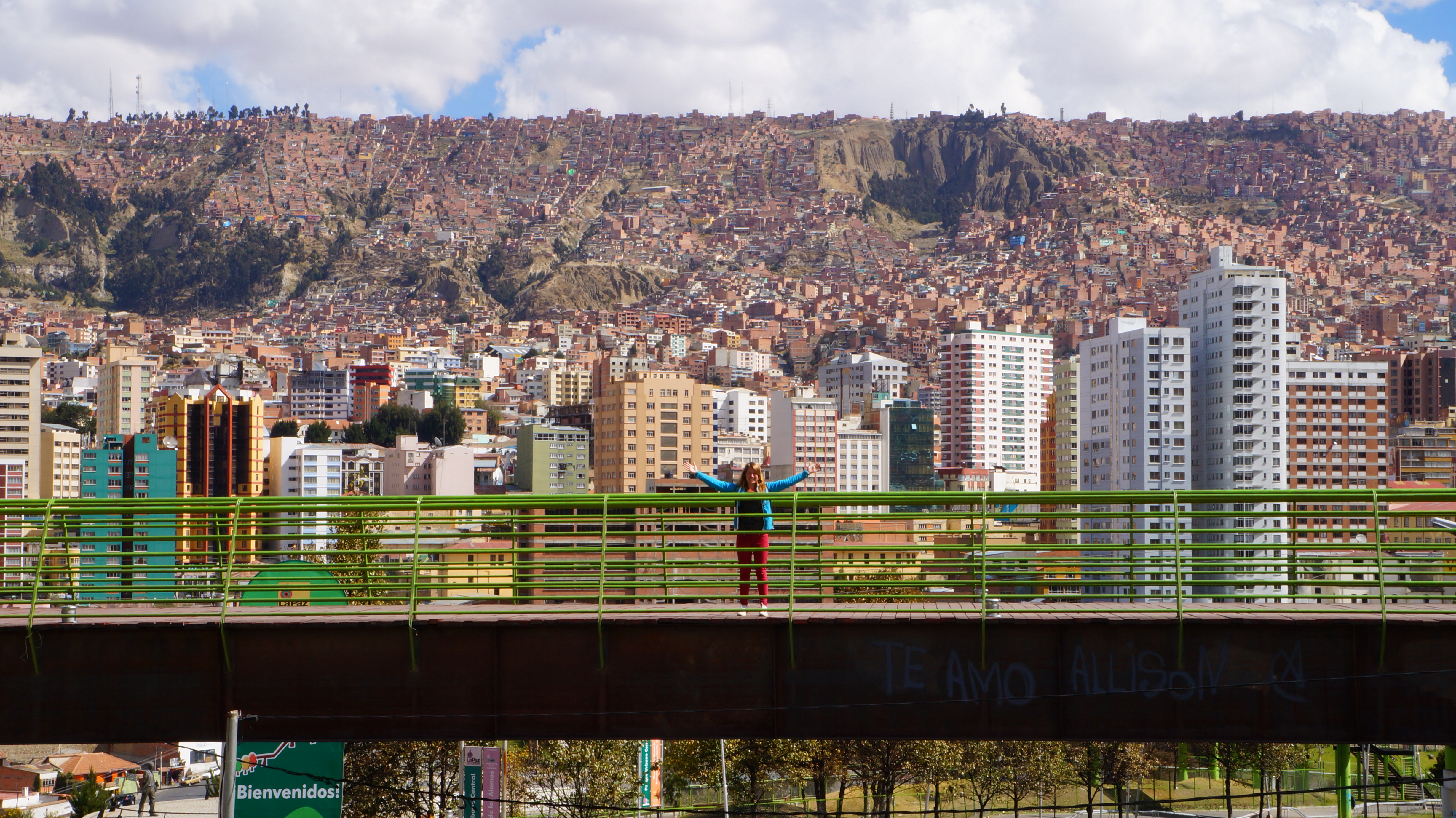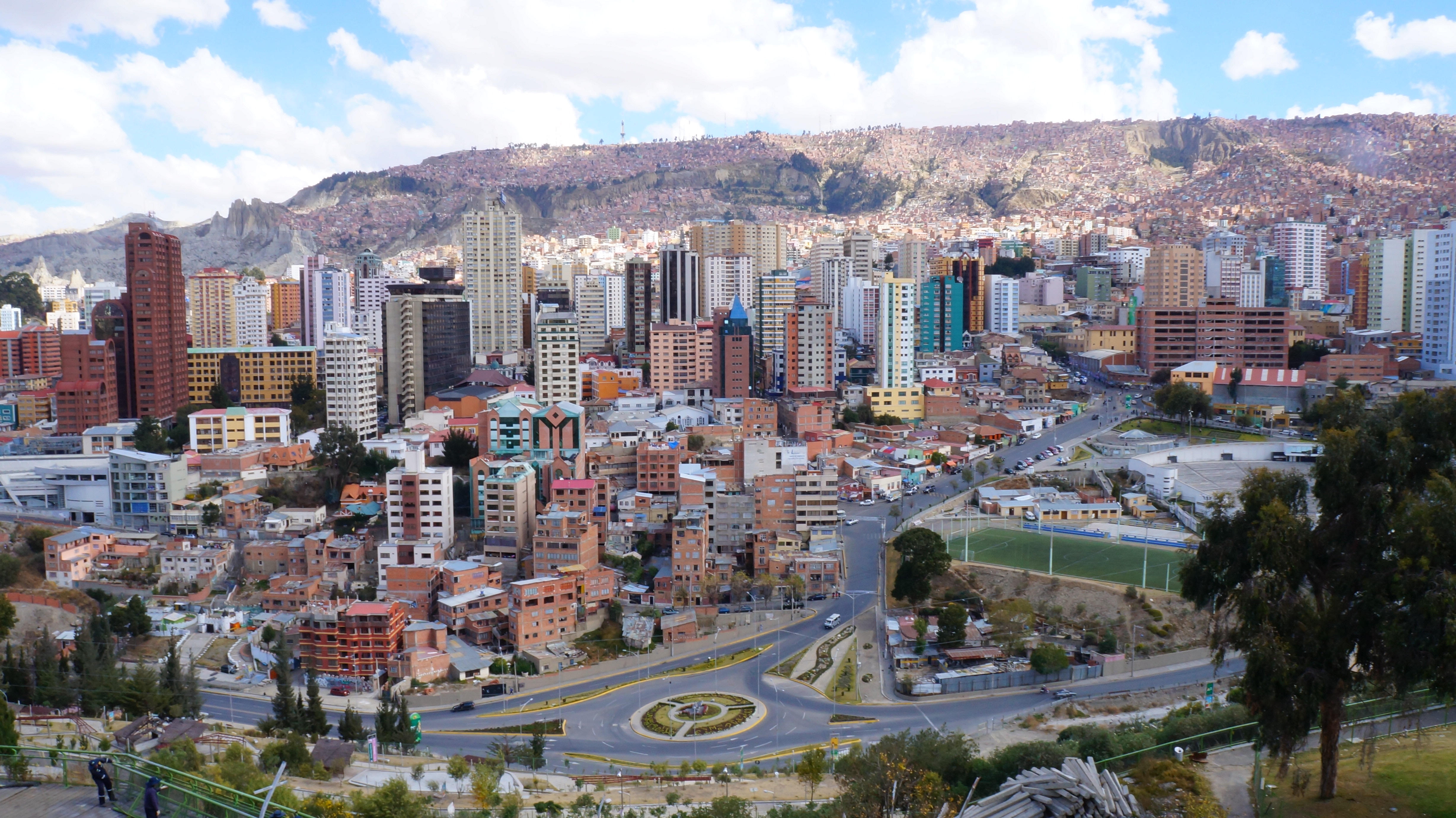 The rule of thumb in La Paz is the wealthier you are the lower down the valley you live because the climate is better, and the poorer you are the higher you live, so there’s an unusual mixture of shiny new apartment buildings downtown and half-finished red brick, tin roofed huts clinging to the upper canyon walls.