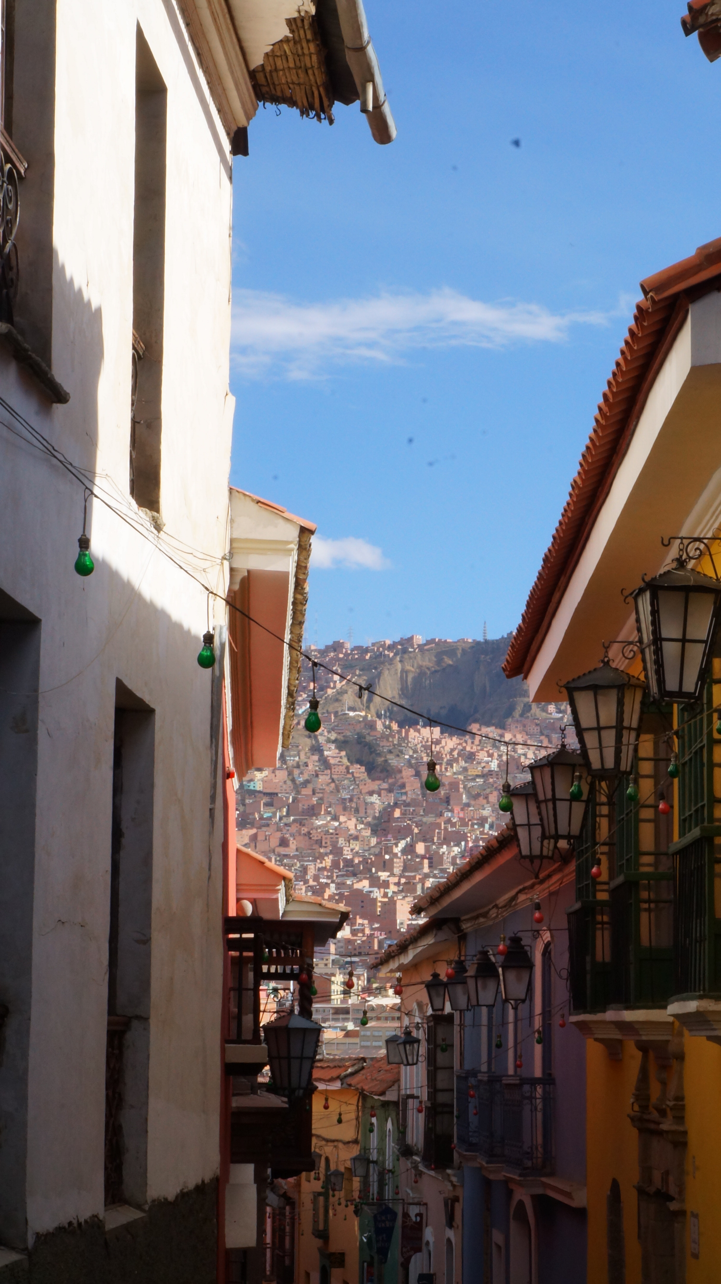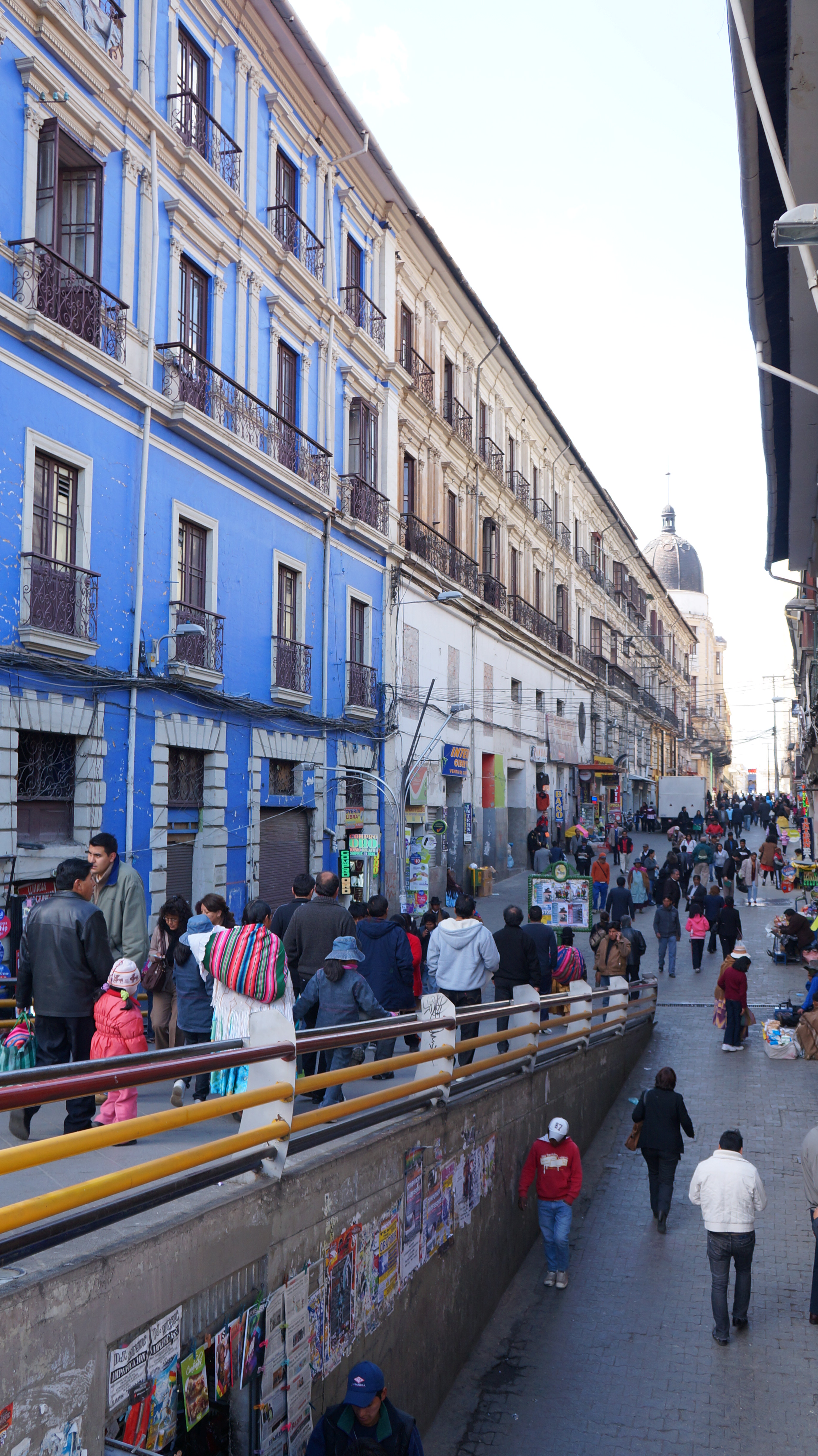 The main avenue running from top to bottom of La Paz is called the Prado and from here steep streets twist and turn like a maze always leading uphill.