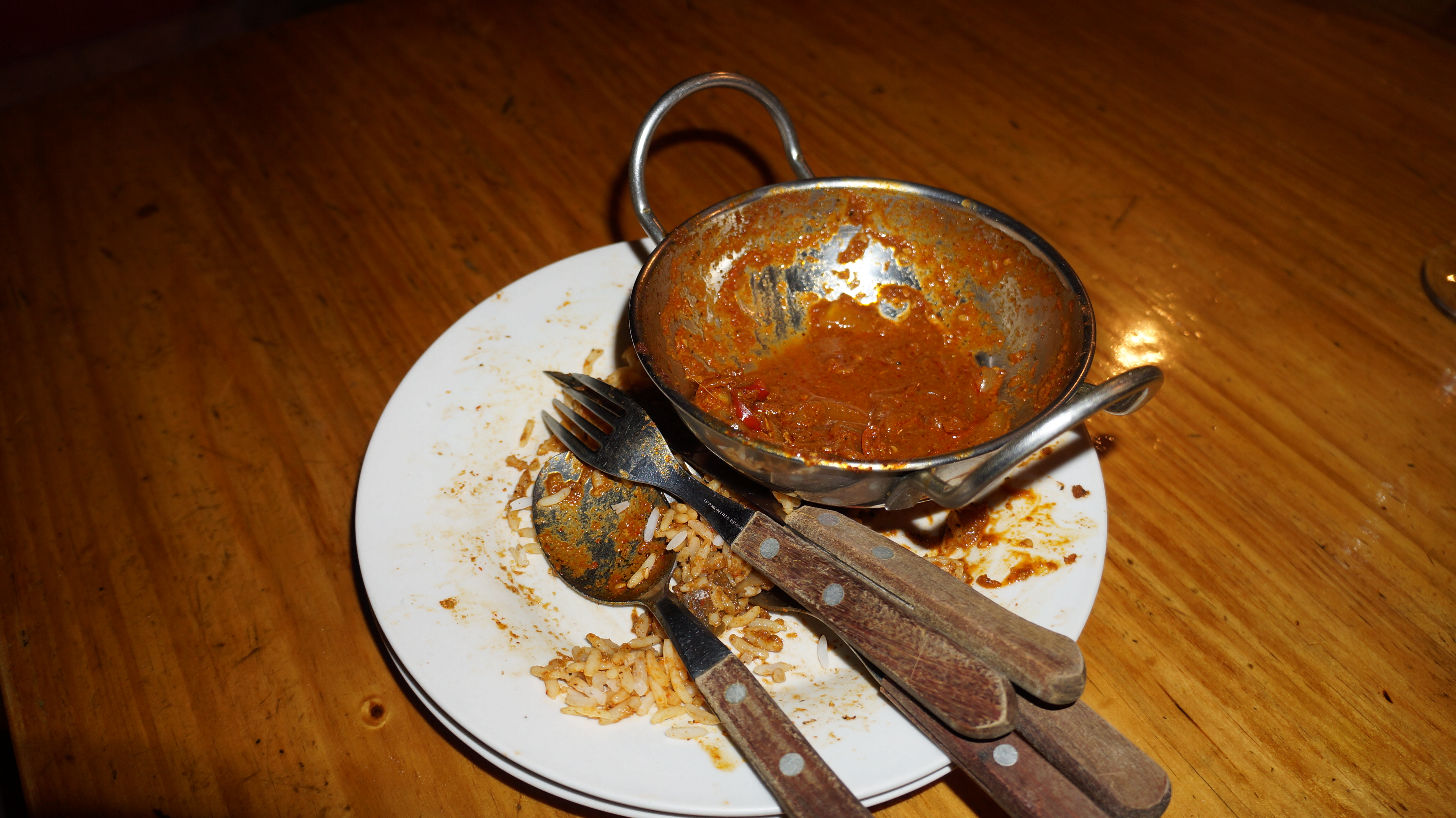 The food was incredible with great flavour and we’d even go as far as to say it was one of our most memorable curries ever…and we’ve eaten a few! The vindaloo was extremely hot and Dan needed to use several paper napkins to stem the small stream trickling from his forehead and to dry his eyes.