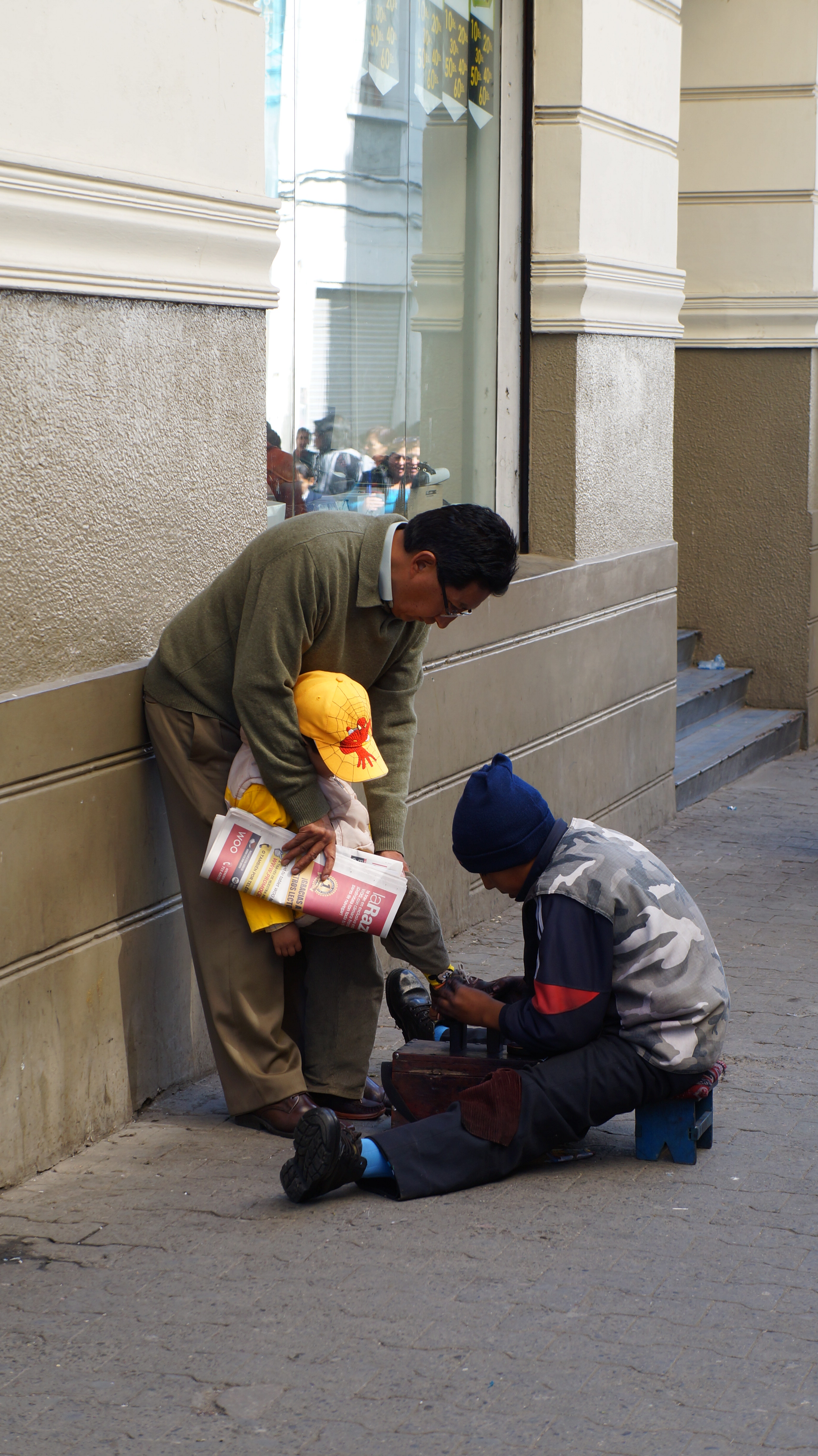 There are thousands of street kids living in La Paz and many work as shoe-shiners, which is seen as the lowest form of employment.