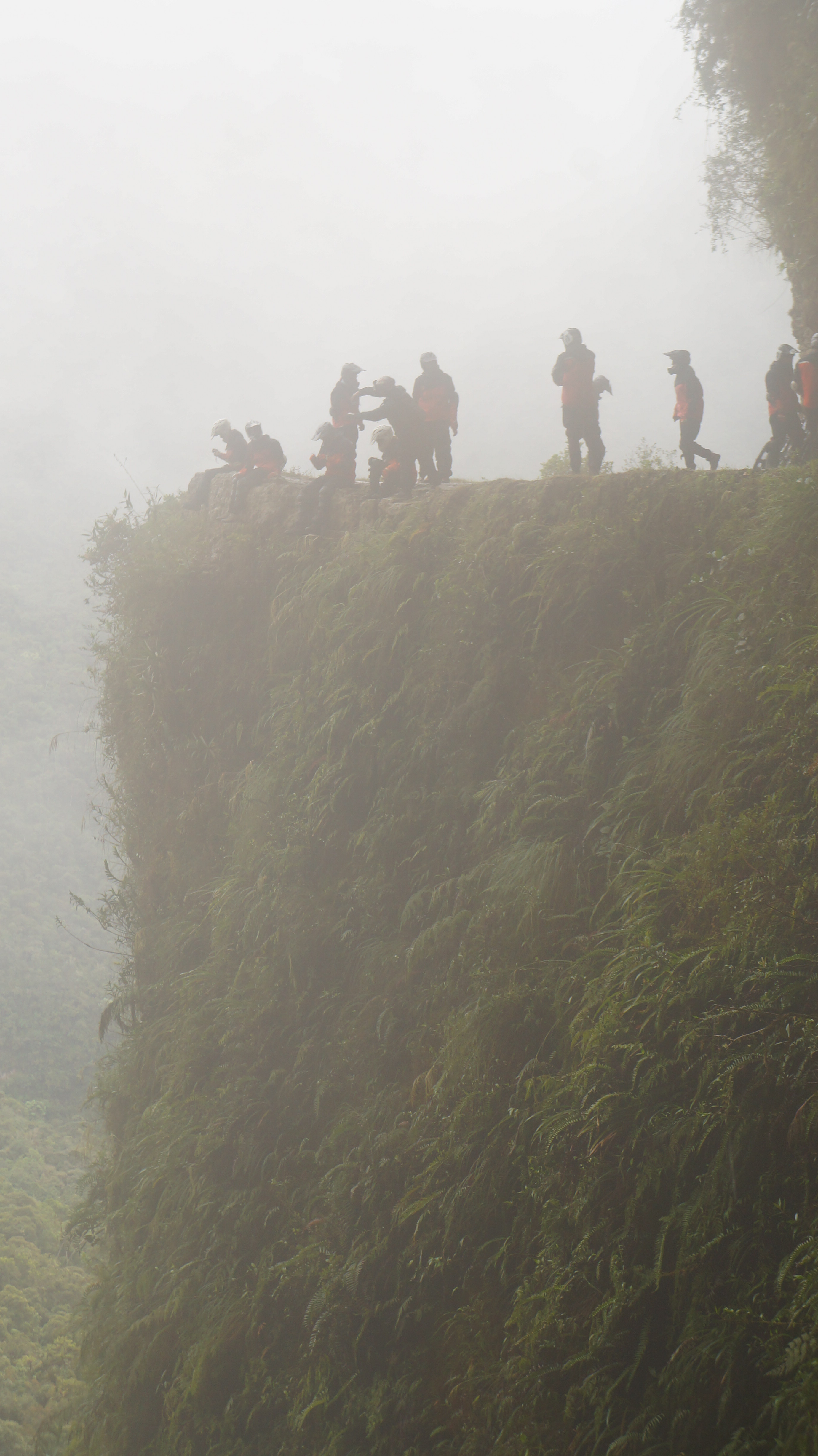 The guides stopped us regularly to check we were all still together and to explain a little about the next section of road – whether it was especially steep or curved. The further down the road we sped, the lower the clouds became until we were completely surrounded by them and a fine drizzle soaked us.