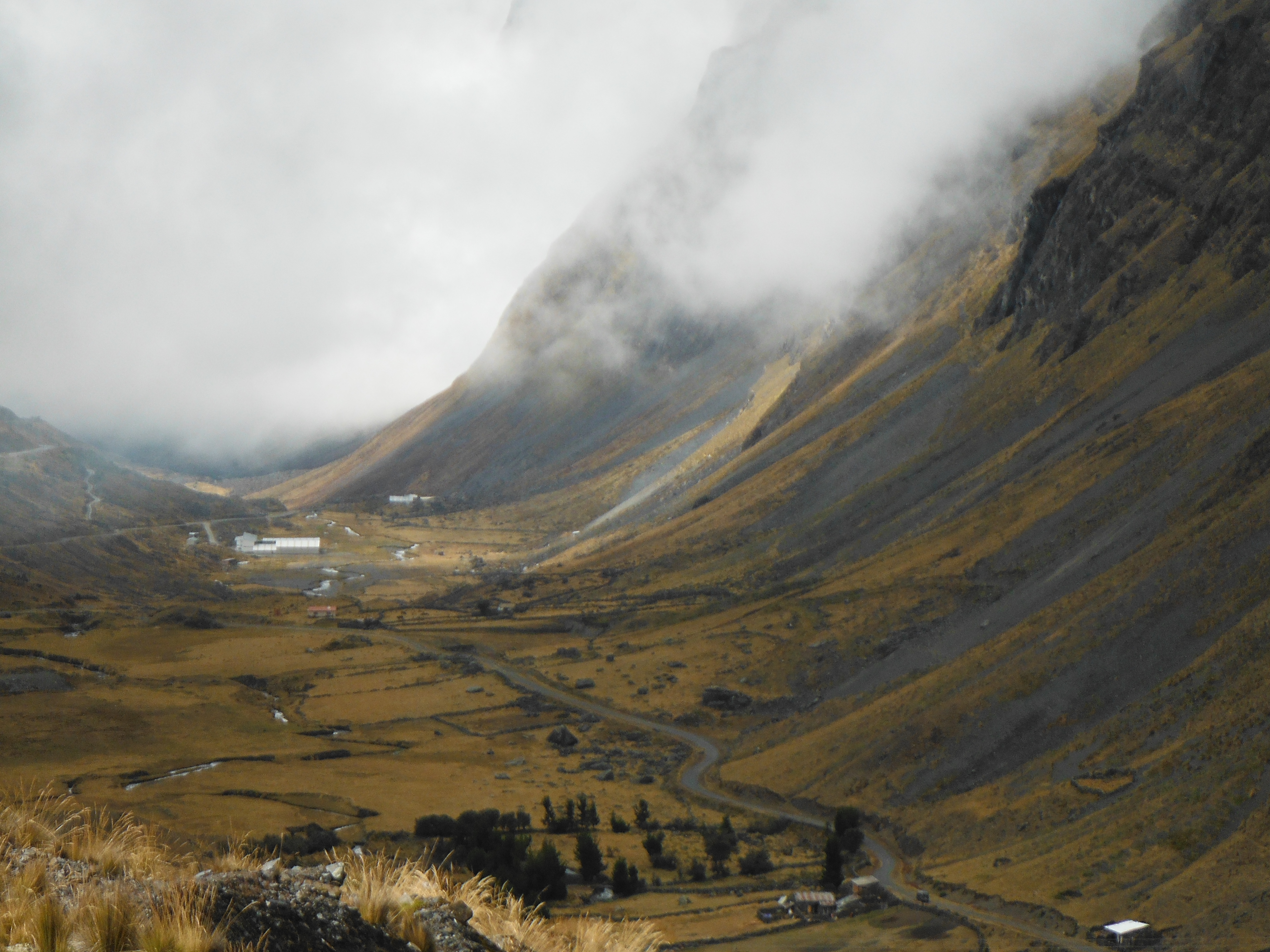The clear blue skies had started to cloud over and a layer of mist was fast descending around us. We still saw glimpses of the magnificent mountains and deep valleys filled with yellow Andean grass and frozen waterfalls.