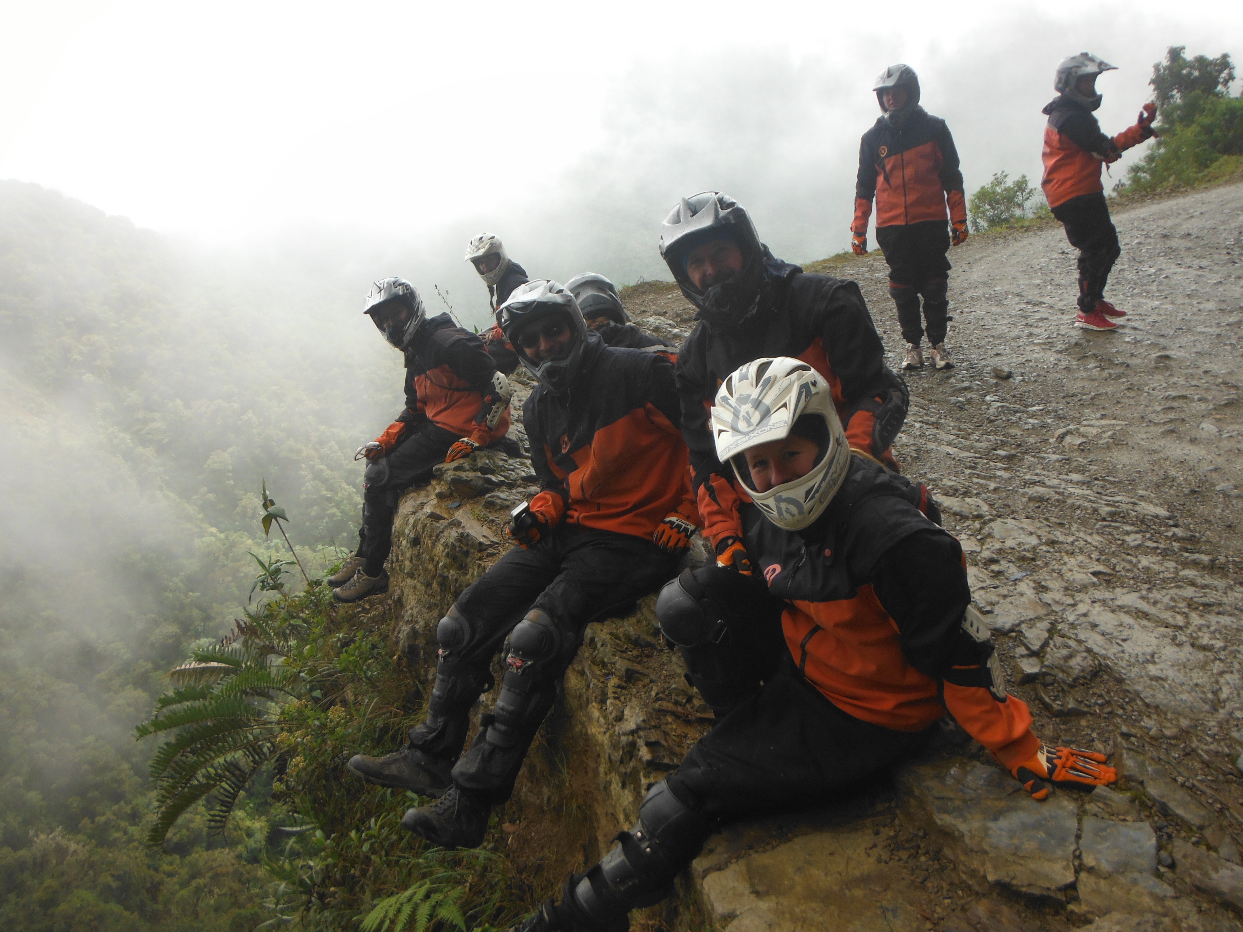 The road was full of pot holes, some large rocks and some sandy lose scree, but it wasn’t worse than many of the off-road tracks we’d been on during our trip. The characteristic that made it frightening was the vertical drop with no barrier and the rough rock cliff wall that would leave you looking pretty ugly if you rode into it. Along the route it’s still possible to see in places the wreckage of cars that have crashed to the valley floor and crumpled into nothing more than a metal box. Seeing this made the group very quiet as we contemplated the awful final few moments of these people’s lives.