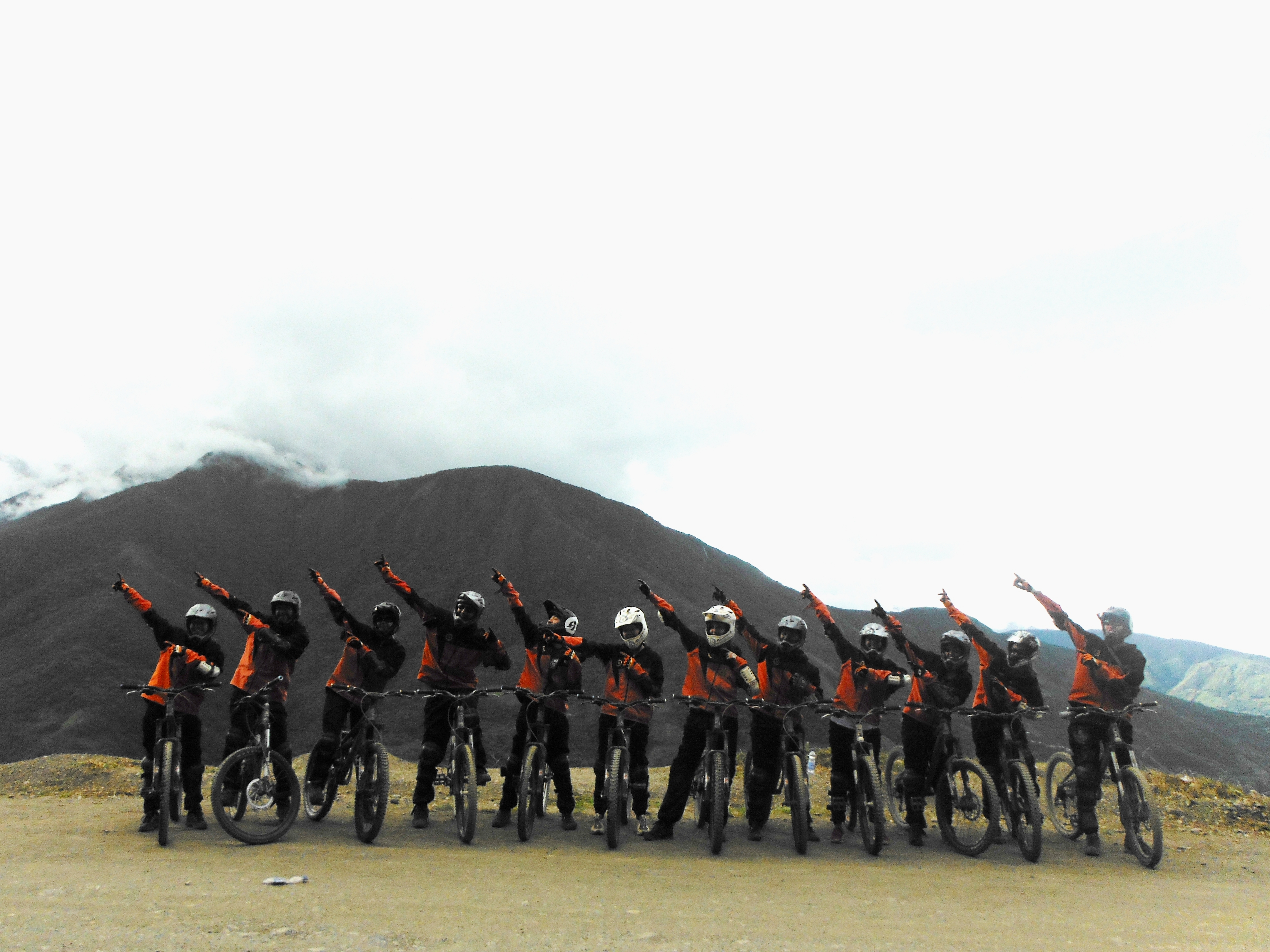 We met outside the agency at 8.30am as our bikes were being loaded onto the roof of the minivan. We’d tried on our equipment (helmets with full face-guards, water-resistant trousers and jackets, knee and arm pads) the previous day to make sure everything fitted well and we would put on our attire once we reached the start of the ride. There were around fifteen of us doing the ride with Vertigo and three guides (one for every five people), so once we’d loaded up two minivans we set off and drove around an hour out of the city. The starting point for the bike ride was the village of La Cumbra with an elevation of 4,700 metres above sea level.