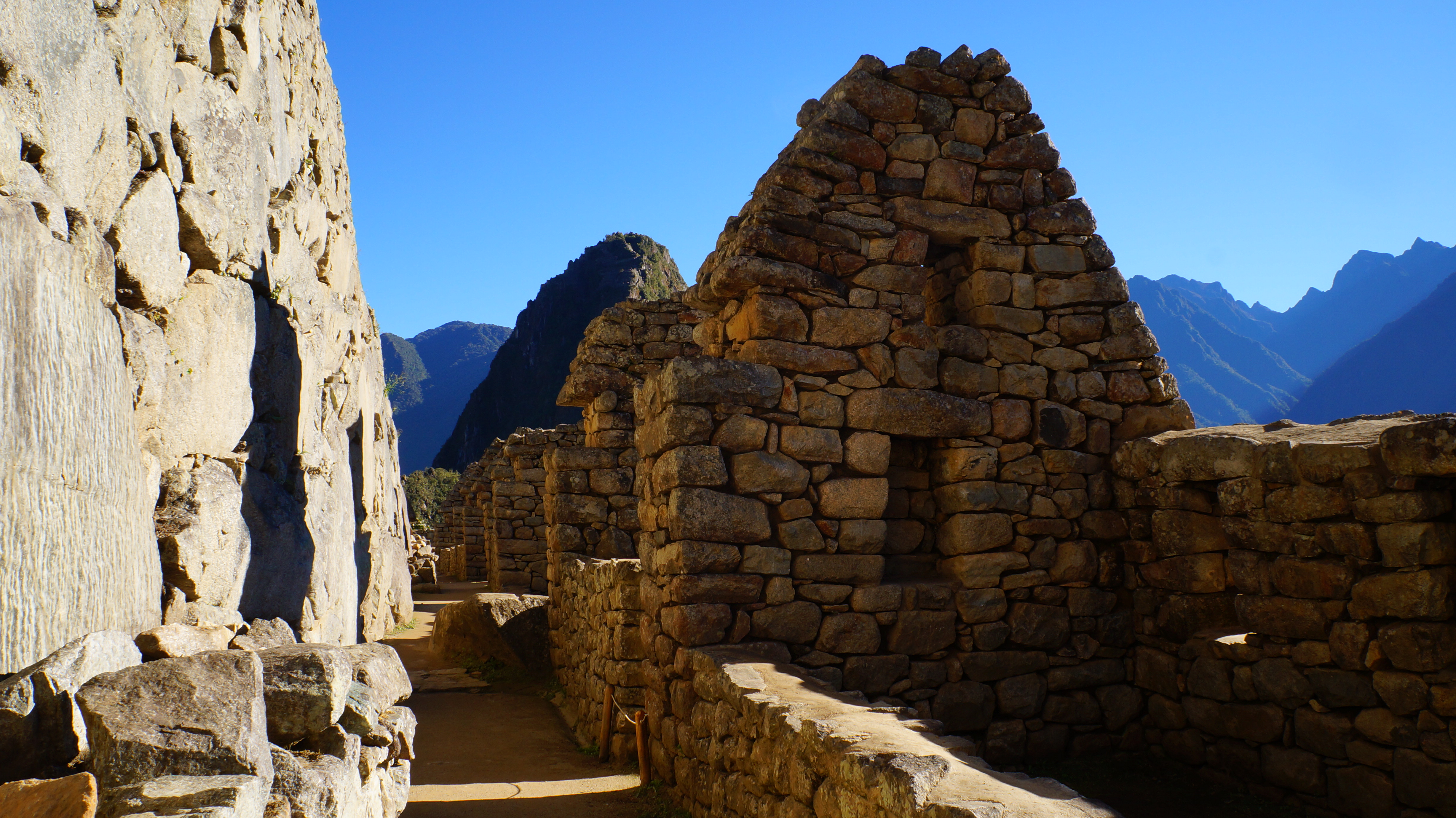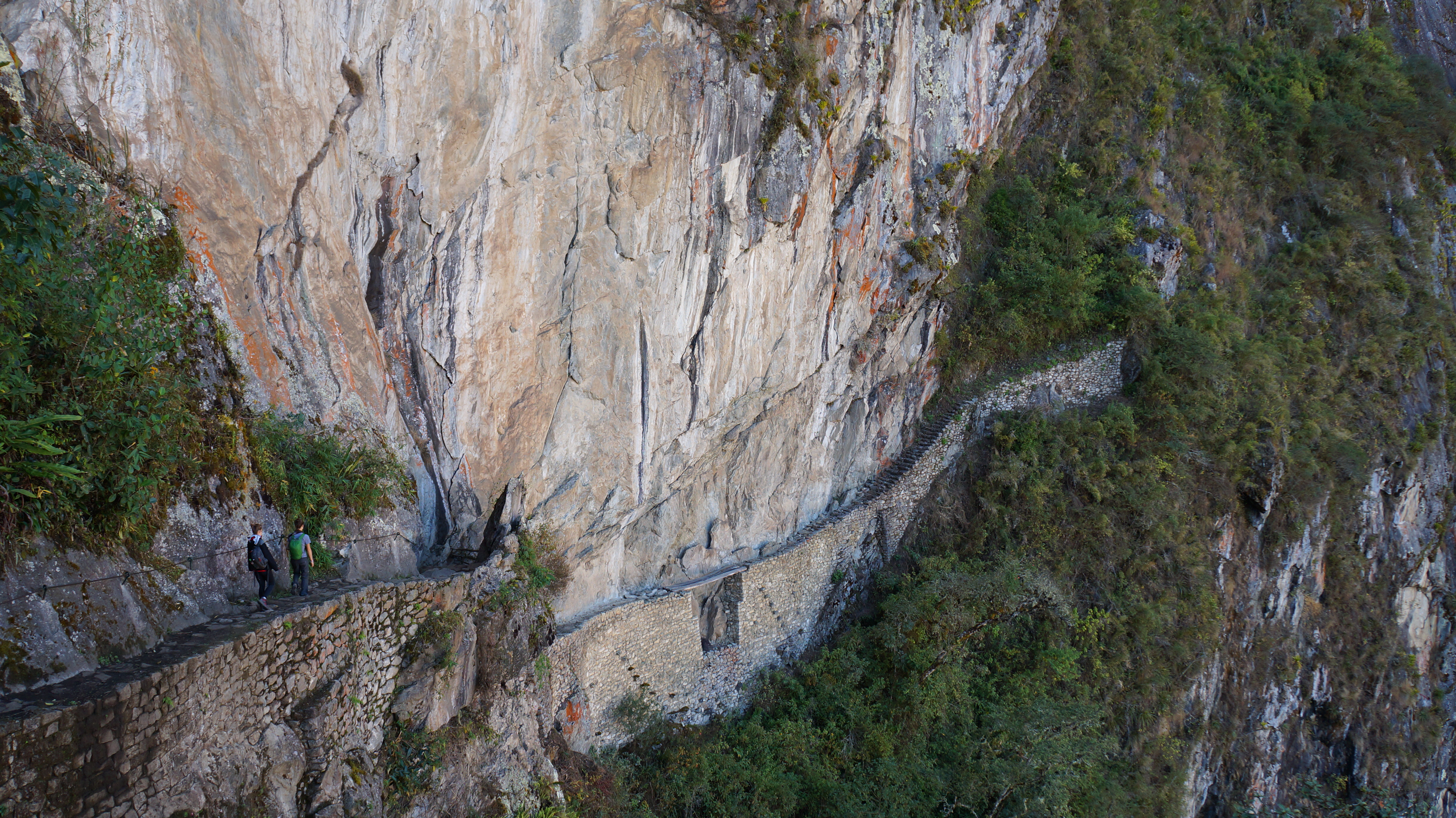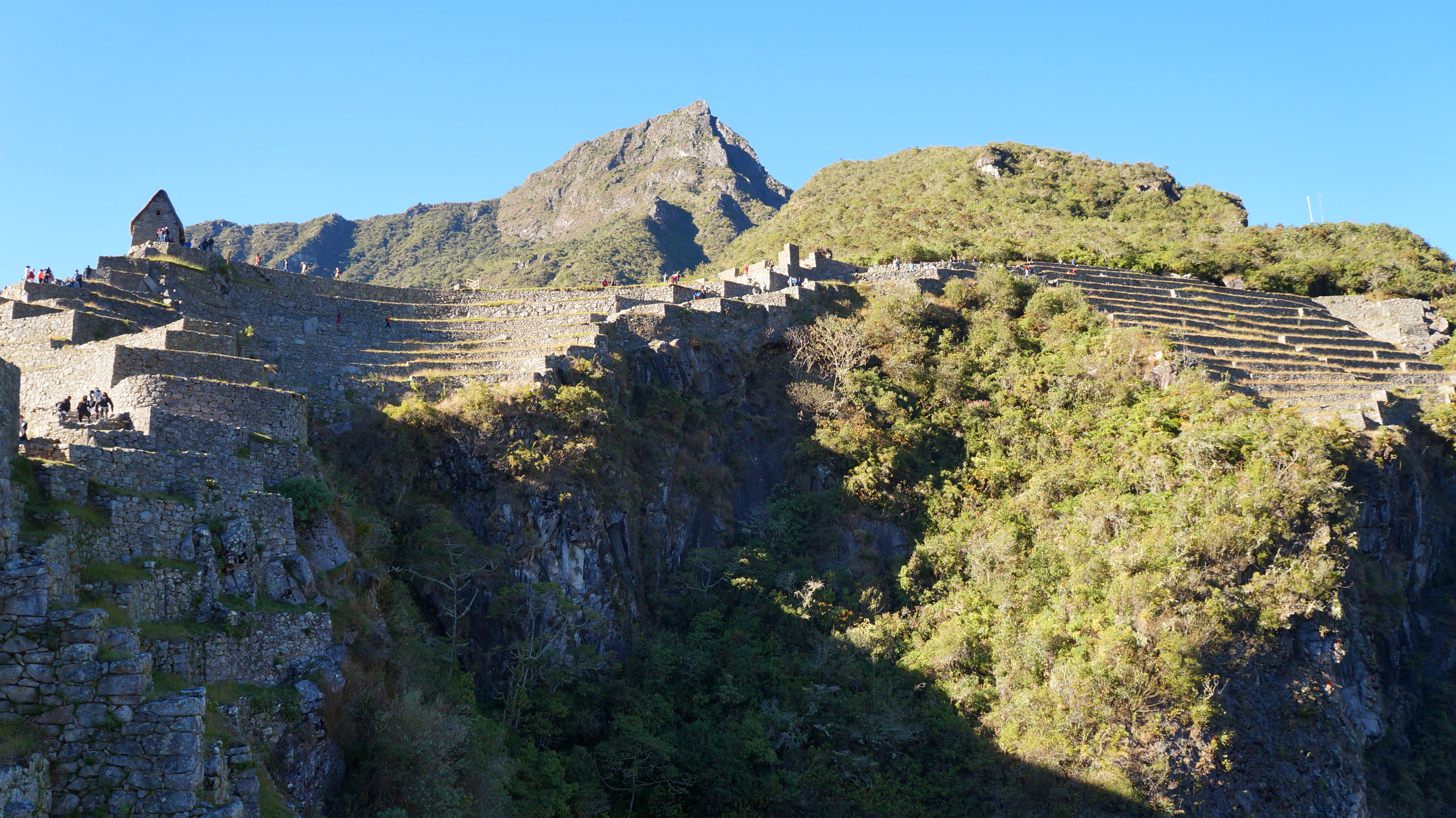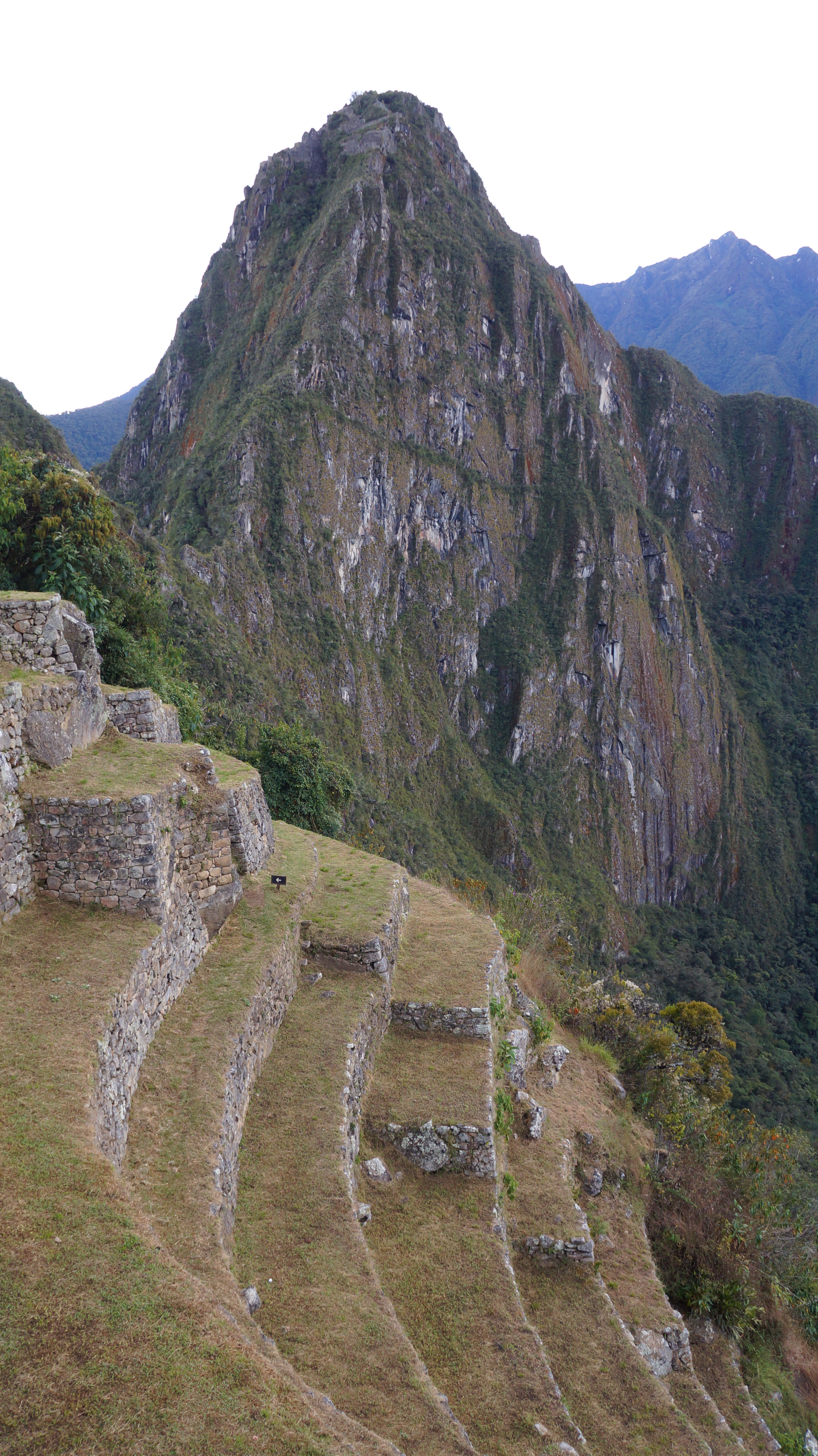 In some places the ruins and rows of terracing clung to the mountainside precariously. The thousands of people visiting Machu Picchu each year is taking its toll and scientists believe that the site is slipping at a rate of one centimetre per month and are encouraging the Peruvian government to take steps to protect the site and prevent further damage or, in a worst case scenario, a devastating collapse.