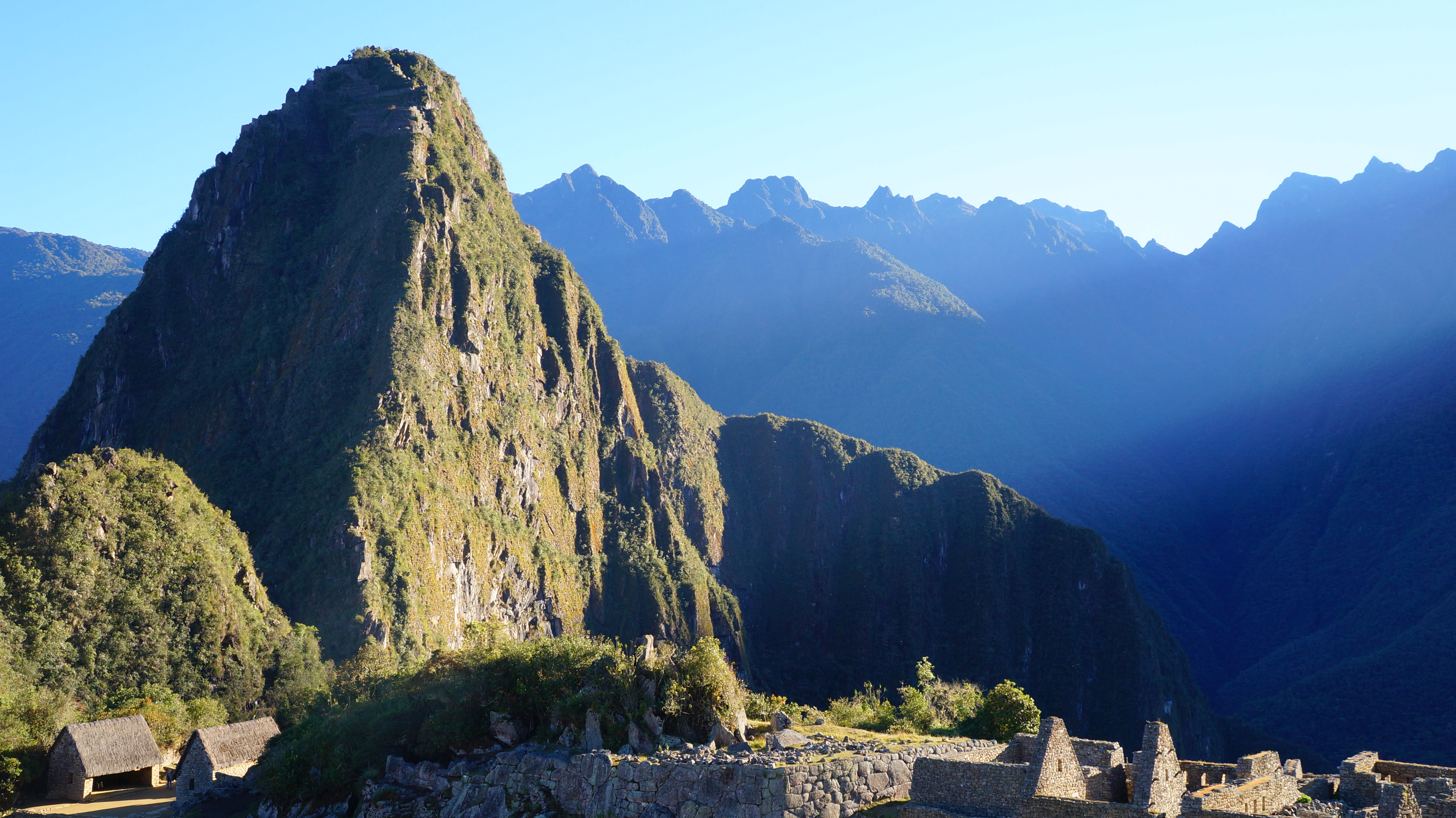 2) Machu Picchu site and nature reserve (a mountain with a winding path to a summit with views and wildlife;