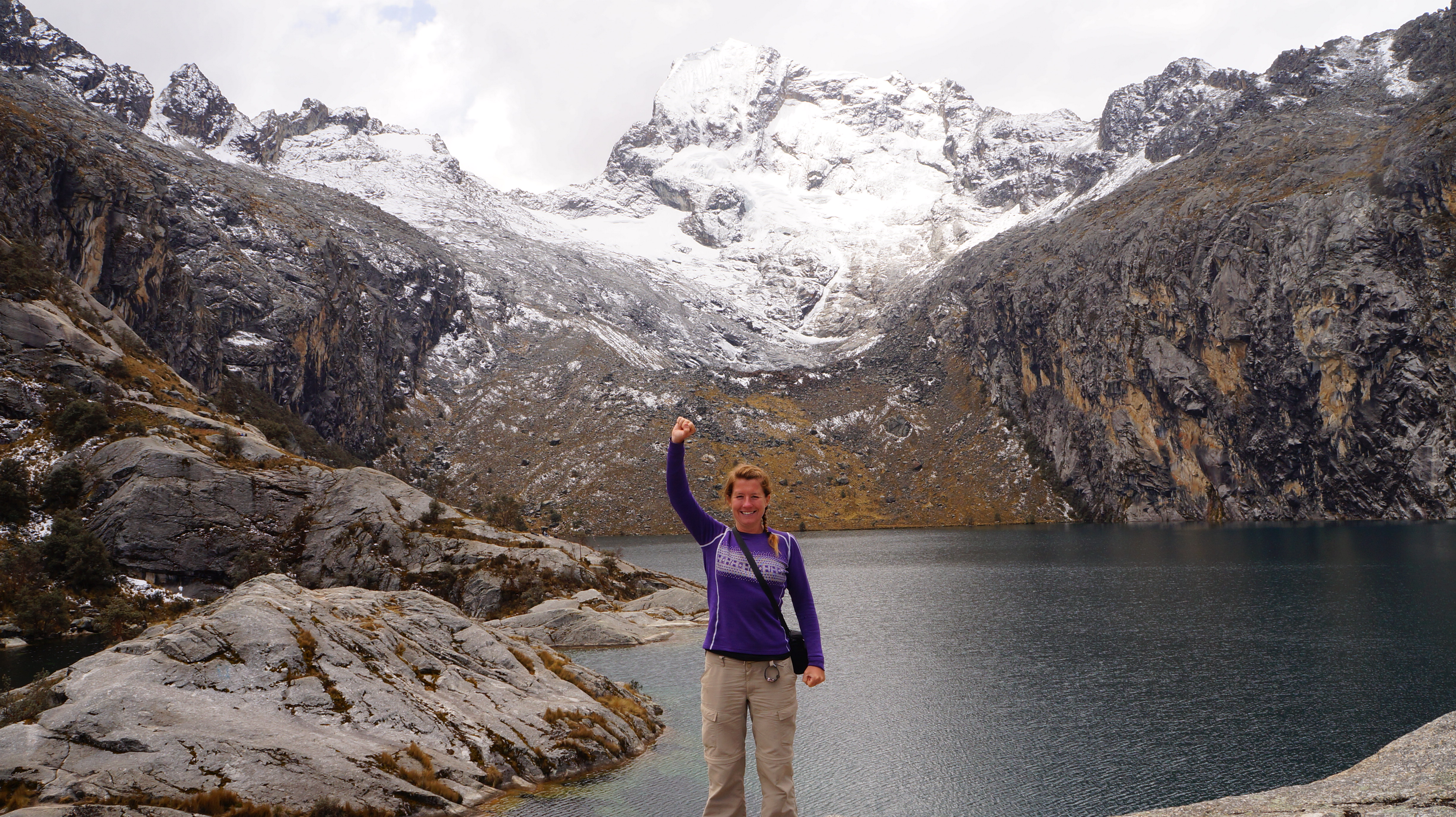 The effort to reach the top was worth every aching muscle when the view of Lake Churup came into sight. We were jubilant and hit the air with fisted hands.