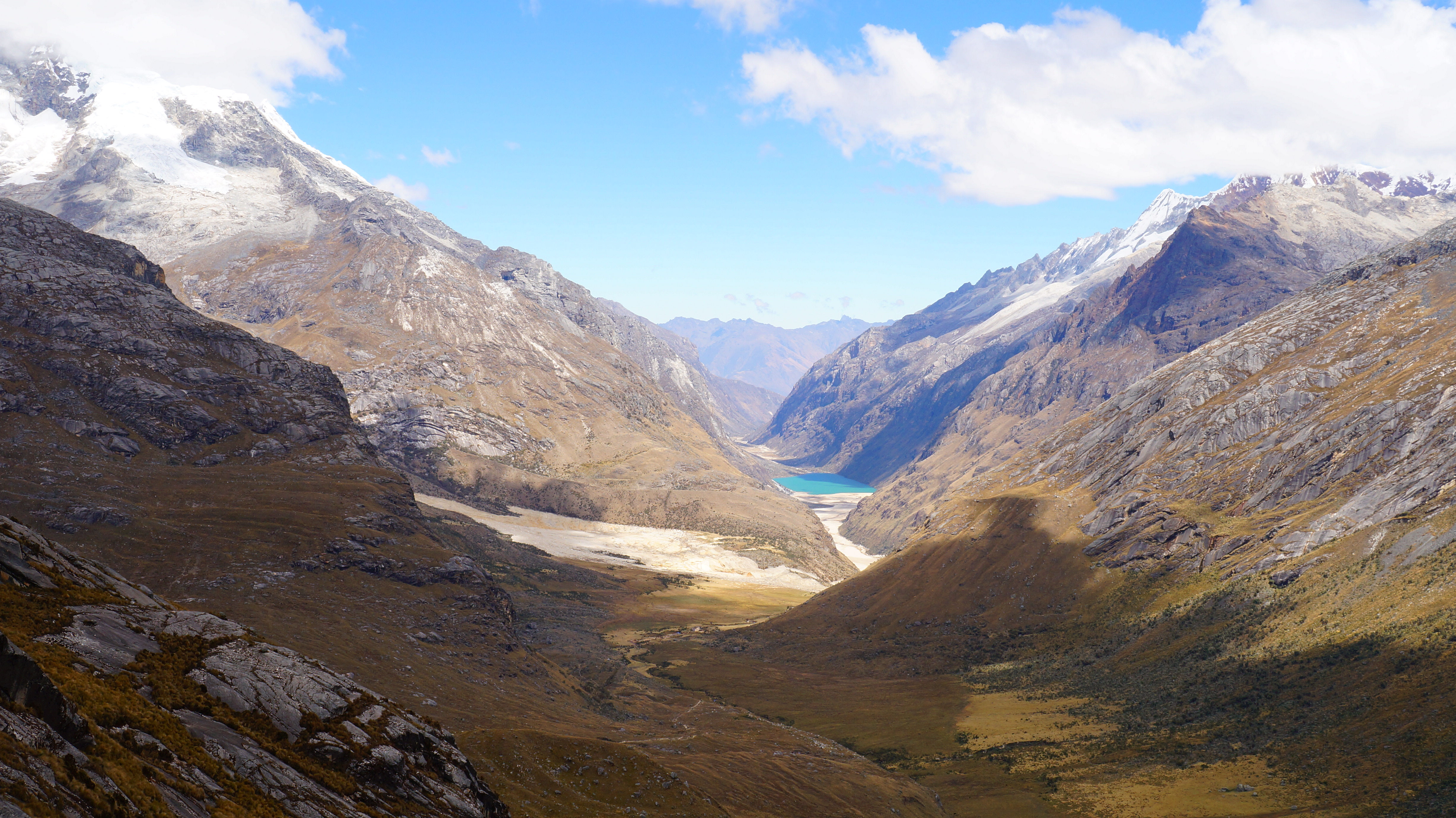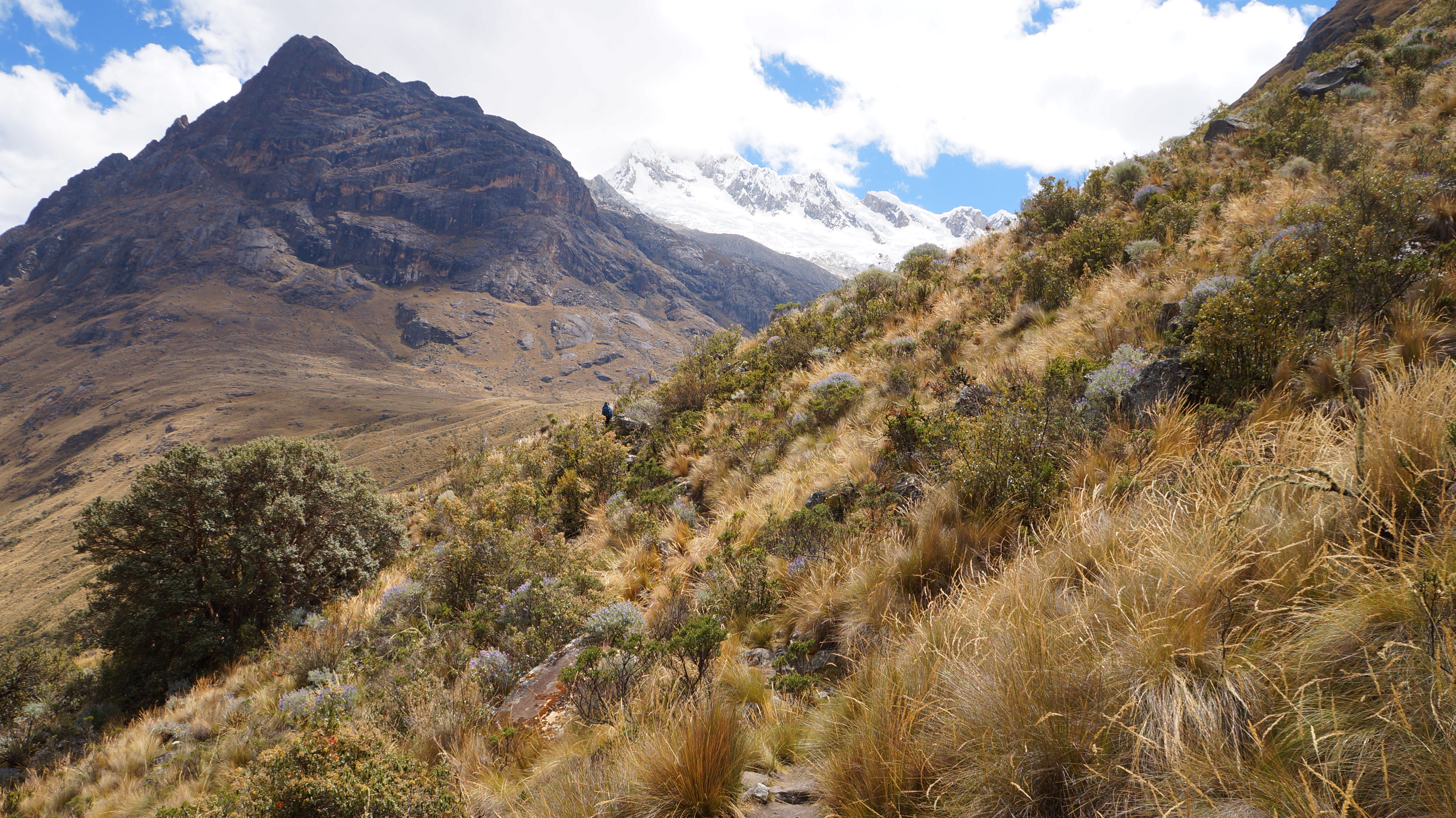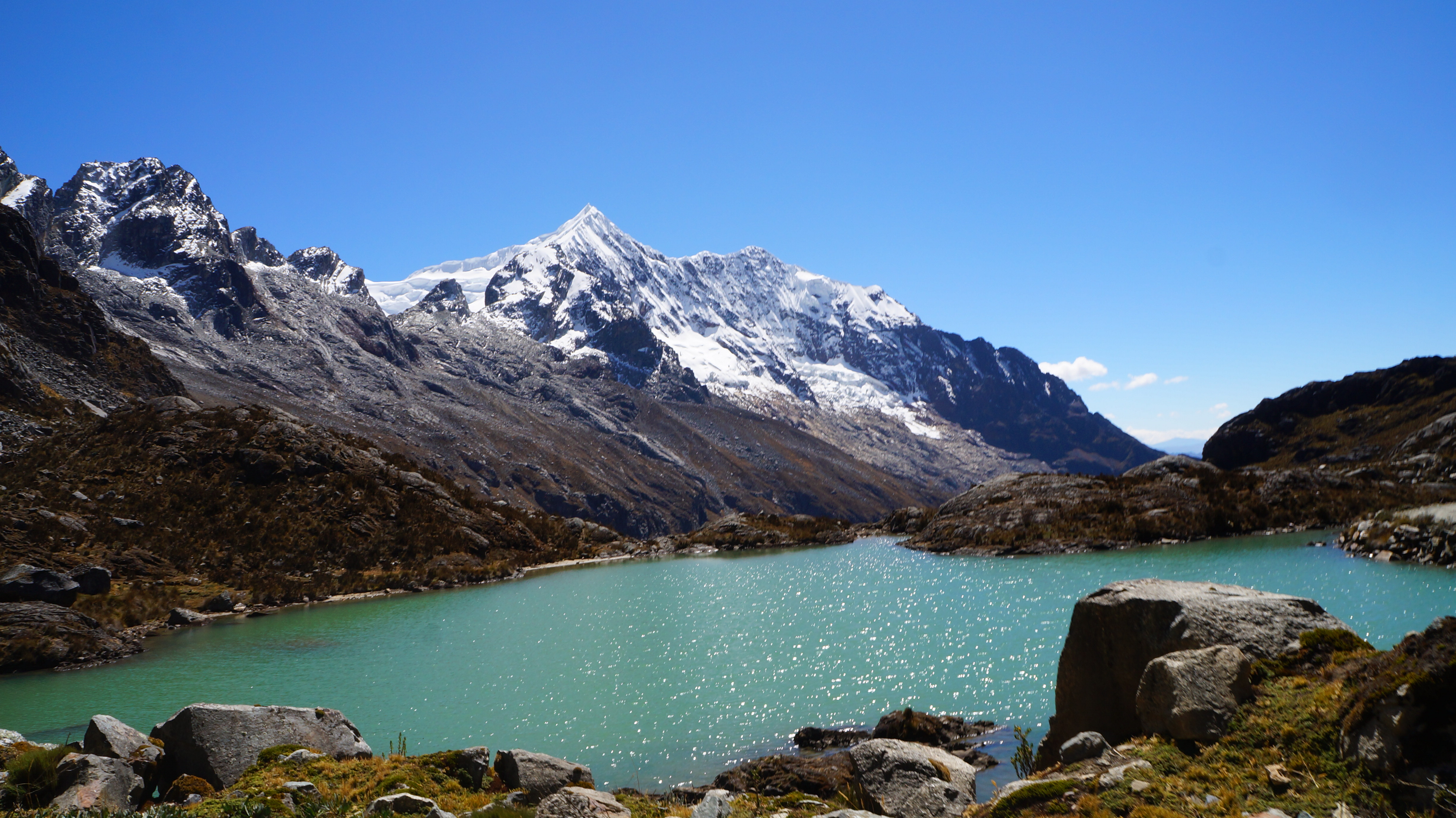 The lakes were nestled at the base of a steep, narrow valley. Rising majestically above the valley some of the world’s most highest mountains burst into view covered in fresh layers of snow. From here we had a great view of mountain Hauscaran (6,768 metres), after which the park is named, and which is the highest mountain in the whole of Peru.