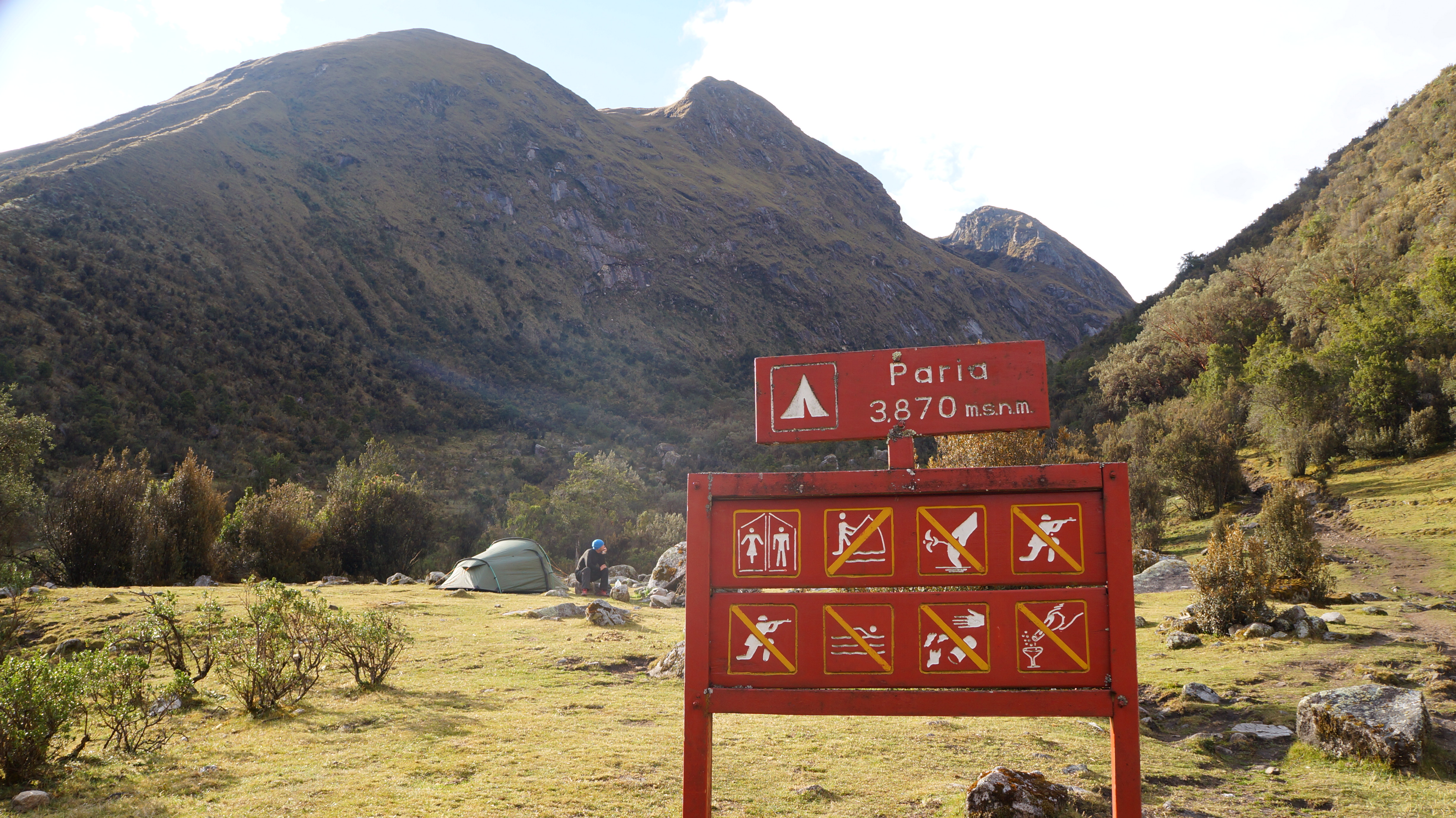 We spent our first night at Paria camp and our second night at Arhuaycocha camp and both offered flat, grassy areas next to bubbling brooks and scenery which killed any chance of conversation.