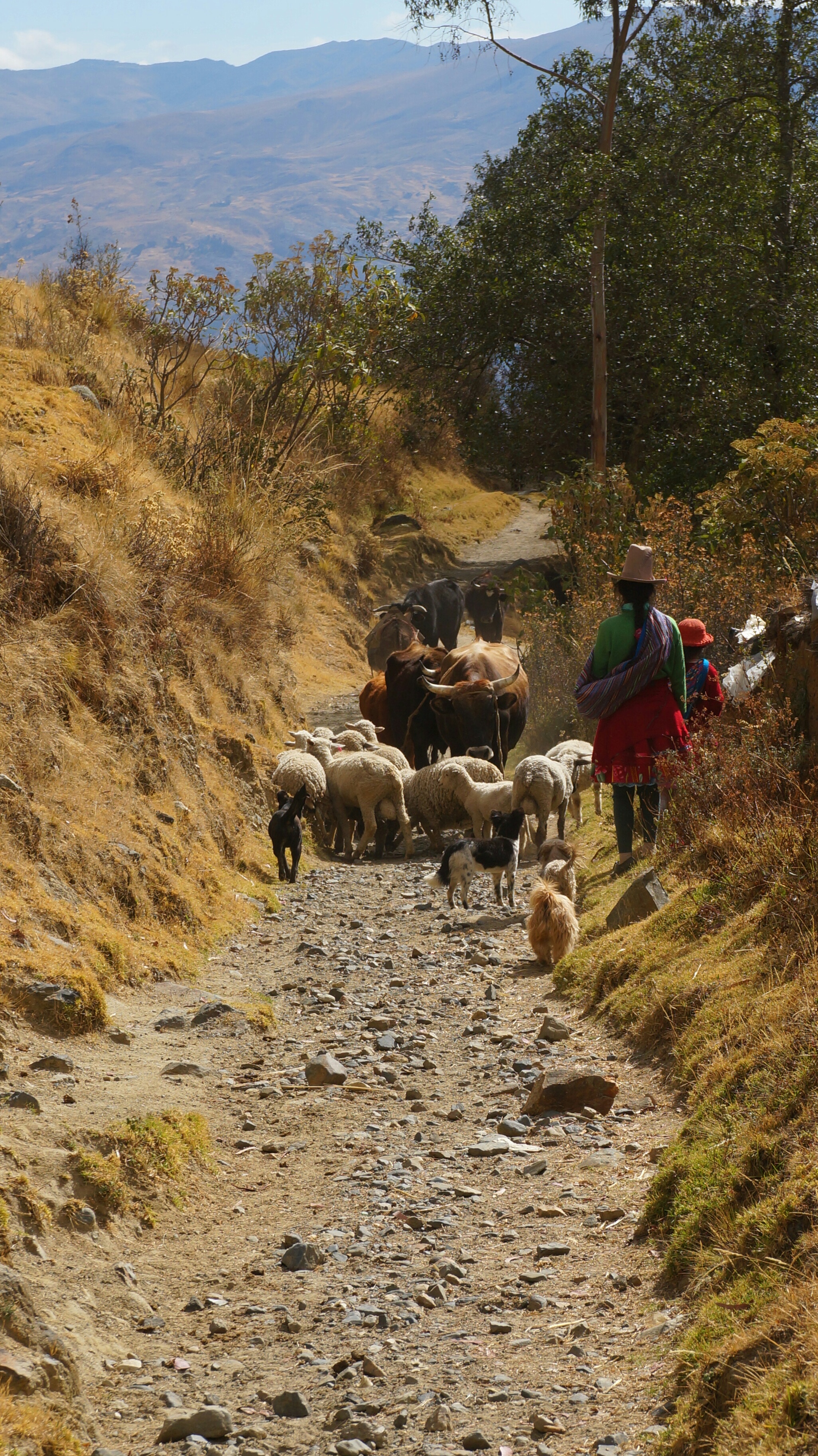 The first day trekking took us around 4 hours and we climbed 600 metres on undulating paths from 3,440 metres to 4,000 metres. We could already feel that the altitude had got our hearts beating a little faster. We passed through several small mountain communities in the first hour of our walk, who relied on farming for survival.