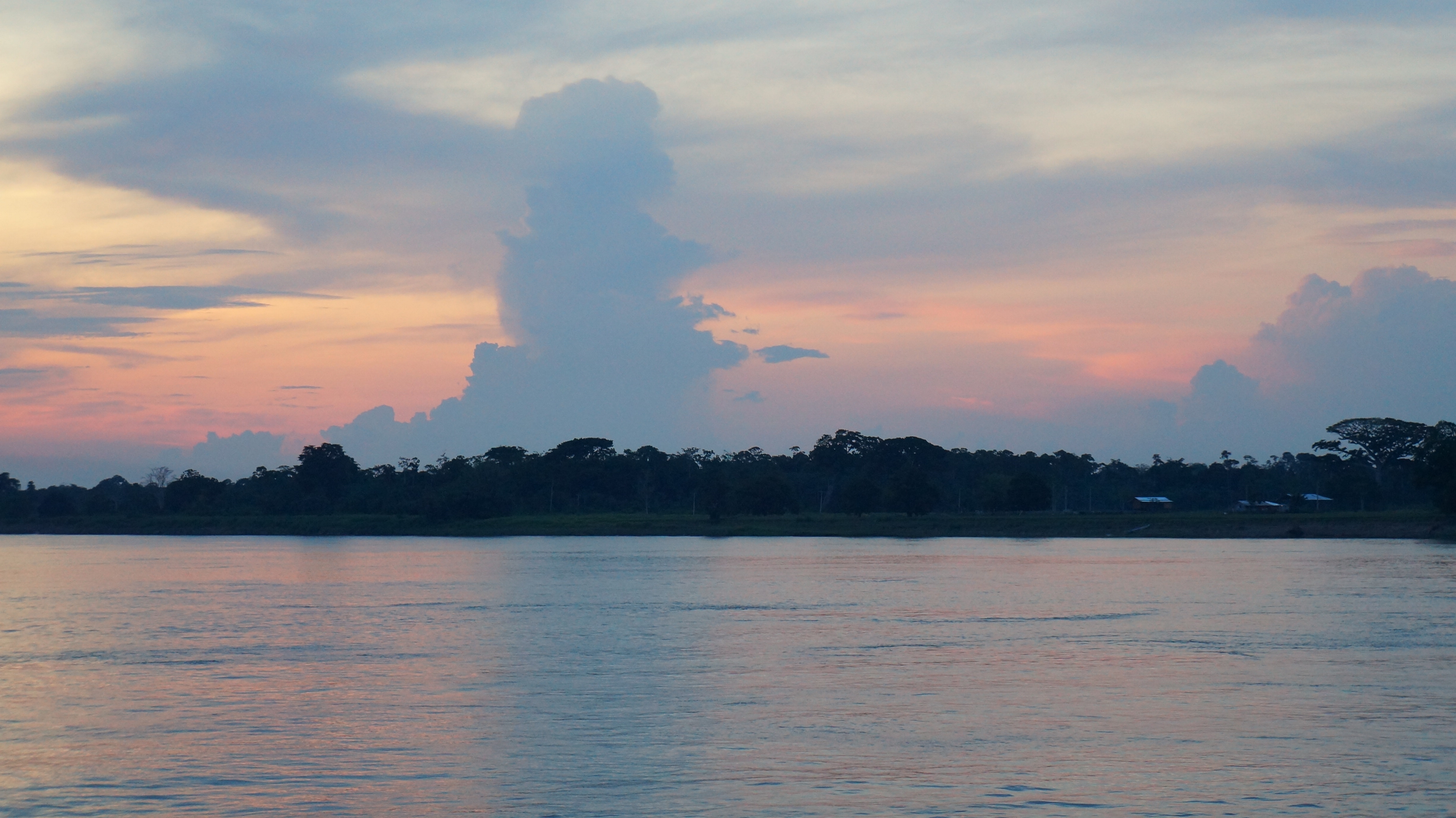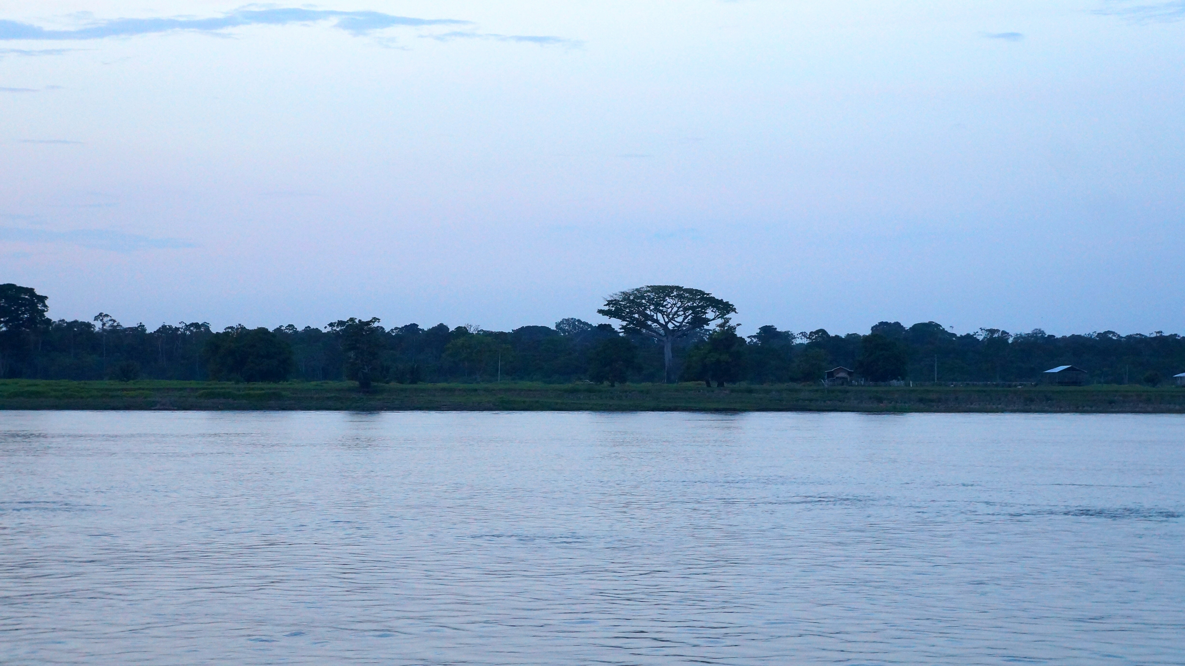Another pot full of rice, another plantain, a boiled potato and beef with more gravy graced our table and we knew we’d over dosed on carbs we the top button of our trousers needed to be loosened. We leaned over the back of the boat after dinner stretching our legs before bedtime. We’d poured ourselves a rather large cup of rum and added coke and a large squeeze of lime in each. We stared out into black nothingness. There were no stars and no moon to brighten up the night sky – just a thick blanket of cloud above us. The water looked dark and uninviting and we could no long make out the river bank. Still, there was something enjoyable about cruising through the calm, darkness and savouring the sweet taste of our homemade cocktail. Every now and again we heard a distant rumble of thunder as the storm slowly moved away to terrorise someone else.