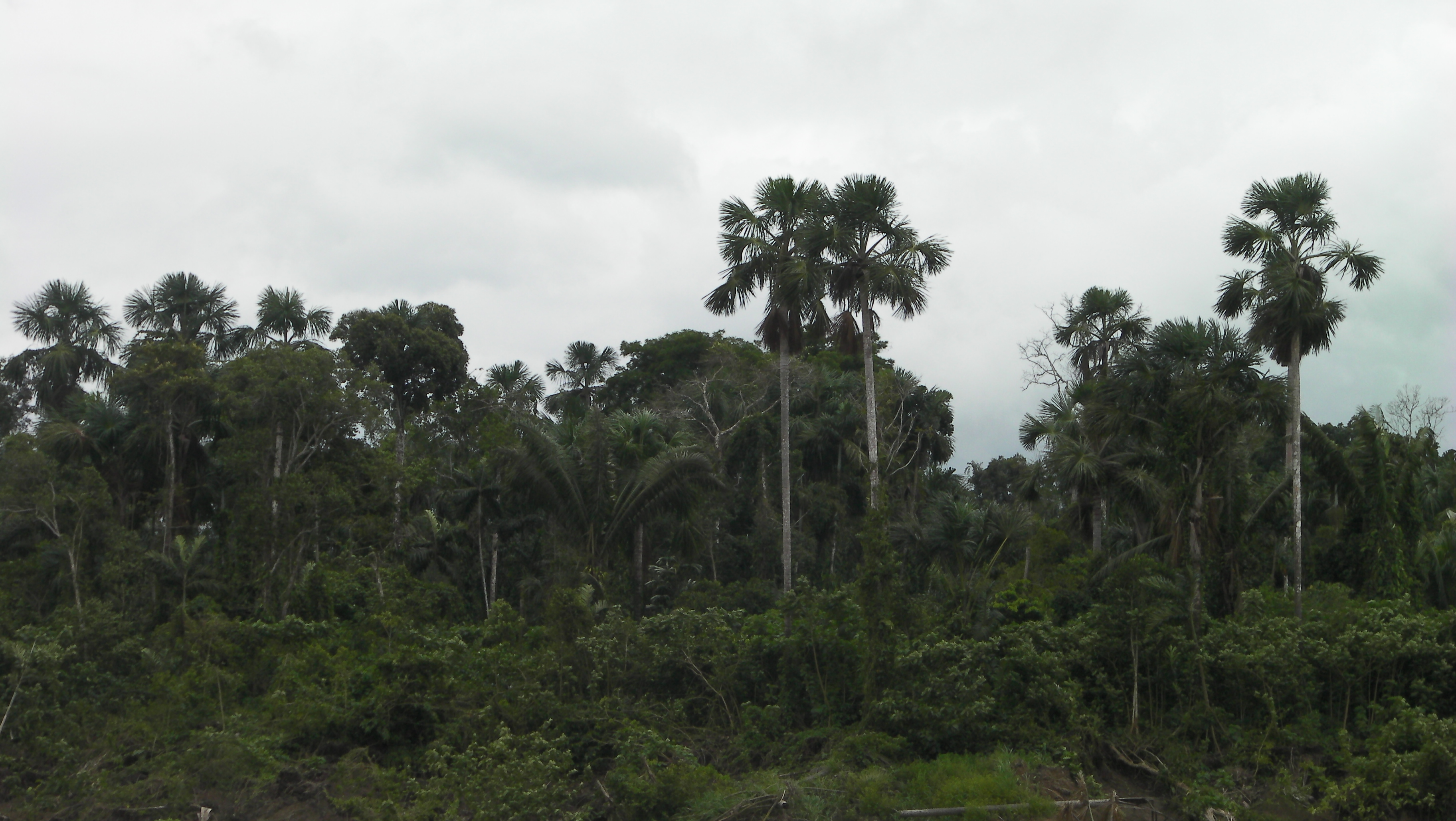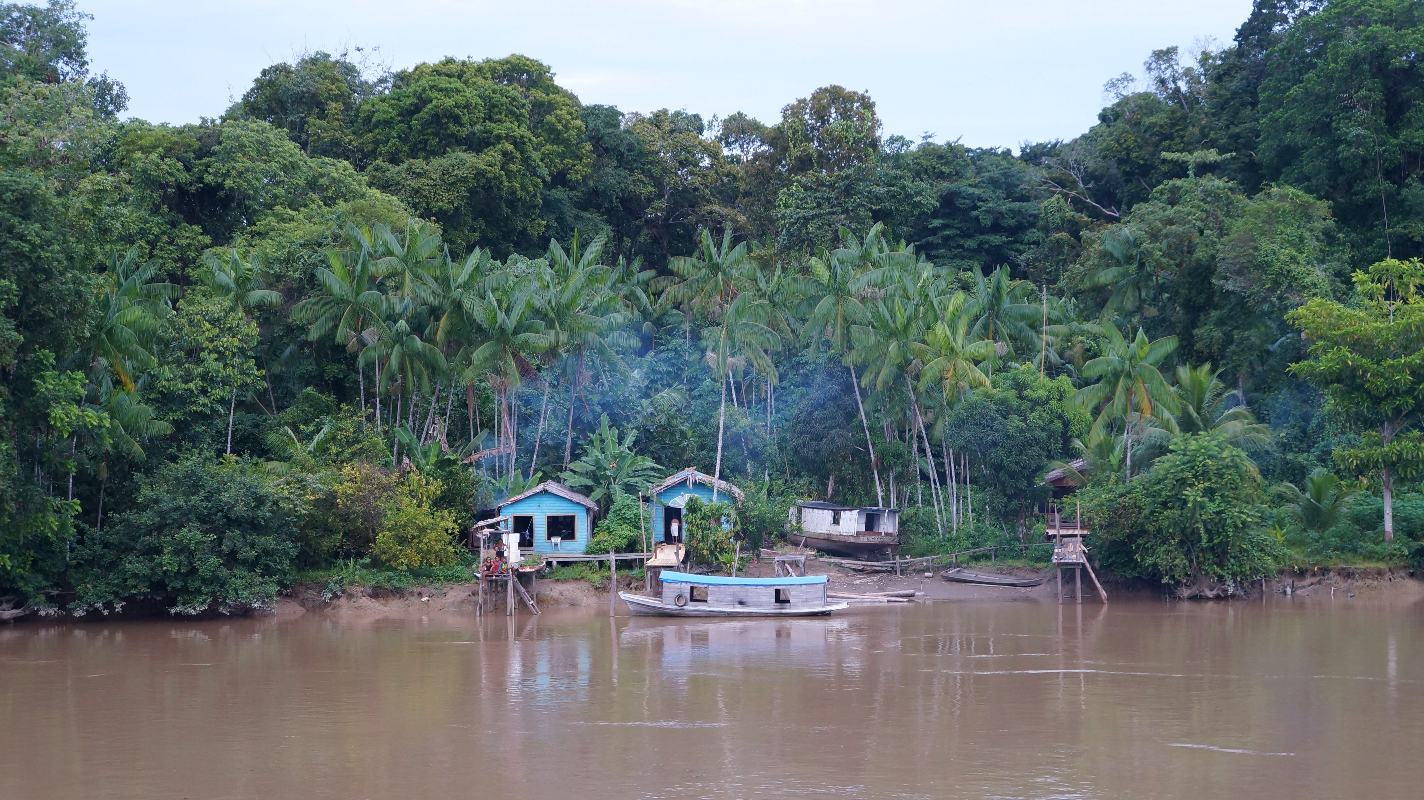 The afternoon drifted by slowly with a smothering heat that drained our energy. We felt a little restless and we took it in turns to wander the boat whilst the other watched the bags. In the surrounding jungle, palm trees full with golden coconuts poked their heads out of the trees and green bananas sat piled on the shore ready to be transported up steam for sale.