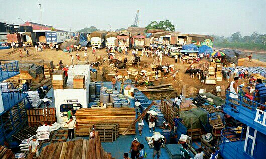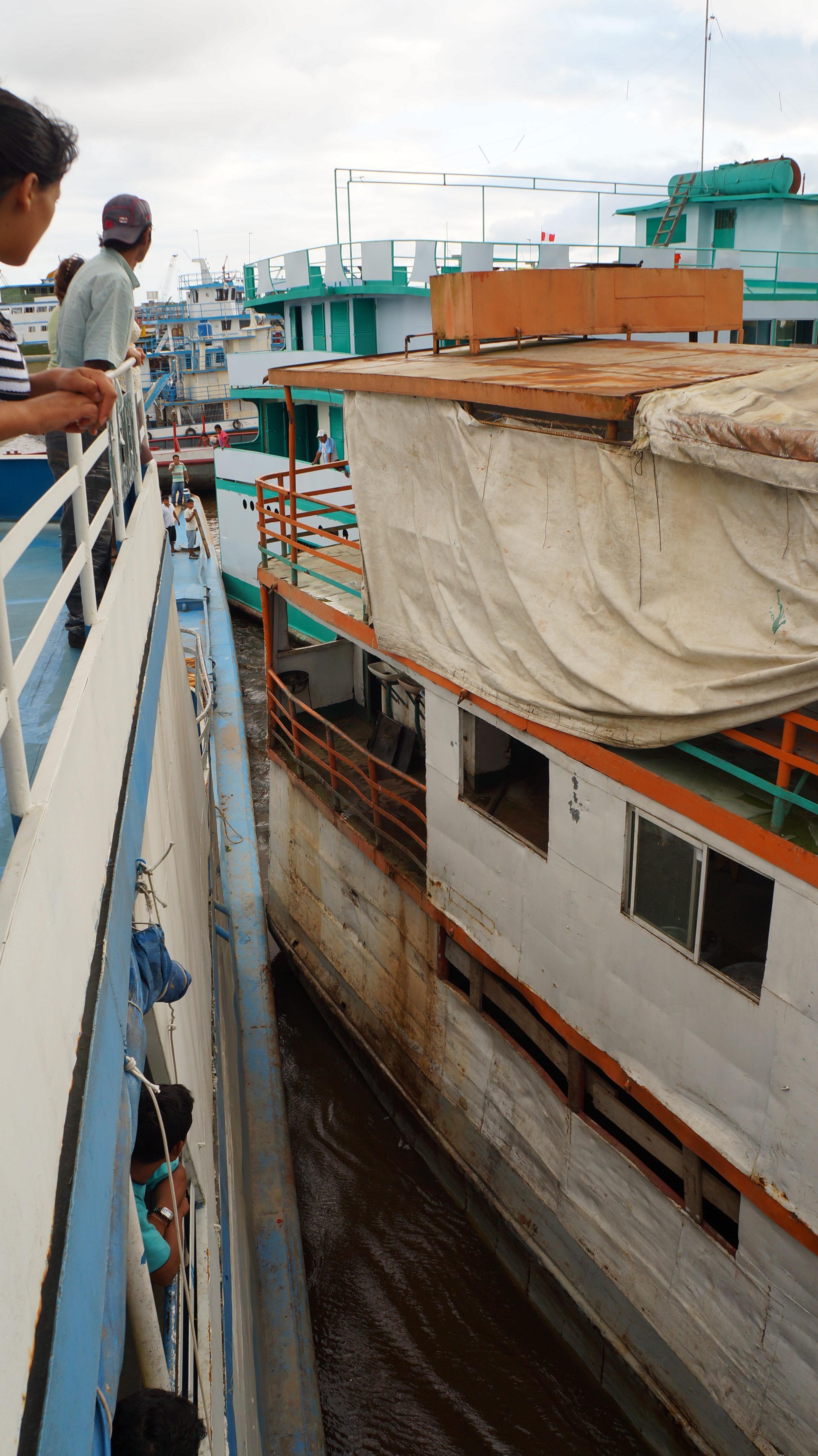 We travelled from Chachapoyas to Yurimaguas on a bus which descended from Andean mountains to flat, steamy jungle. The journey offered no end of beautiful vistas but after driving for close to 10 hours on roads that wound one way and then the other, we were completely shattered. We’d been told by several people that boats depart every day at 12.00pm so we arrived in Yurimaguas at 10.00am, made a quick stop at the central market for vital supplies and headed to the port.