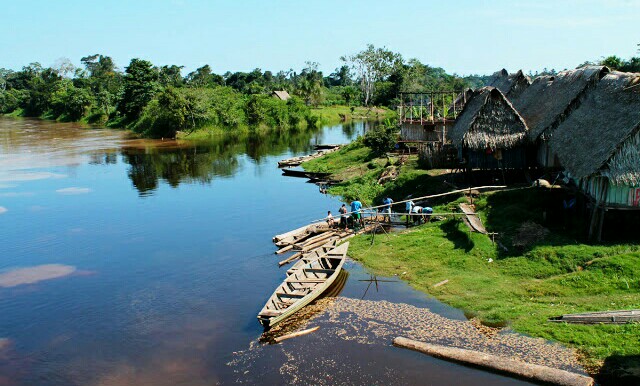 There was a buzz of excitement on board as we reached a point when the river we were travelling on (the Maranon) met another river (the Ucayali) and became one – the very starting point of the mighty Amazon river. There were no markers or banners announcing the fact and no visible changes in scenery, apart from the increased width and volume of the river, but the look on everyone’s faces on board expressed what a good feeling it was to now be cruising on the fabled Amazon itself.