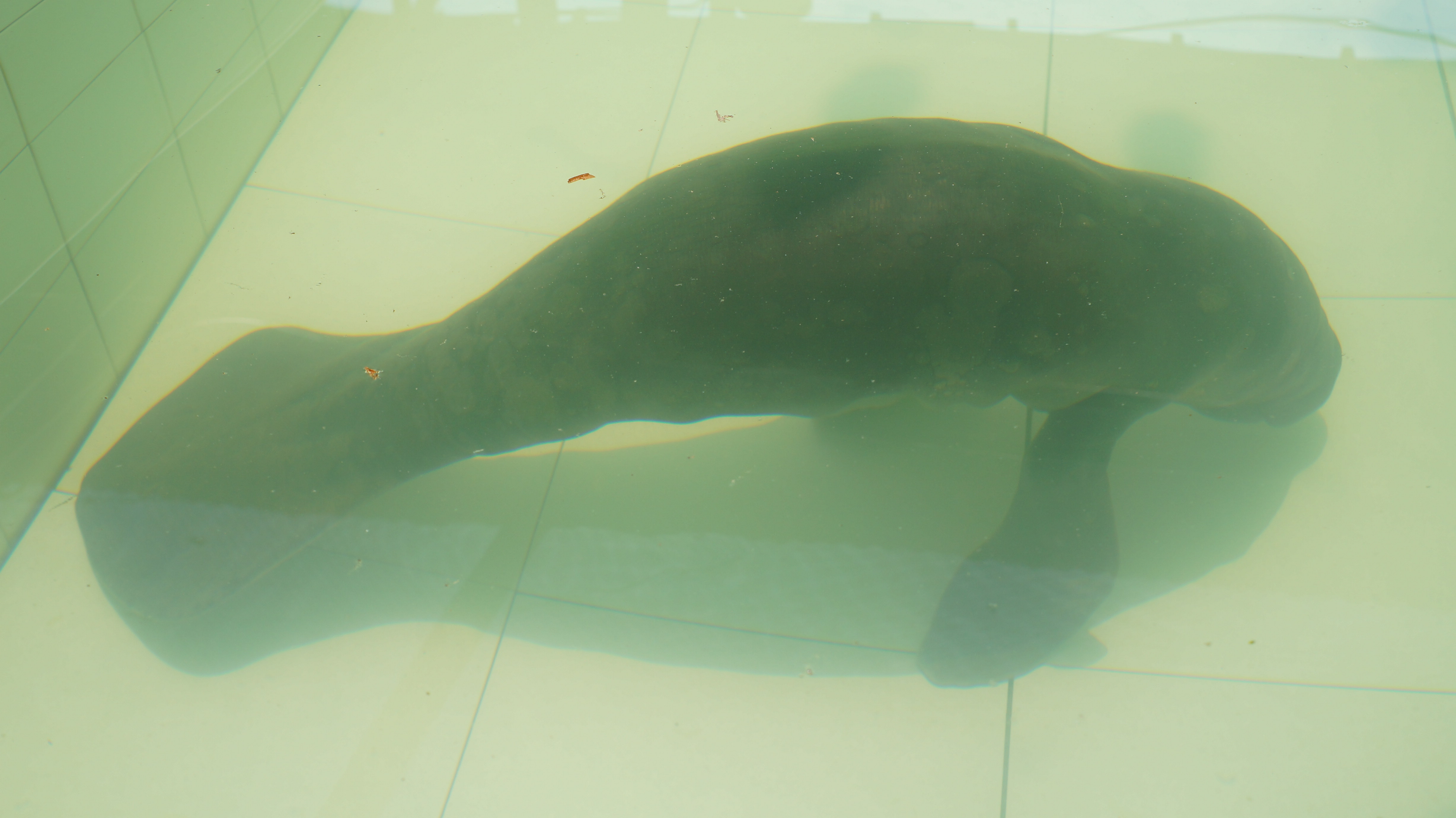 It was funny when they rested their top lips on the edge of the pool whilst waiting their turn for a feed and a scratch. One in particular was very fond of banana and would sit patiently by the banana bowls clamming his mouth shut when we would try to feed him green plants, but slurping any banana down greedily. The other two weren’t so fussy. The manatees took food from us very gently and their bristles, which are used when foraging for food, tickled our hands. Whilst feeding with one hand, we could rub their tight but soft skin under the water with the other. They particularly seemed to like long strokes down their backs.