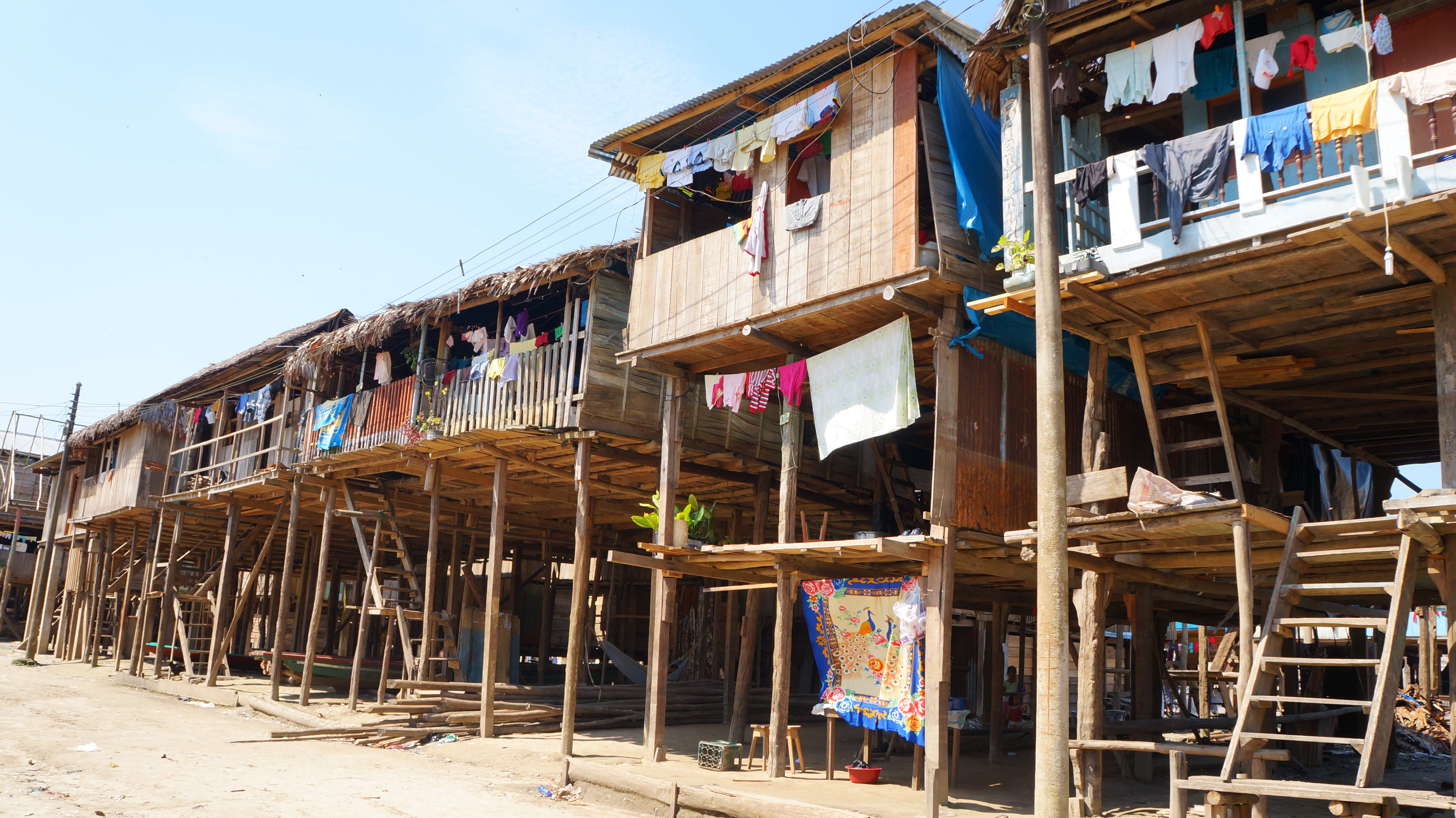 The houses were very unusual and striking and the poor locals had taken great pride in painting them up, however, the rows of wooden toilet blocks at the back of the houses had no running water and raw sewage emptied into ditches and out into the river. In the same area, women washed their clothes and small children played together, lacking anywhere else to go.
