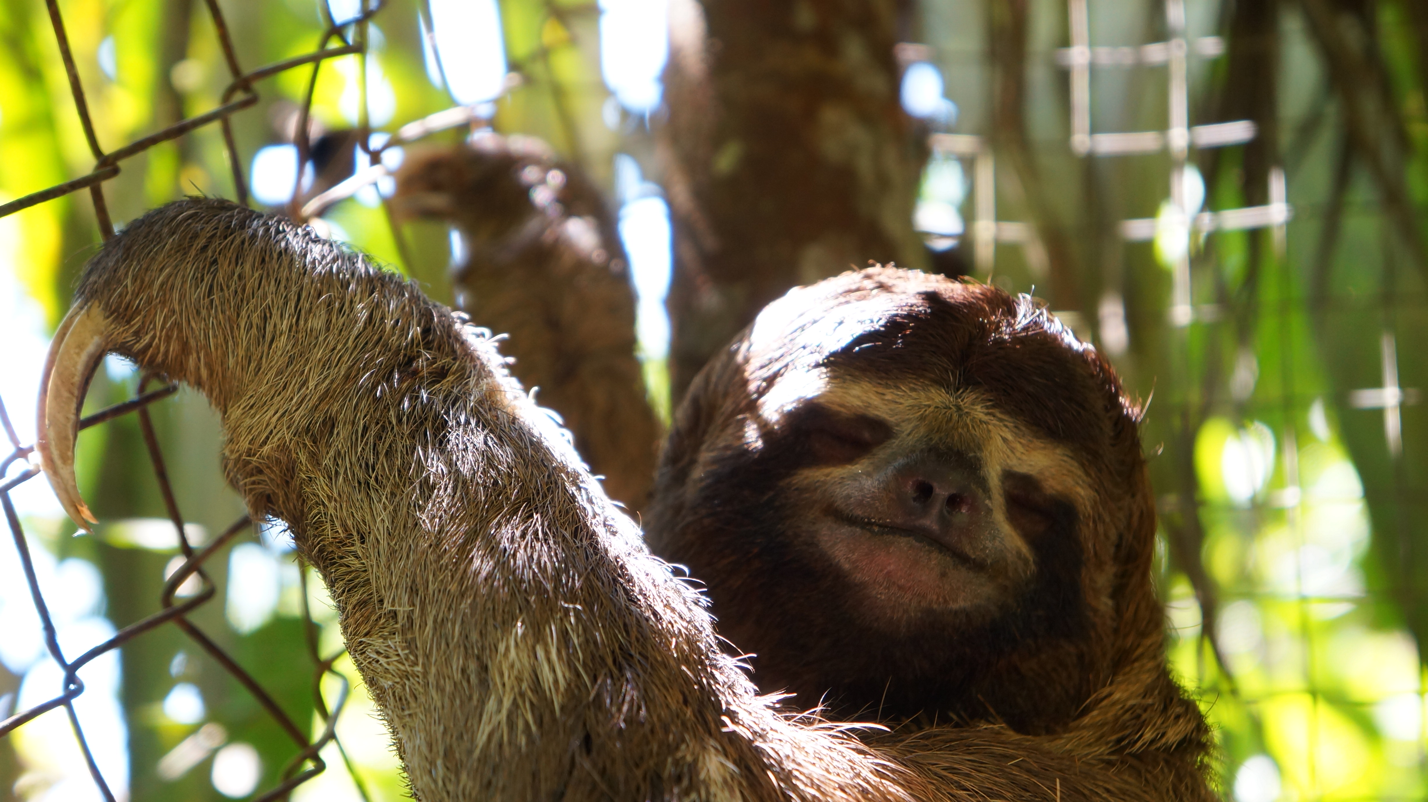 A ring tailed Coati foraged in the dirt for insects and fruit. The sloths looked like giant teddy bears and we contemplated what a nice life they lead, spending the majority of their days eating and sleeping.