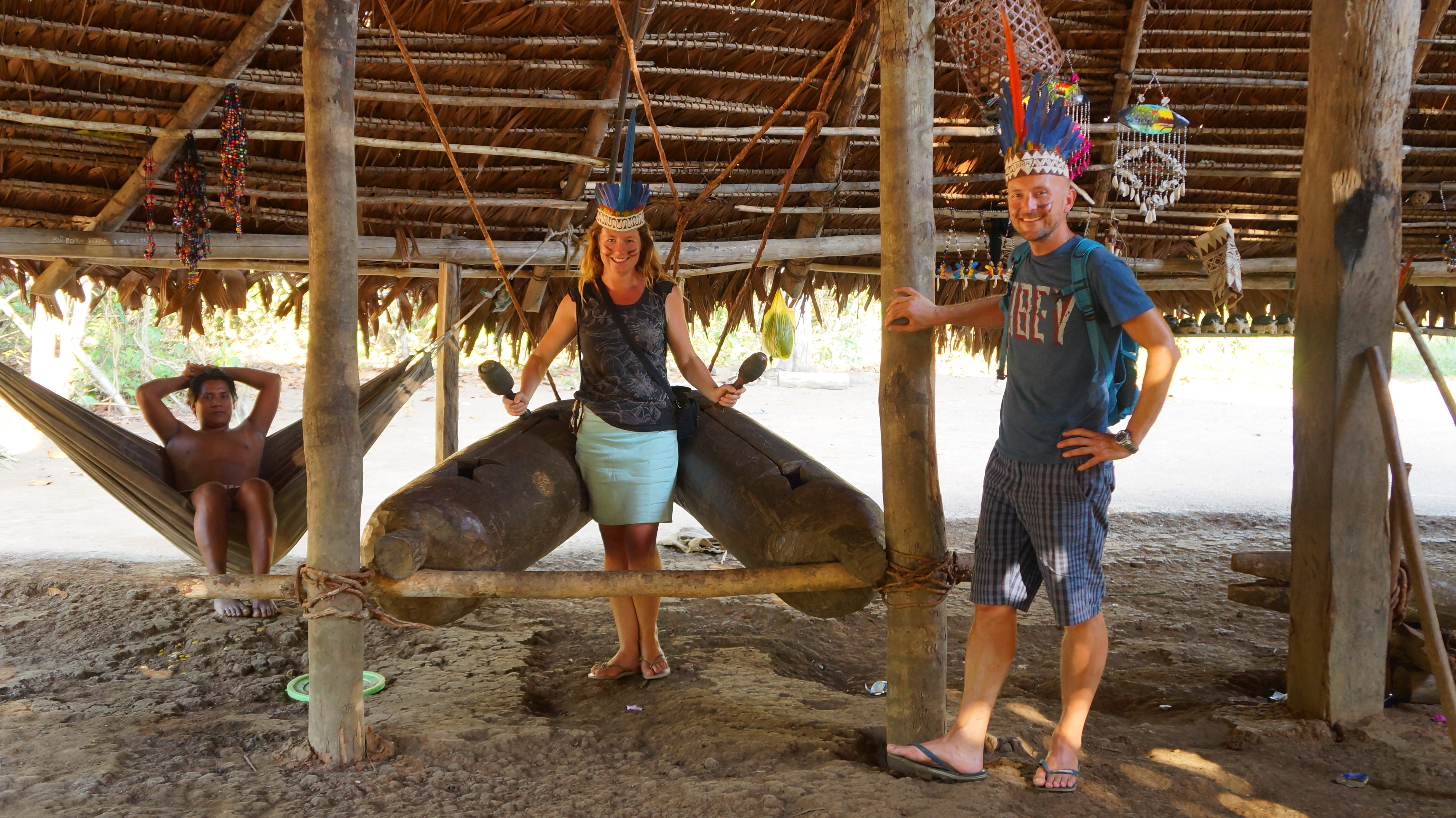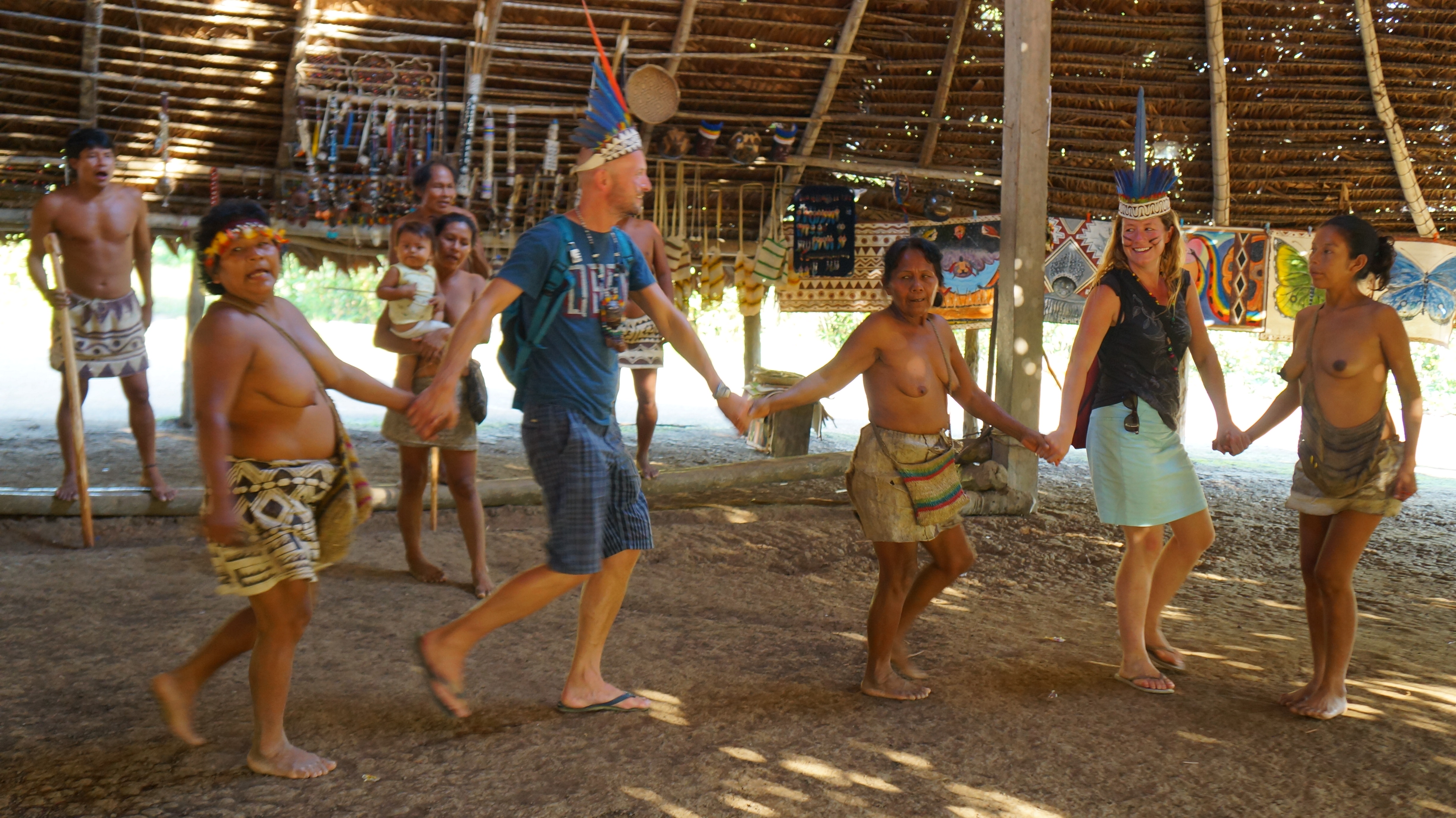 As we were about to leave, Francisco said he would like to take us to see a local community of native Indians who lived close by and still practiced their indigenous culture. We agreed immediately and a 30 minute walk later through the jungle we were in village having our faces painted and dancing with bare-chested ladies.