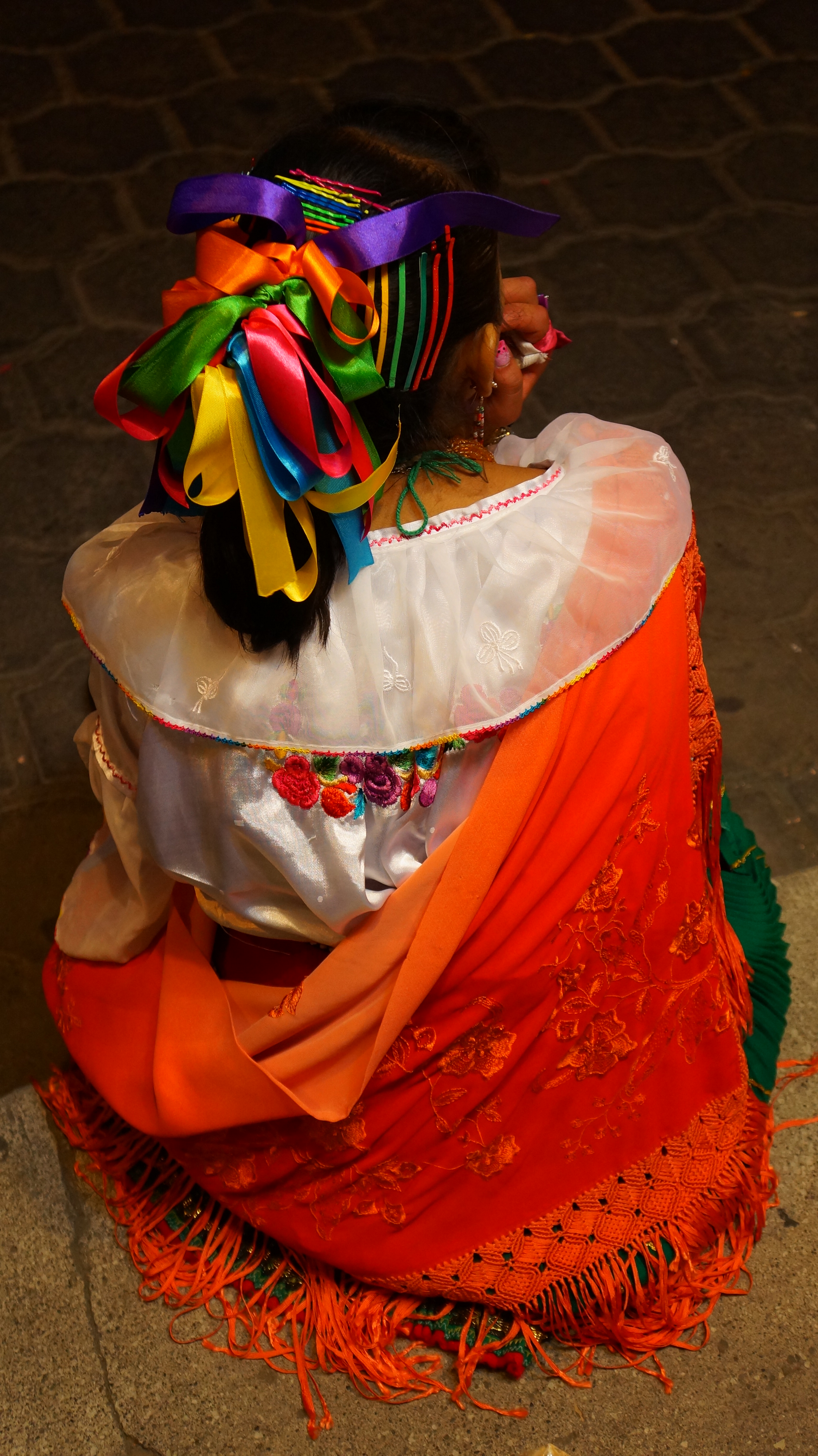They’d been parading all afternoon but they had loads of energy and style. The ladies long dark hair was plaited with colourful ribbons which matched their elaborately embroidered dresses and colourful under-skirts which bellowed out like balloons.