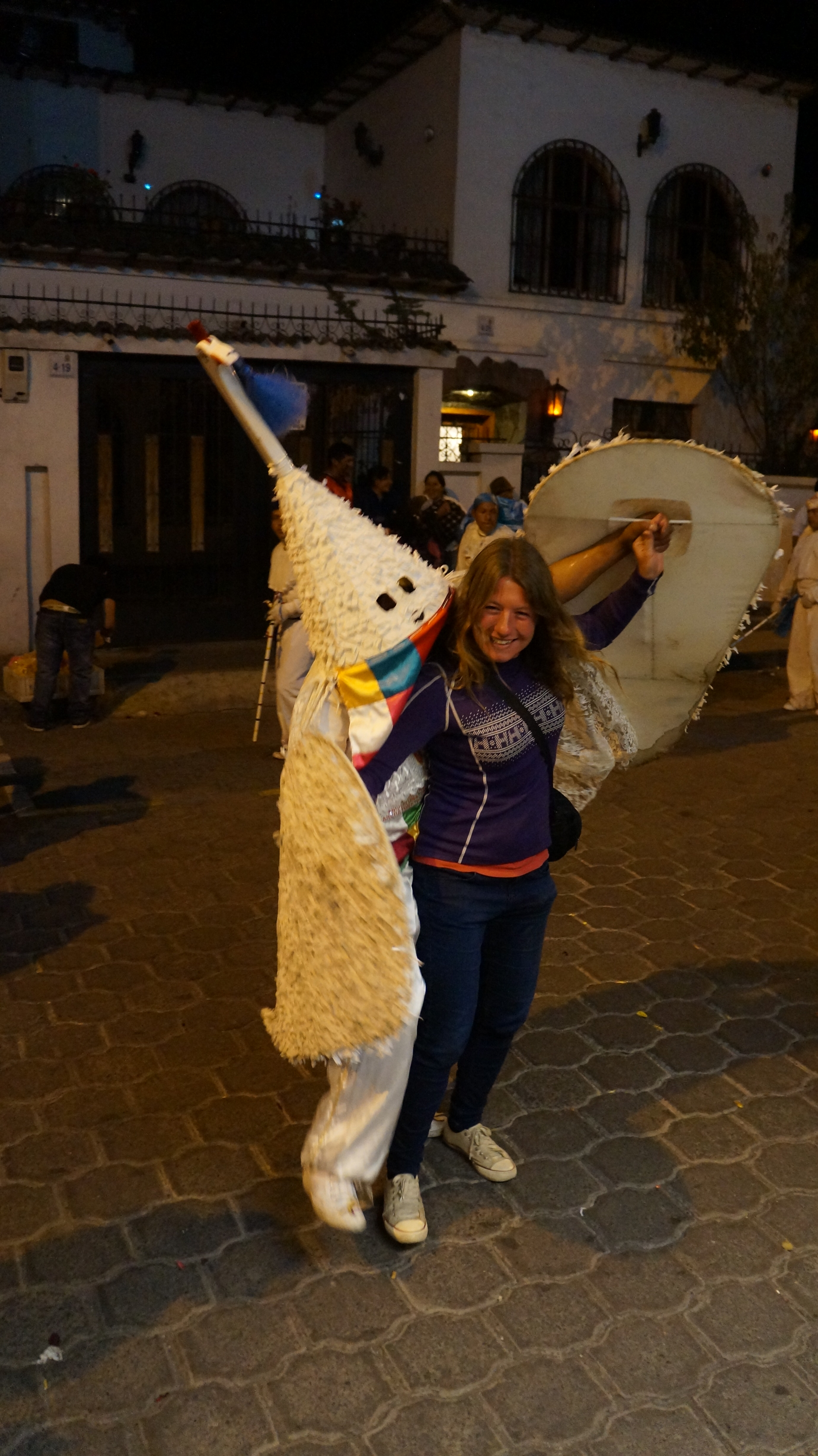 Groups of men dressed in white called ‘Guacos’ would grab spectators and perform cleansing ceremonies – dancing in circles around them, spitting water or milk at them and collecting some money for the pleasure. We managed to avoid being ‘cleansed’ but the manager of our hotel made eye contact for a second too long and got pulled from the crowd.