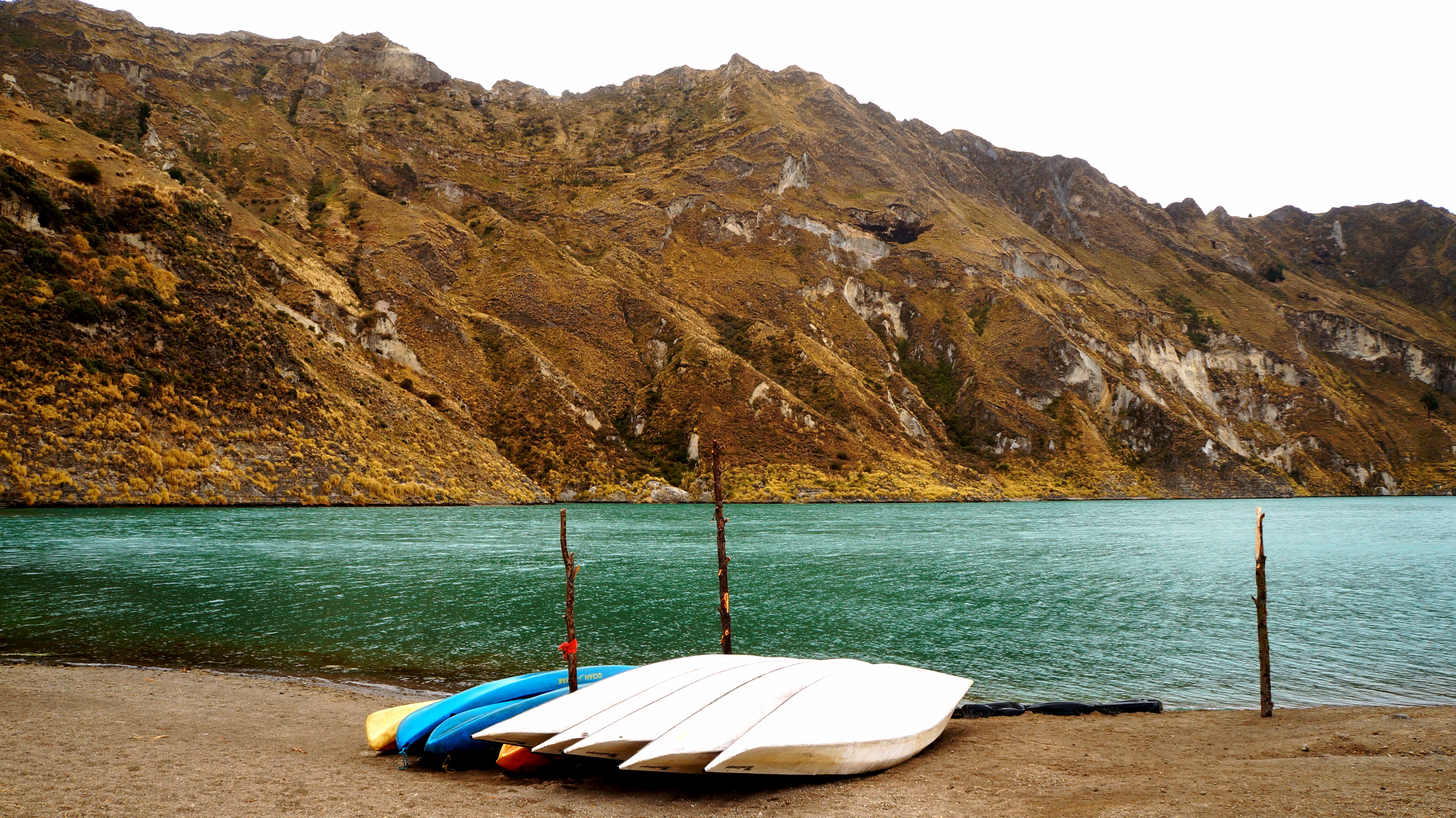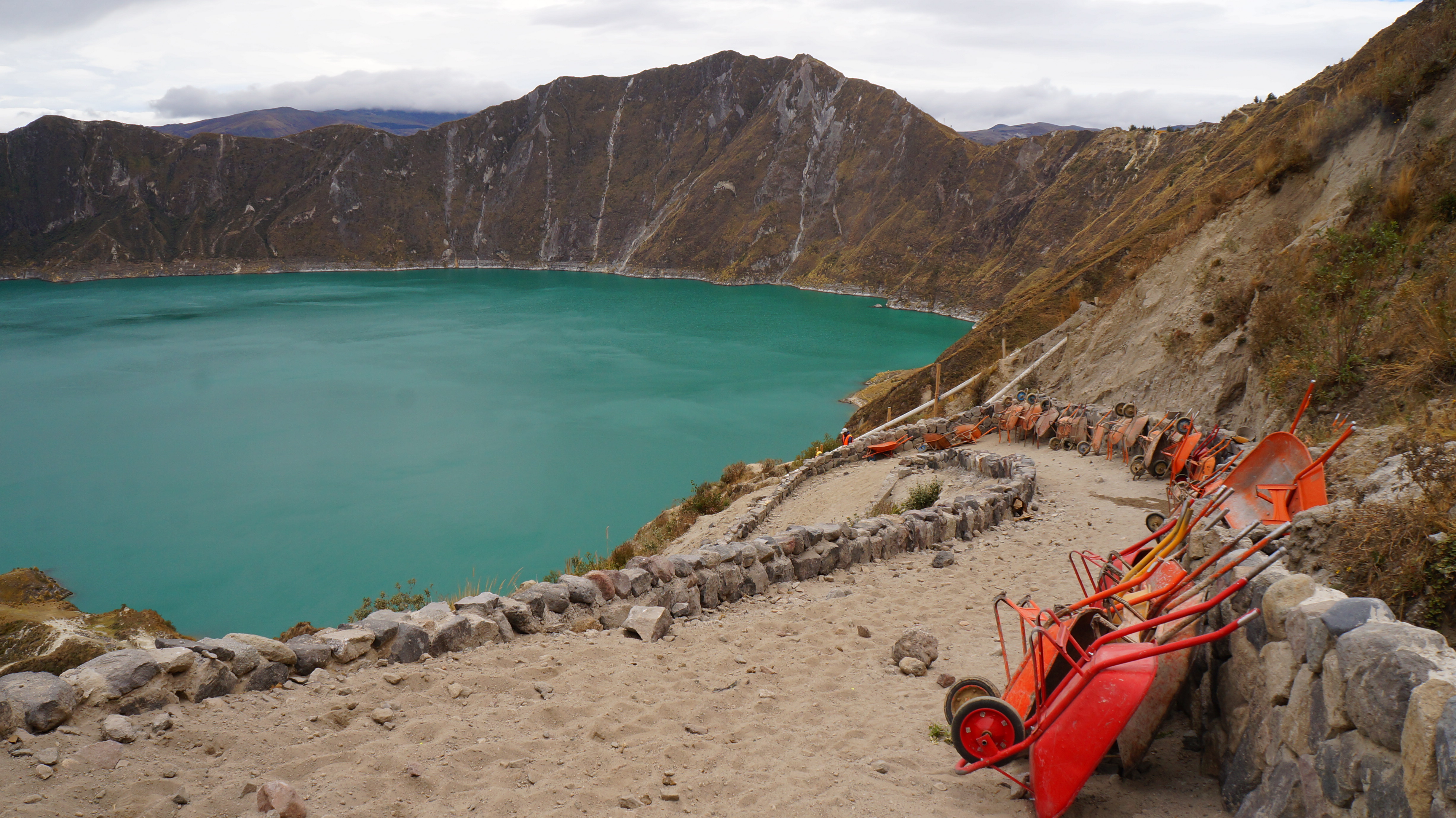 A clapped out old bus with rattling windows, faded velour seats and a never ending soundtrack of Andean pan pipes dropped us off in the small settlement of Quilatoa. The indigenous farming village didn’t look like much, just a cluster of basic brick and tin roof homes, but we’d learnt that this was the access point to one of Ecuador’s most spectacular sights – the unbelievably beautiful volcanic crater lake, Quilatoa.