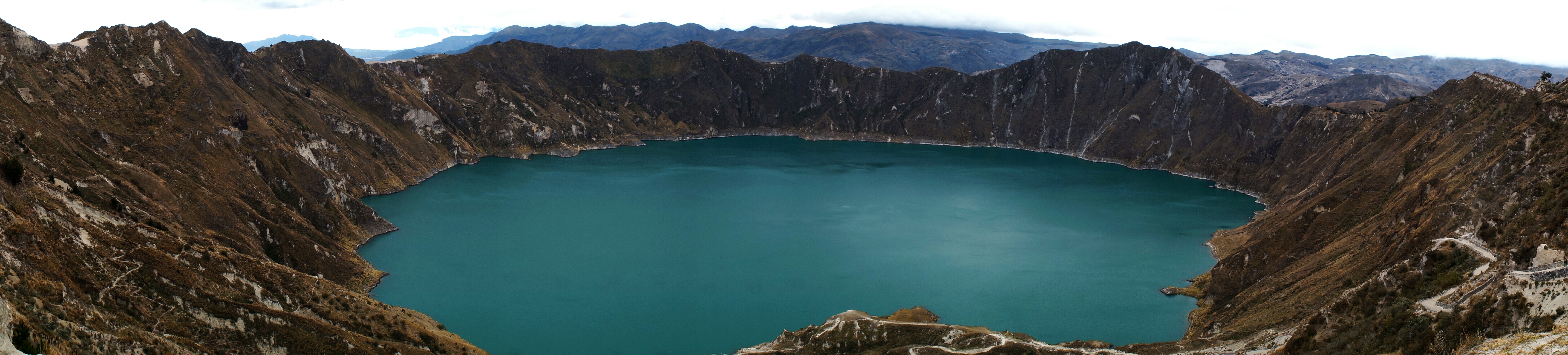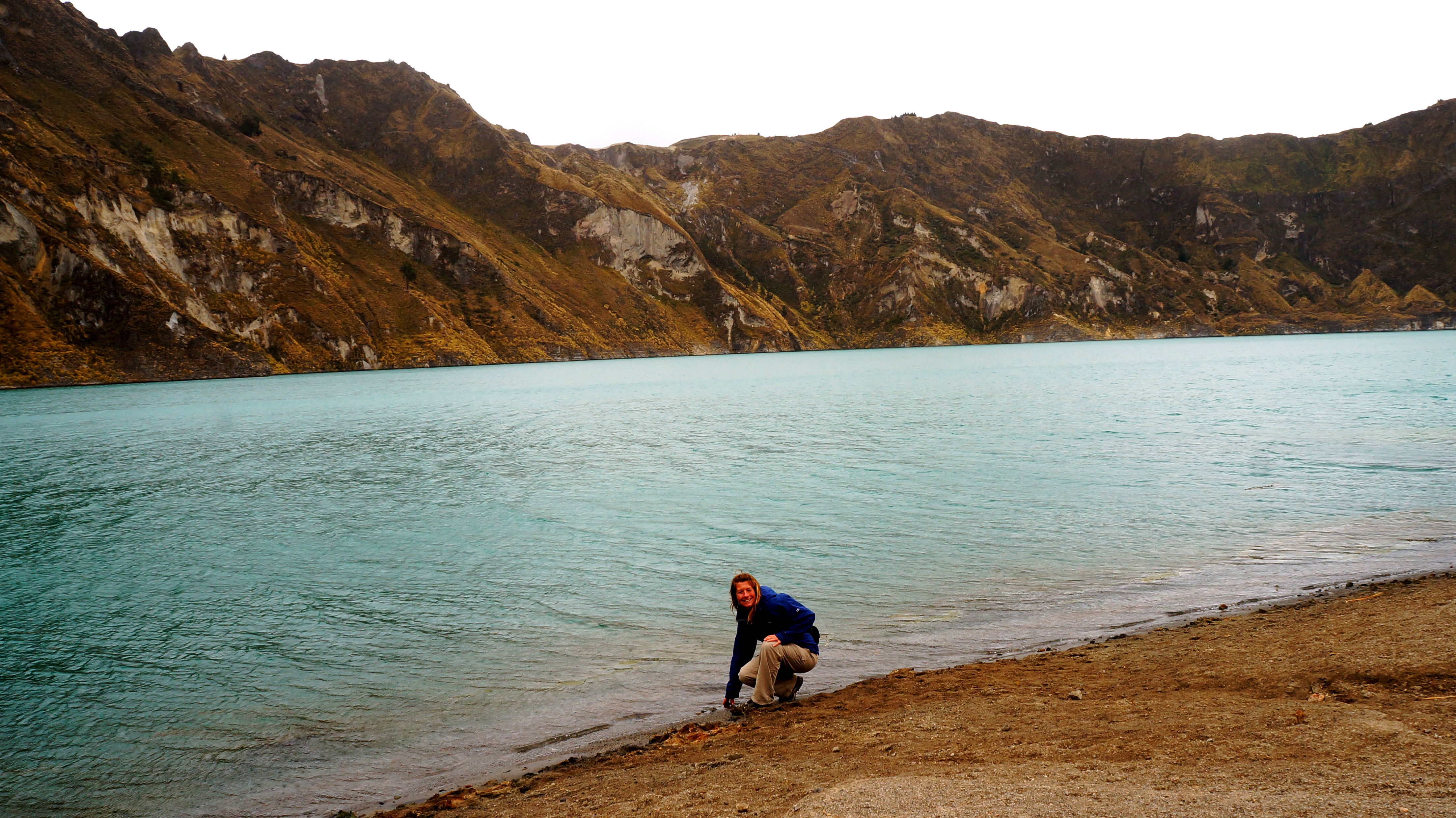 Following a period of dormancy lasting for over 14,000 years, Quilatoa blew its top around 800 years ago producing catastrophic pyroclastic flows and debris that reached all the way to the Pacific Ocean. The resulting crater is 2.5 kilometres wide, with a rim that rises and falls irregularly and which is now filled with gorgeous greenish/blue water. We’d seen the promotional posters in tourist information and the artwork adorning shops and cafes in the area, but we assumed the pictures must have been digitally enhanced – nothing could be that stunning…could it? We had to find out for ourselves.