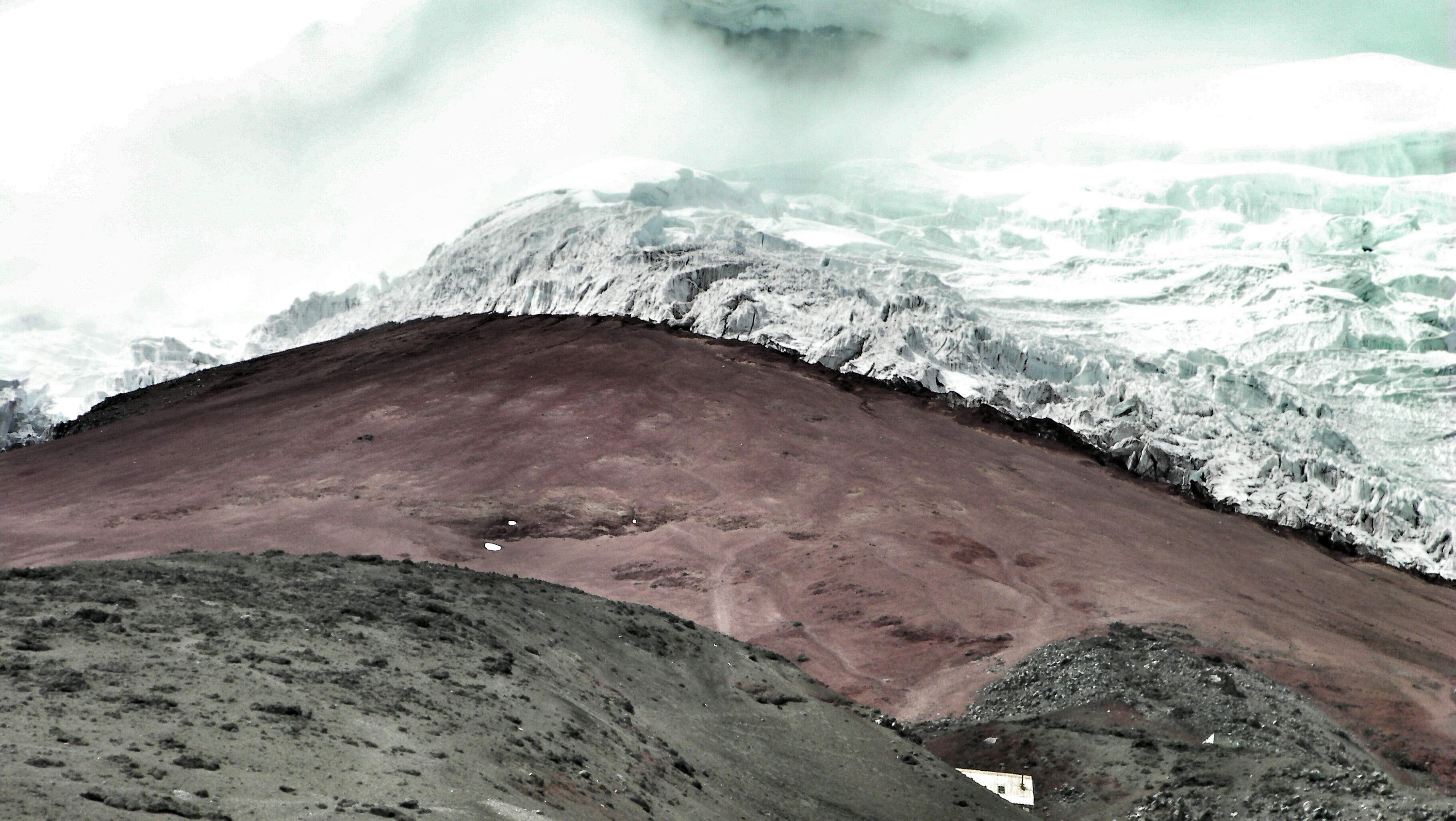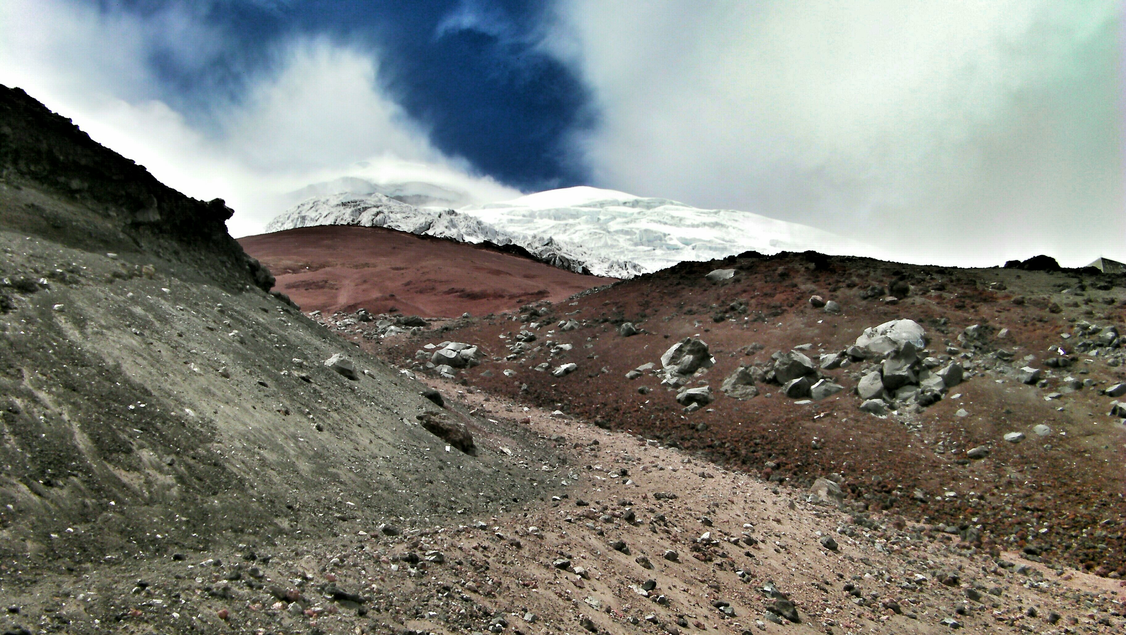 The volcano was playing hard to get as we approached its base in the mini van. Thick clouds smothered the peak and only offered fleeting glimpses of its beauty. We puckered our lips and tried to blow them away. The flashes of rock and soil we did see were a rusty-red colour with a halo of snow and ice at the top.