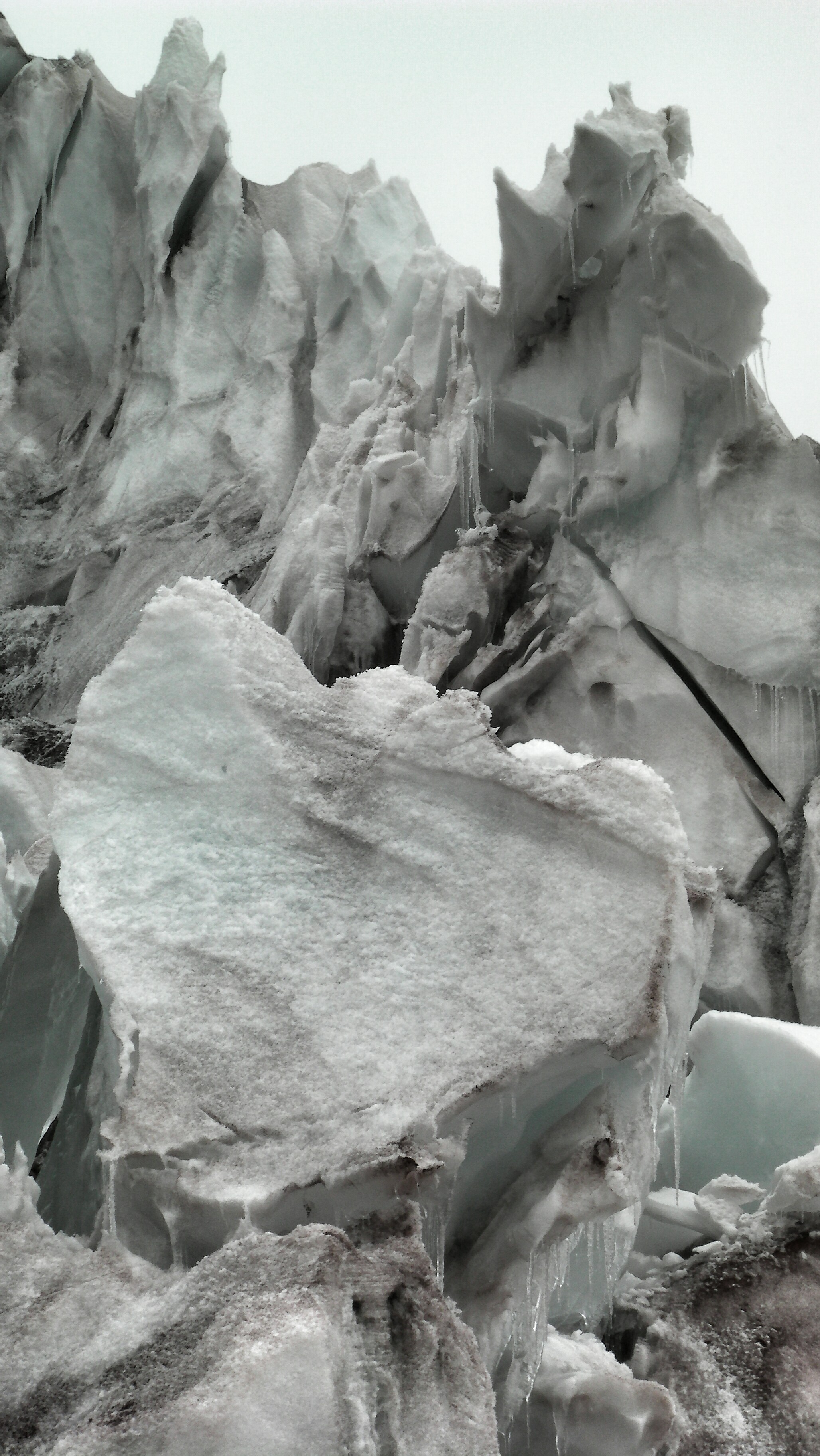 When the sun broke through the clouds it felt very warm on our skin but a persistent cold wind hustled across the ice field making us very grateful for our hats and gloves. Fast droplets of water ran from the glacier as the sun’s rays warmed its edges.