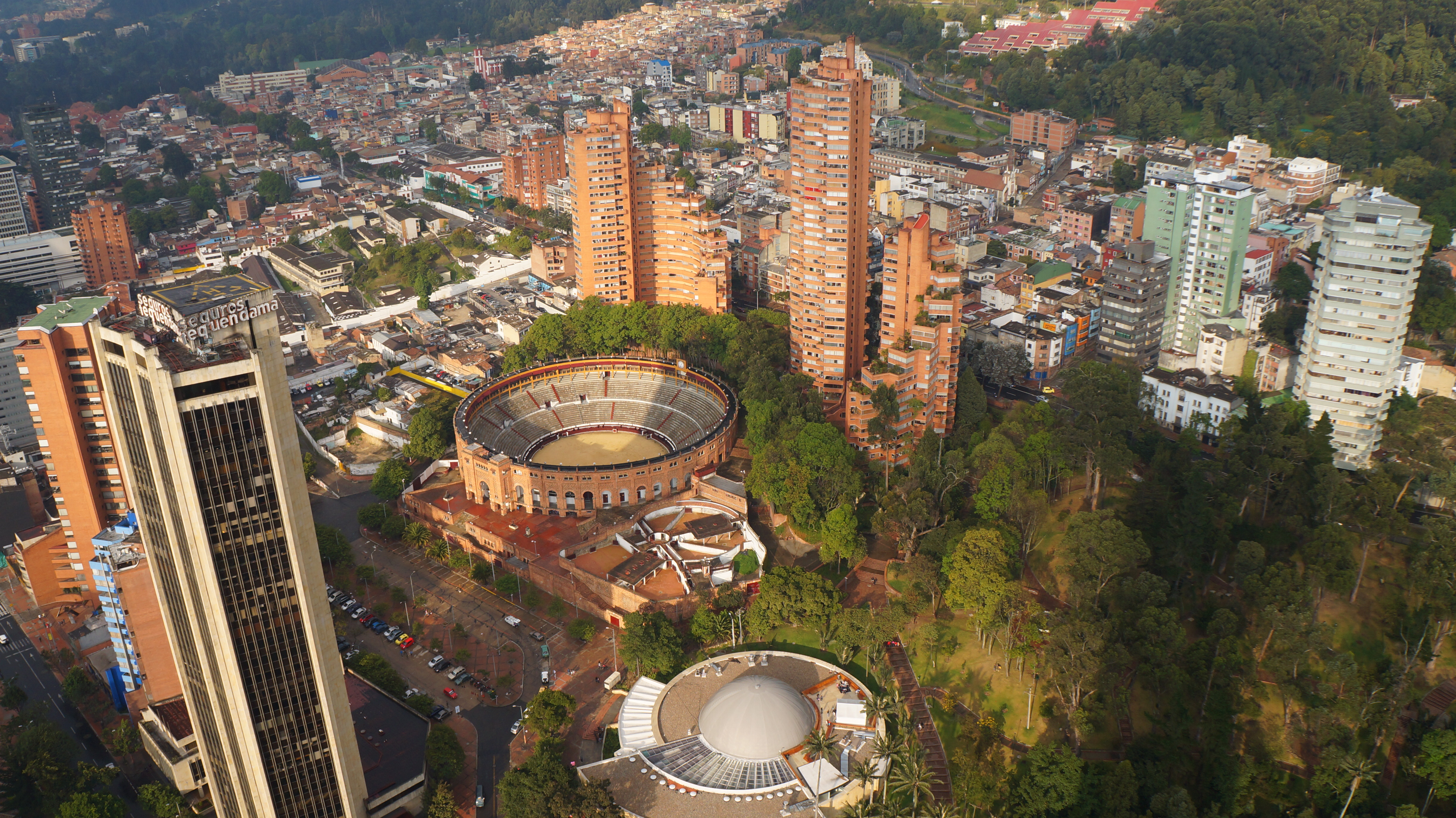 Take a leisurely stroll around the outside deck and peer down at the many office buildings, reach out and touch the surrounding mountains and get an interesting perspective on Bogota’s Colosseum-like bull ring.
