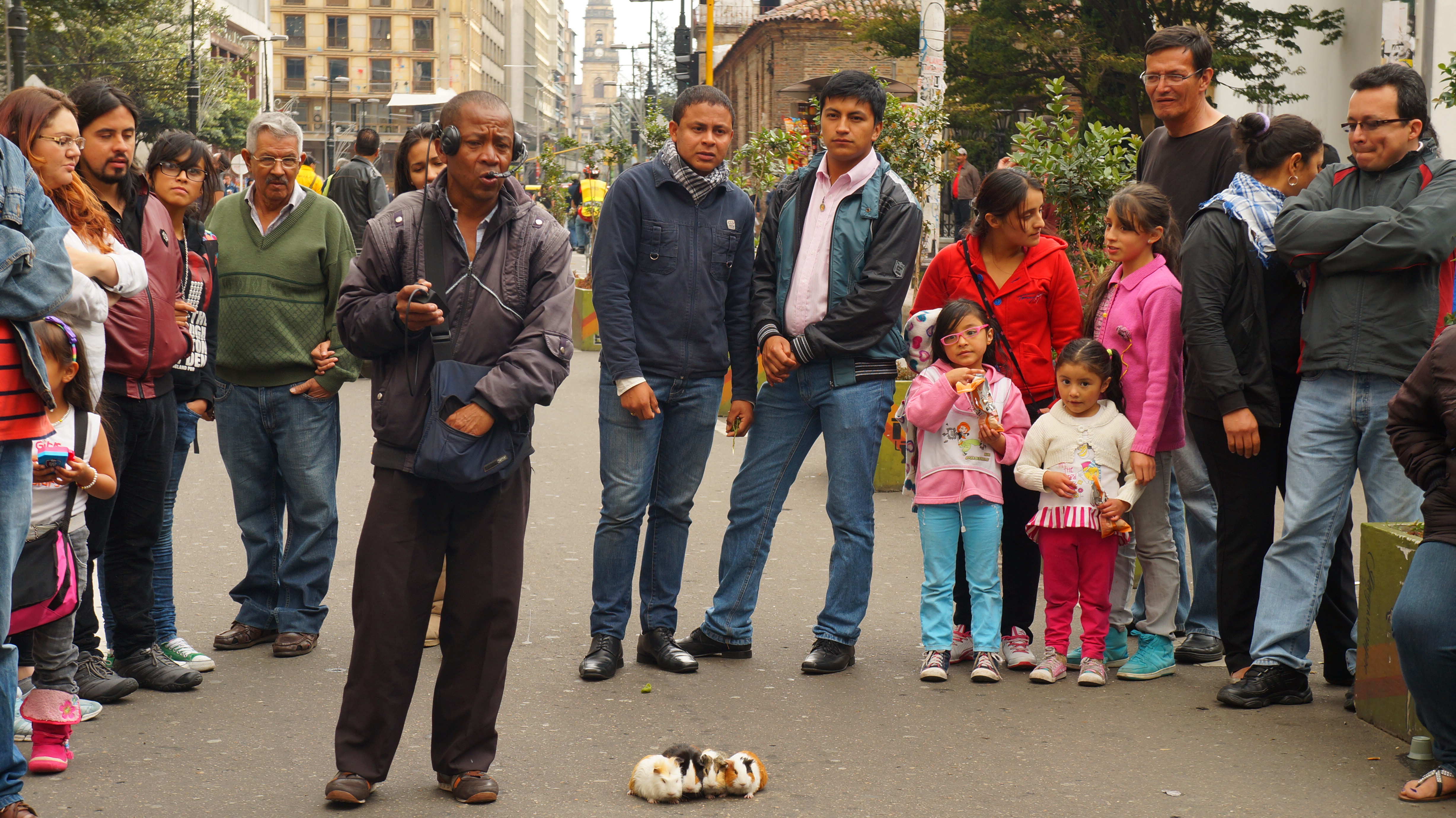 In Western Bogota, Parque Simon Bolivar is a huge green space filled with lakes, walkways and bike paths and draws the crowds at weekends. However, central Bogota feels somewhat lacking in recreational space. It’s possible to grab a few minutes peace and quiet in the cobbled streets and spacious squares of the old town but the overriding vibe is a gritty, grey urban landscape. The Rolos have recognised the need for communal space and every Sunday a large area of the city is closed to vehicles so that families, couples and friends can stroll, cycle, skateboard and roller-blade their way through normally hectic, fume-choked streets to visit pop-up craft markets, sample specialities from food vendors or enjoy a punt on which guinea pig will win in one man’s organised race day!!