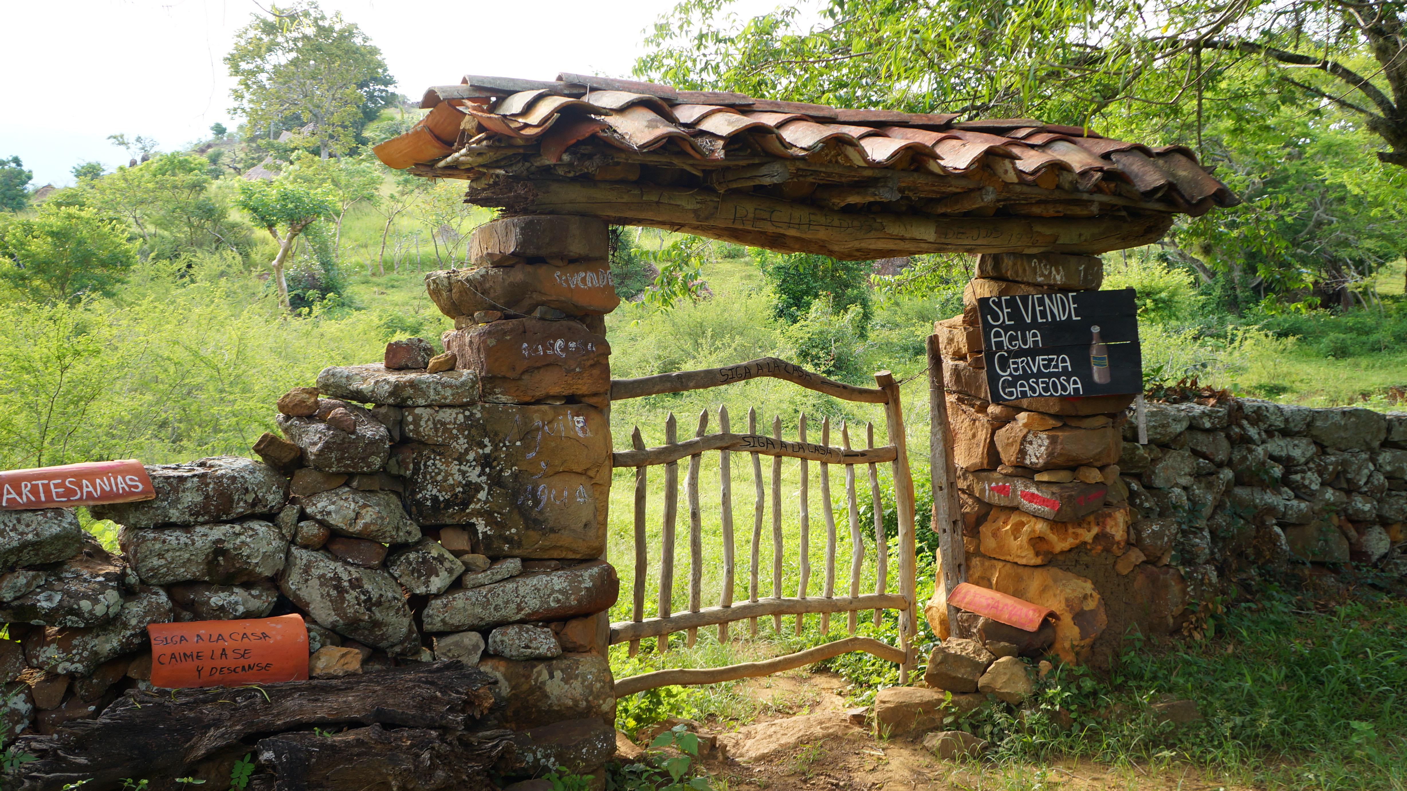 The 9 kilometre (6 mile) hike from Barichara is an easy, predominately down hill walk, along a historic stone path which has been re-built regularly over hundreds of years and was fully restored in 1864 by the German George von Lenguerke. On sections of the path it’s possible to see unusual fossils preserved in the stone slabs.
